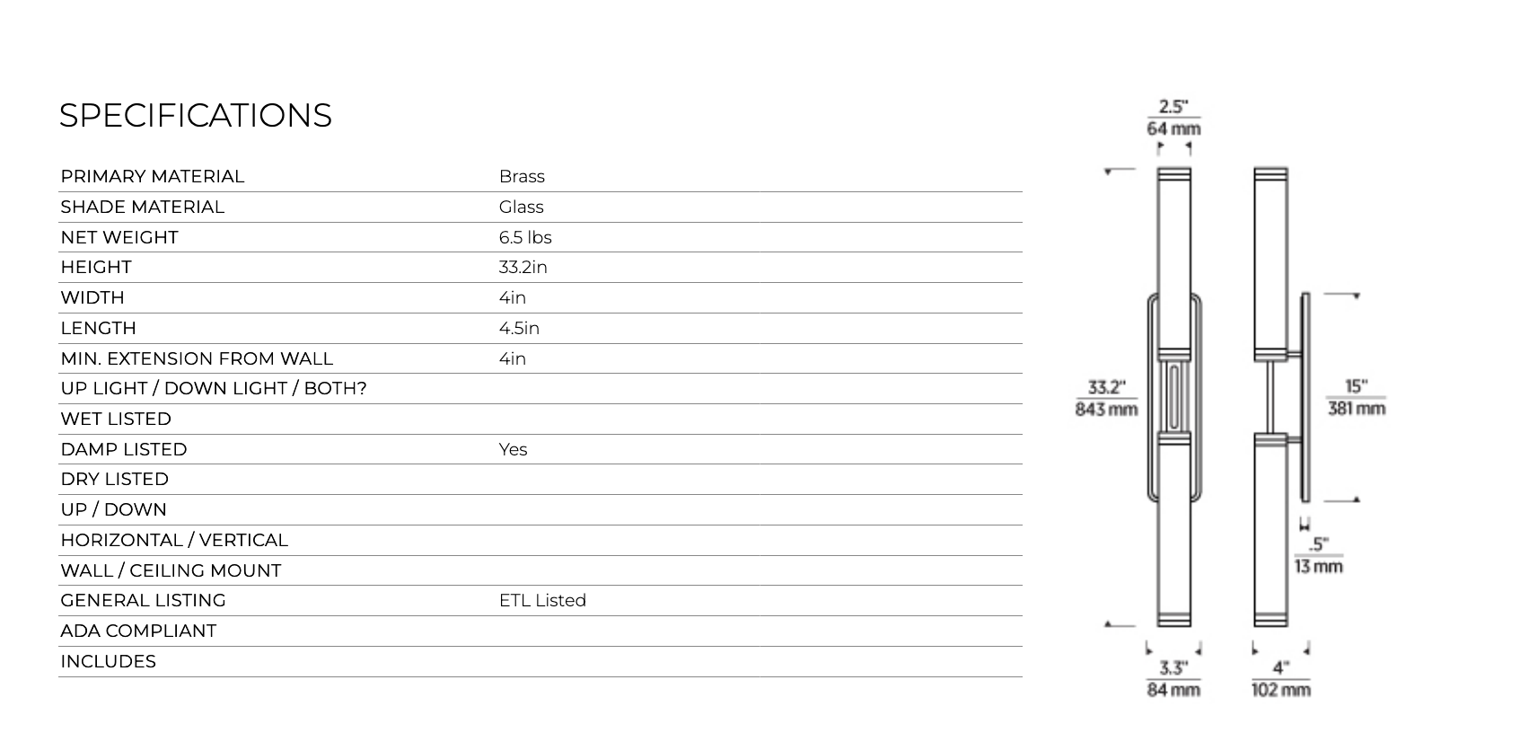 Architectural Alo Wall Mount LED Fixture - 33.2 inch Damp Rated, High CRI Lighting for Hallway & Boutique