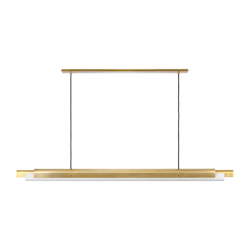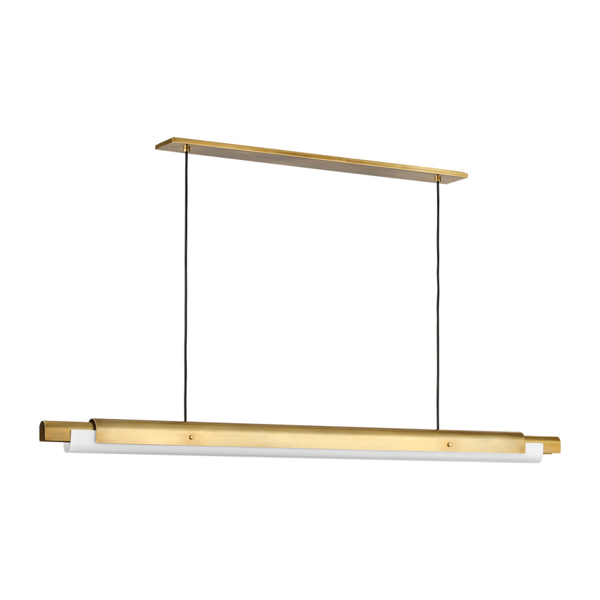 The Ambrose 72 Linear Chandelier by Visual Comfort offers a refined and modern lighting solution, designed to elevate any space with its sleek, minimalist aesthetic. Crafted from premium brass and featuring an elegant etched glass diffuser, this 72-inch linear fixture is a perfect fit for contemporary and modern interiors.
