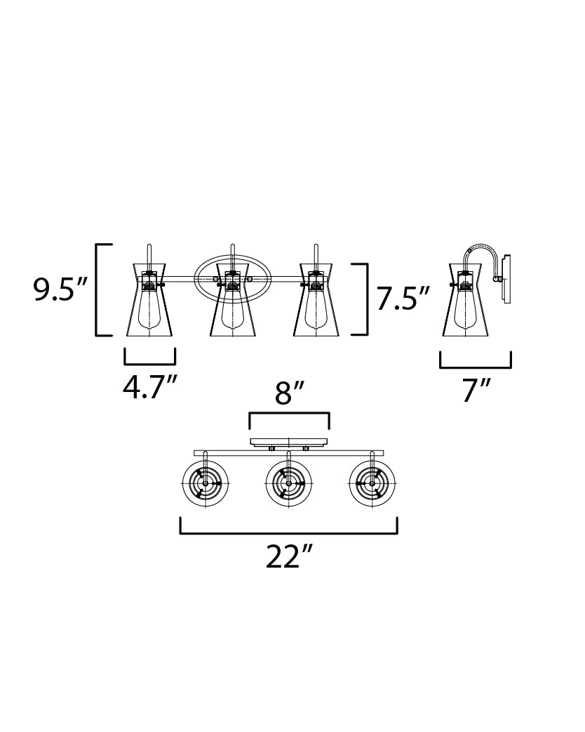 - Lamping info: 3 x E26 Medium 60W Incandescent K Bulb not included