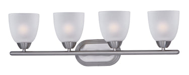 This transitional design works in any style home. Full length oval backplates support simple bell-shaped, Frosted glass shades. Available in Satin Nickel, Matte Black, and Polished Chrome.
