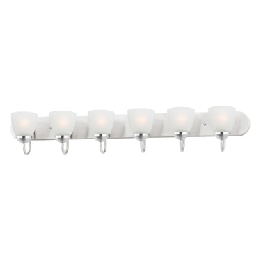 This transitional design works in any style home. Full length oval backplates support simple bell-shaped, Frosted glass shades. Available in Satin Nickel, Matte Black, and Polished Chrome.