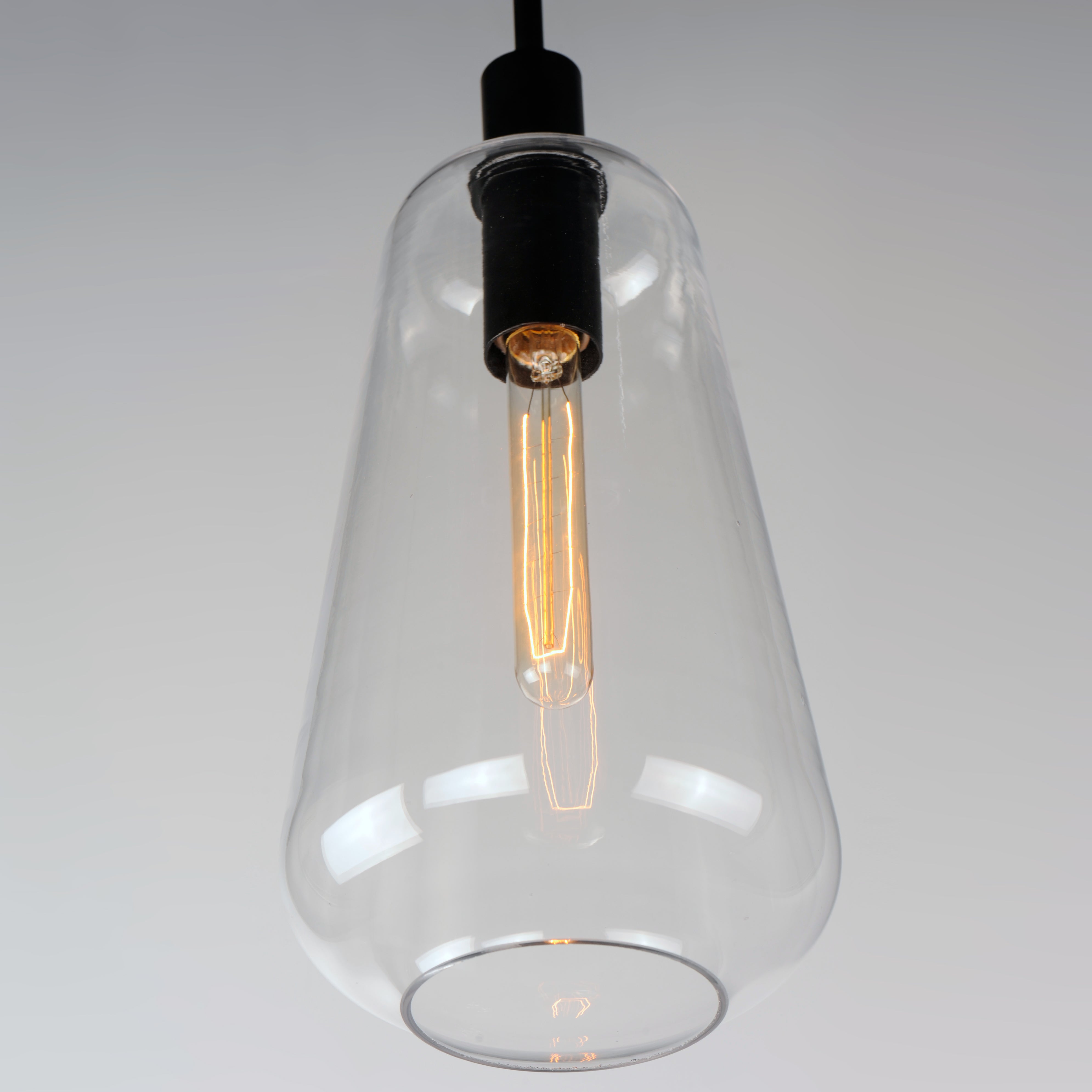 Pendants of Clear glass in unique elongated and undulating shapes with various sizes. This series pairs well with popular finishes in hardware and plumbing, giving you the flexibility to take chances with designer statement pieces. The metalwork is available in your choice of Matte Black, Satin Brass, or Satin Nickel. A coordinating wall sconce pairs well with the collection. Use filament bulbs to complete the look.