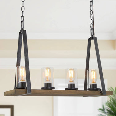 Berthelotii 4-Light 25.5-in Farmhouse Black & Wood Rectangle Kitchen Island Light