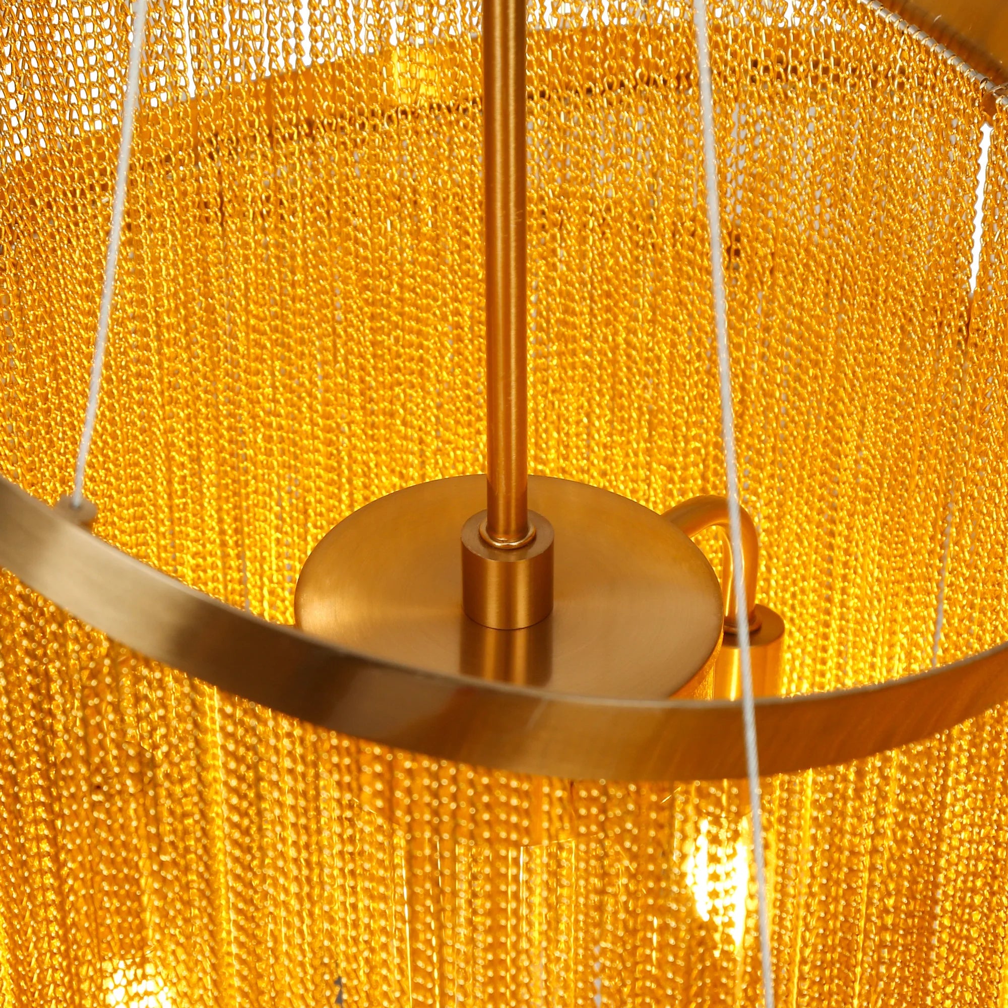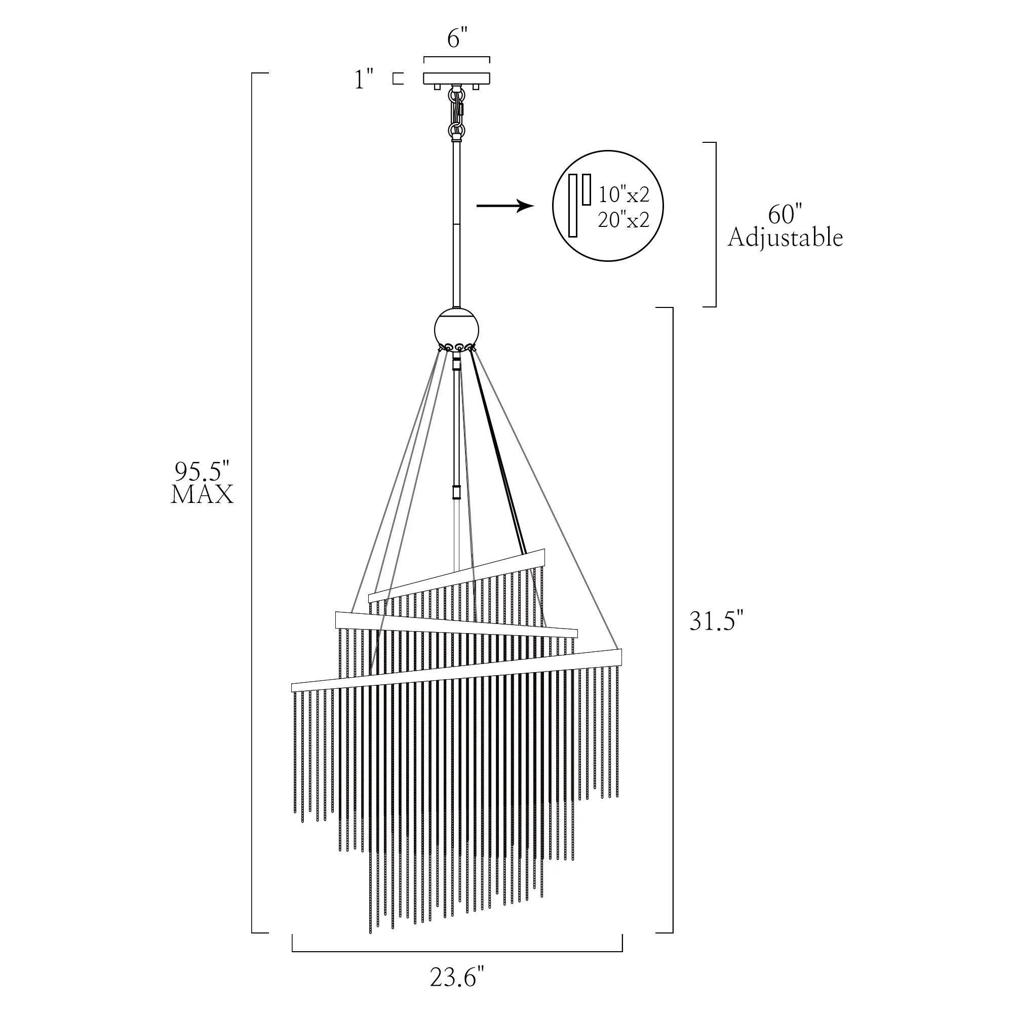 - Mesmerizing Rainfall Effect: Slender metal rods, finished in a radiant gold, hang asymmetrically from a sleek canopy, creating a dynamic and visually captivating focal point.