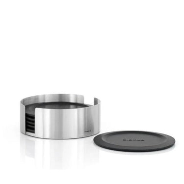 Order Coasters With Stainless Steel Holder - Round Ss Black (Variant: ) from page [silicone-coasters-with-stainless-steel-holder-round] by blomus at LoftModern.com with free shipping on orders $100 and up.