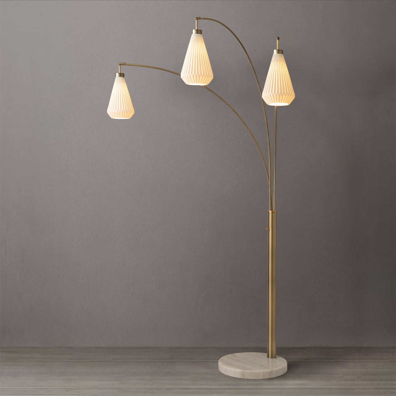 Concord Bone Porcelain Shade 3-Light Arc Floor Lamp 85" Weathered Brass Walnut