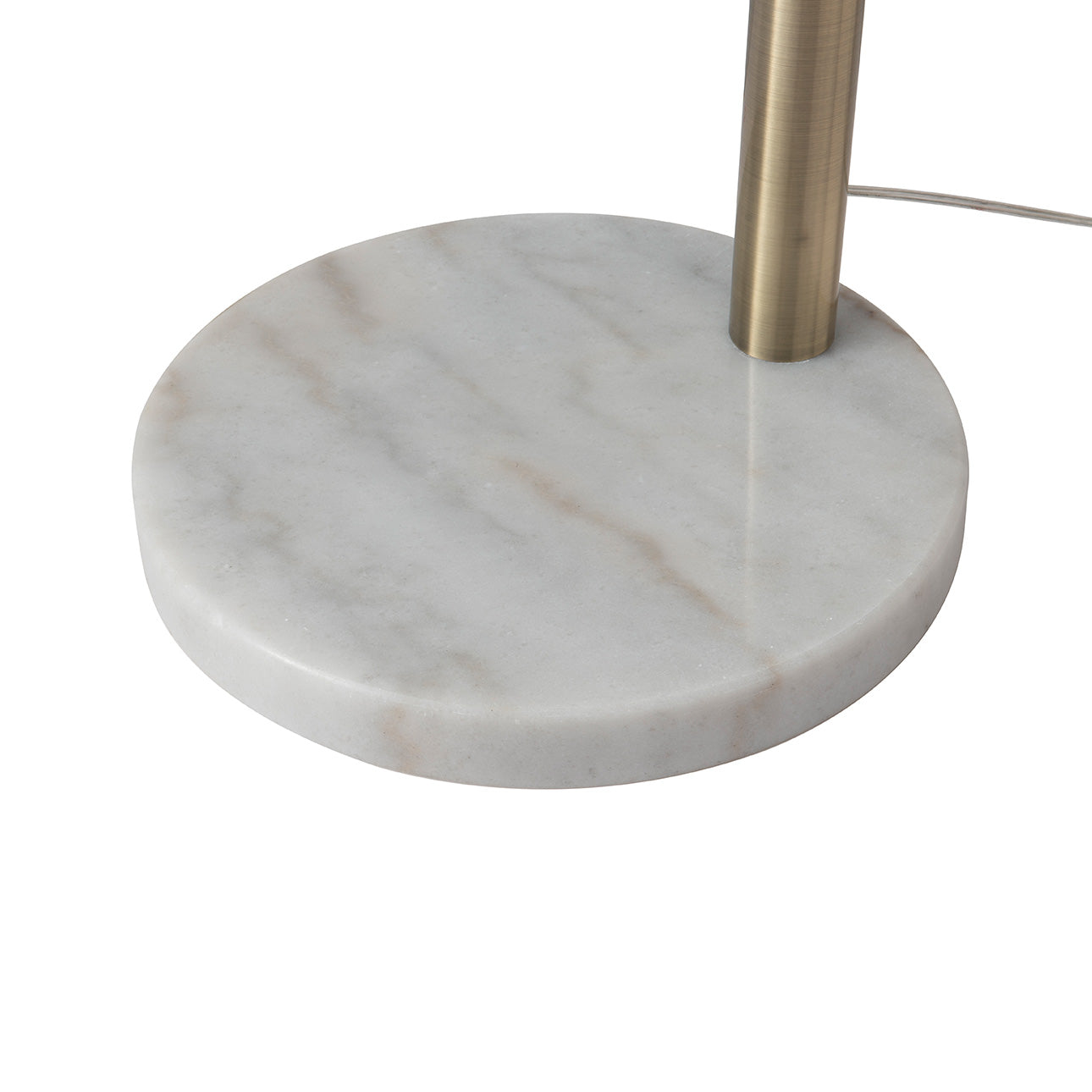The Concord 3 Light Arc Floor Lamp is a mid-century modern masterpiece that effortlessly illuminates any space with a soft radiance. Crafted from fine bone porcelain, each of the three shades emits an ethereal glow when the lamp is on, creating a captivating ambiance. The lamp's walnut and weathered brass column adds a touch of elegance without overpowering the comfort of the space. For personalized lighting, the dimmer switch is conveniently located on the column and allows you to select the perfect amount of light for any occasion. The lamp stands securely and elegantly on a beautiful white natural marble base. The Concord Lamp is also available in a table lamp version.