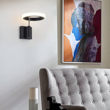 Inspired by a vintage lamp shade featured in the historic Culver Hotel, the Culver Wall Sconce conveys a classic mid-century modern vibe. The matte black finish updates the classic shade for a more modern style. The shade can be positioned to shine the light where needed. Ideal on either side of a headboard in bedrooms. The light has an embedded LED module that sheds reflective light and eliminates glare