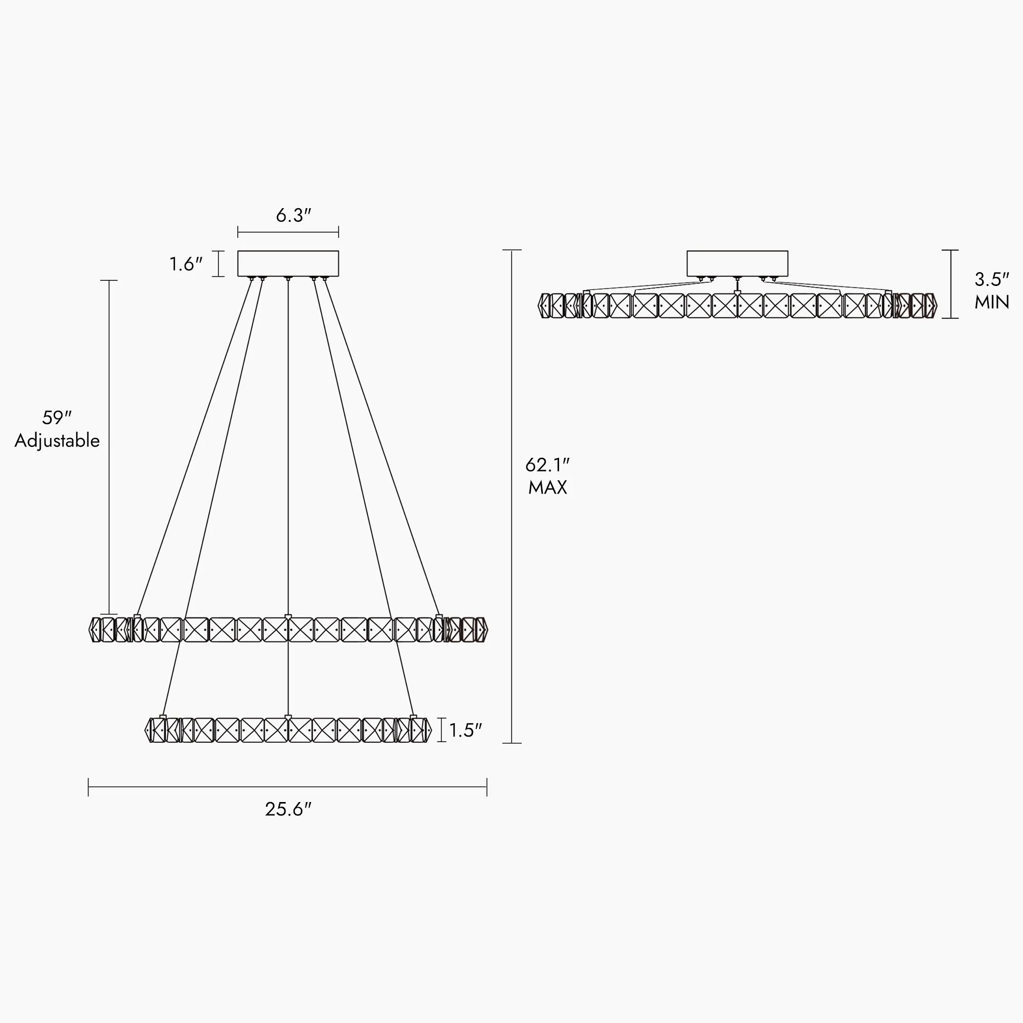 - Minimum Hanging Height: 3.5"