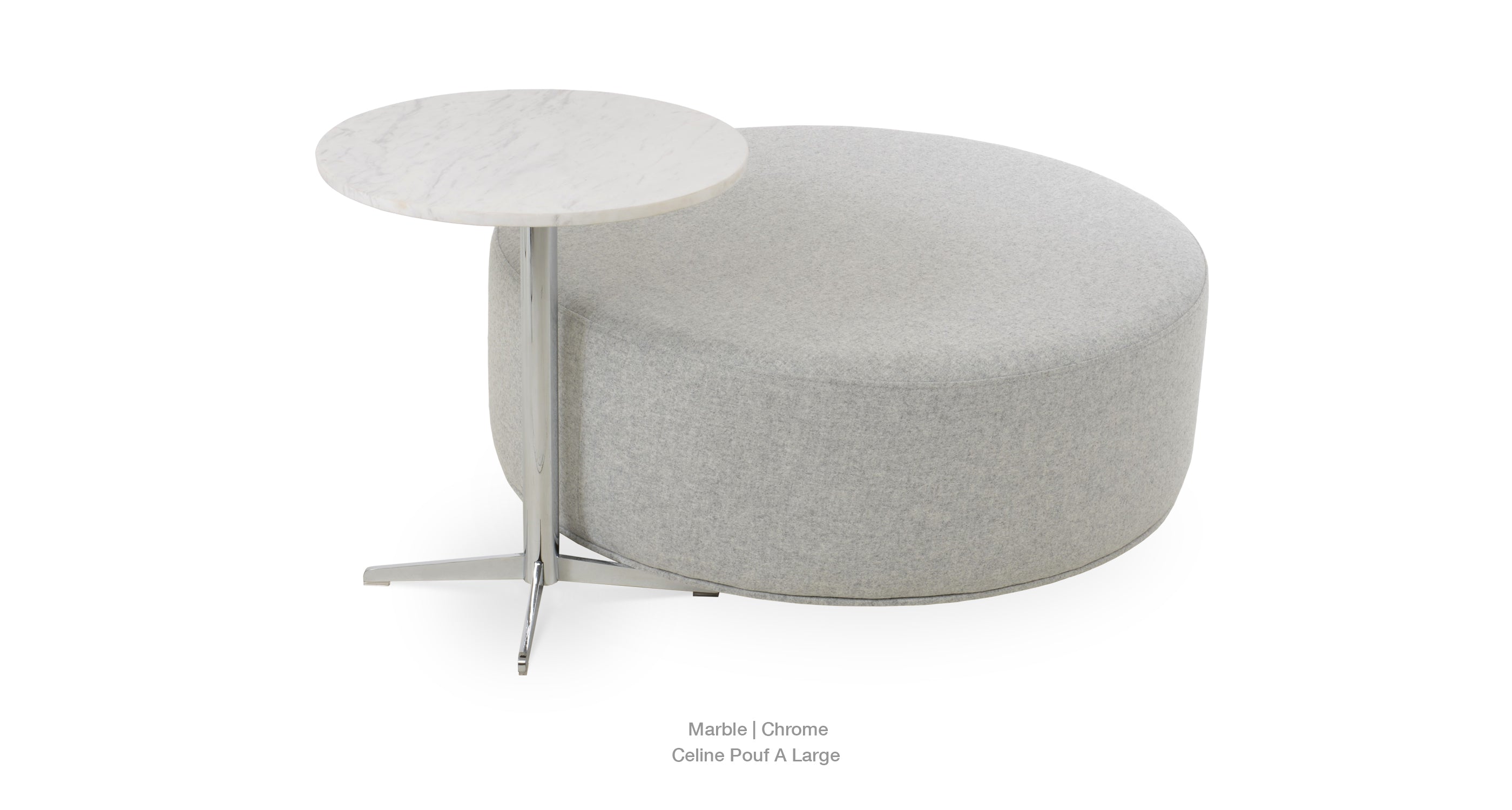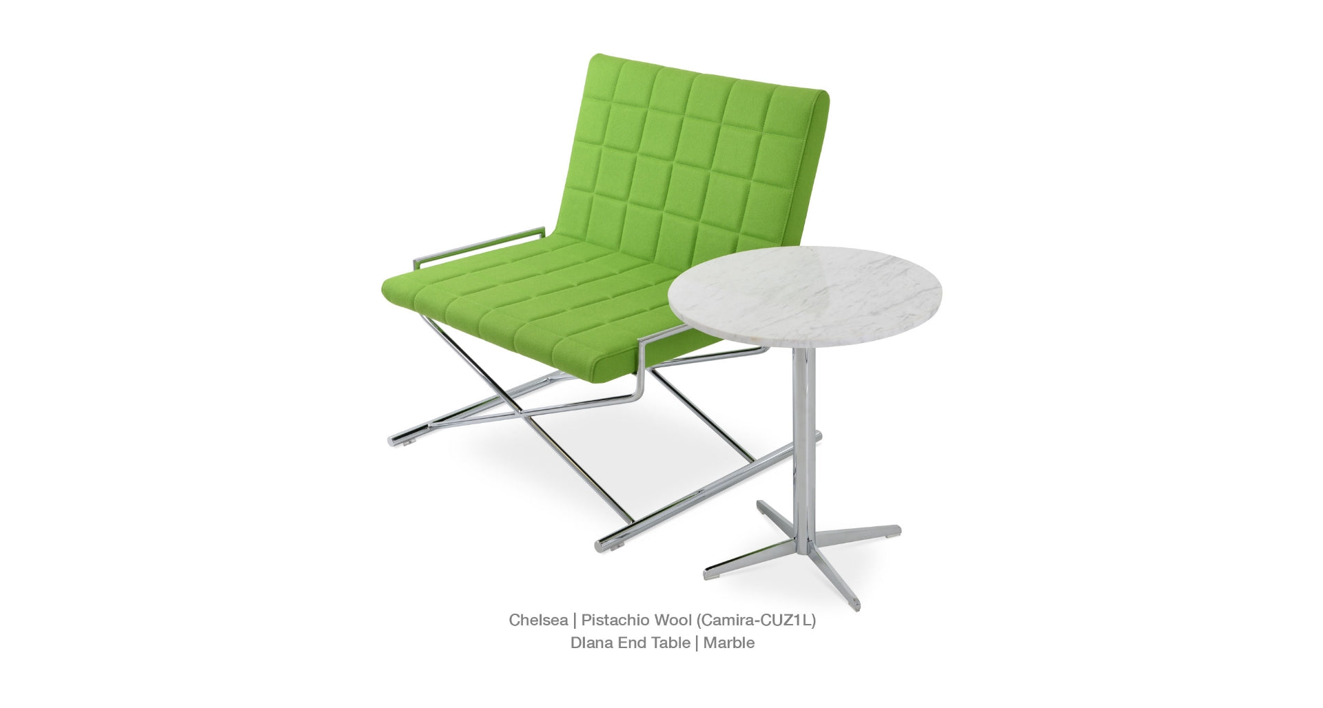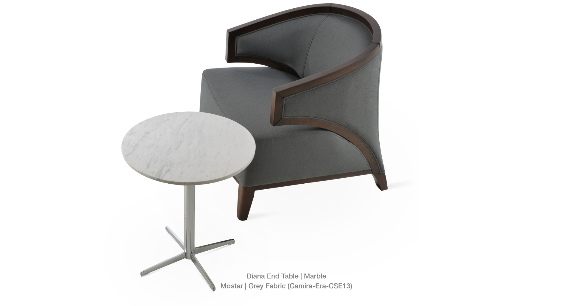 Simple and functional, Diana End Table demonstrates refined design features with its chrome 4 star base. It is offered in three different heights and several different glass top size options. The top is available in clear glass, marble and wood finishes. The table arrives in 3 boxes. Every table top is made out of natural stone and therefore each top is different and unique. Variations of color are inherent to the natural stone and considered part of the top's beauty. Diana End Table is suitable for both residential and commercial applications.