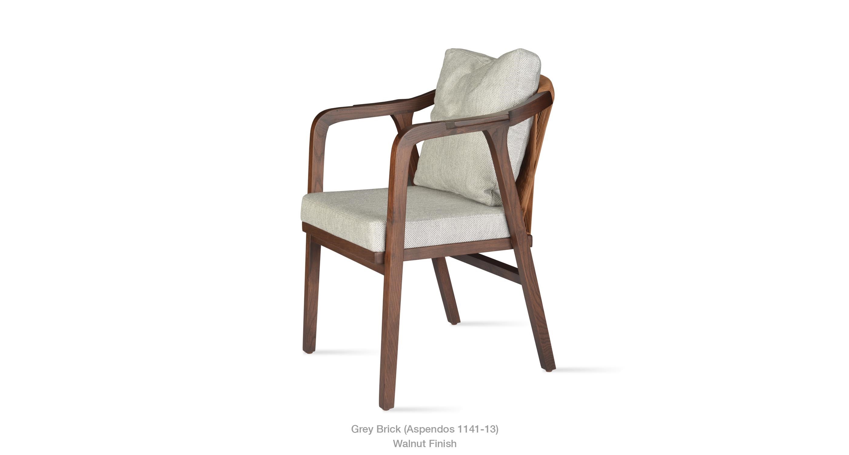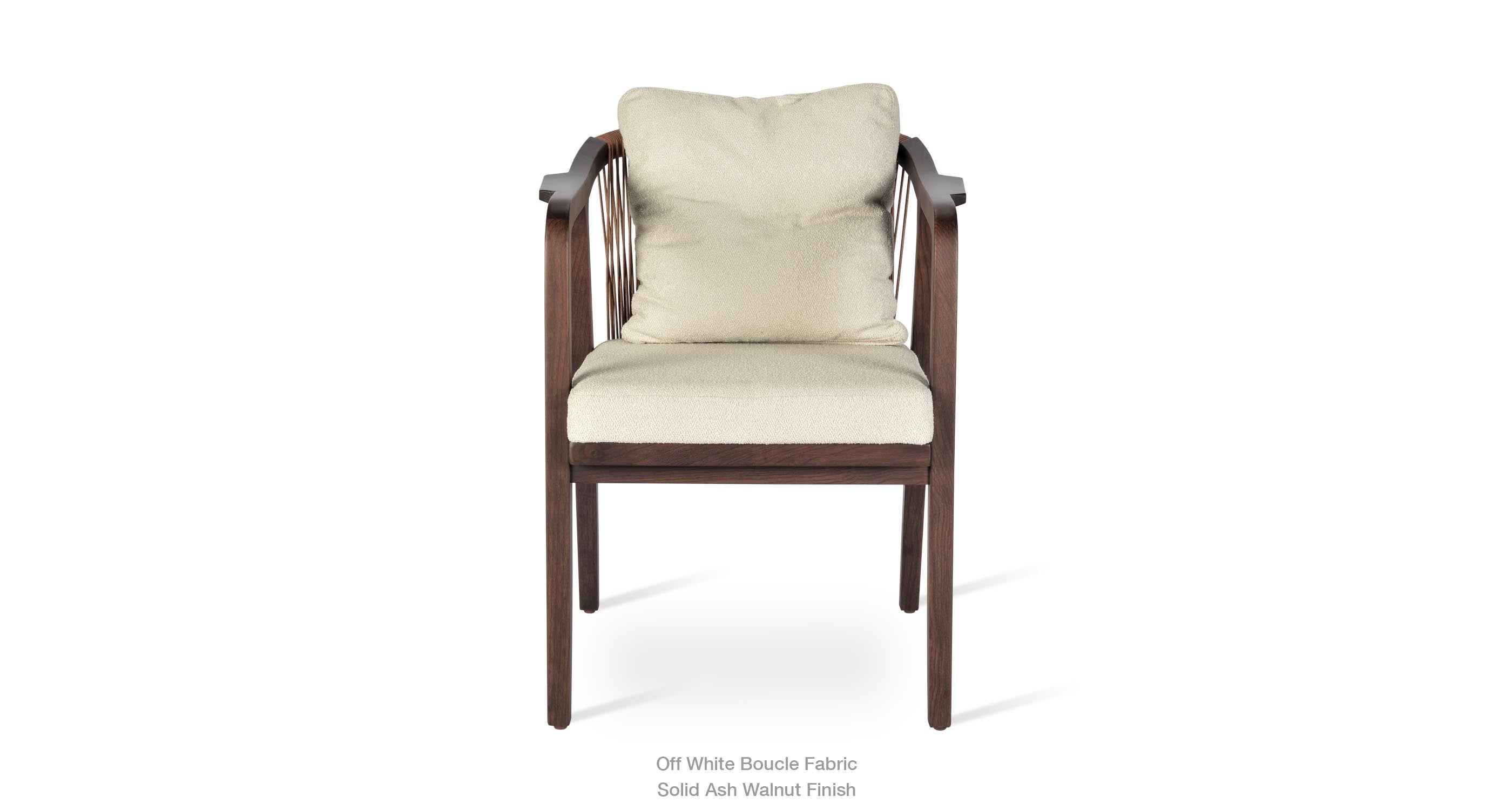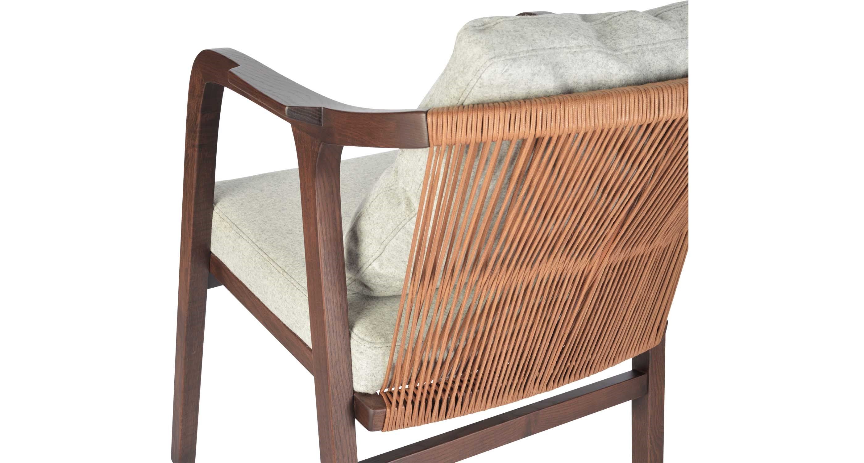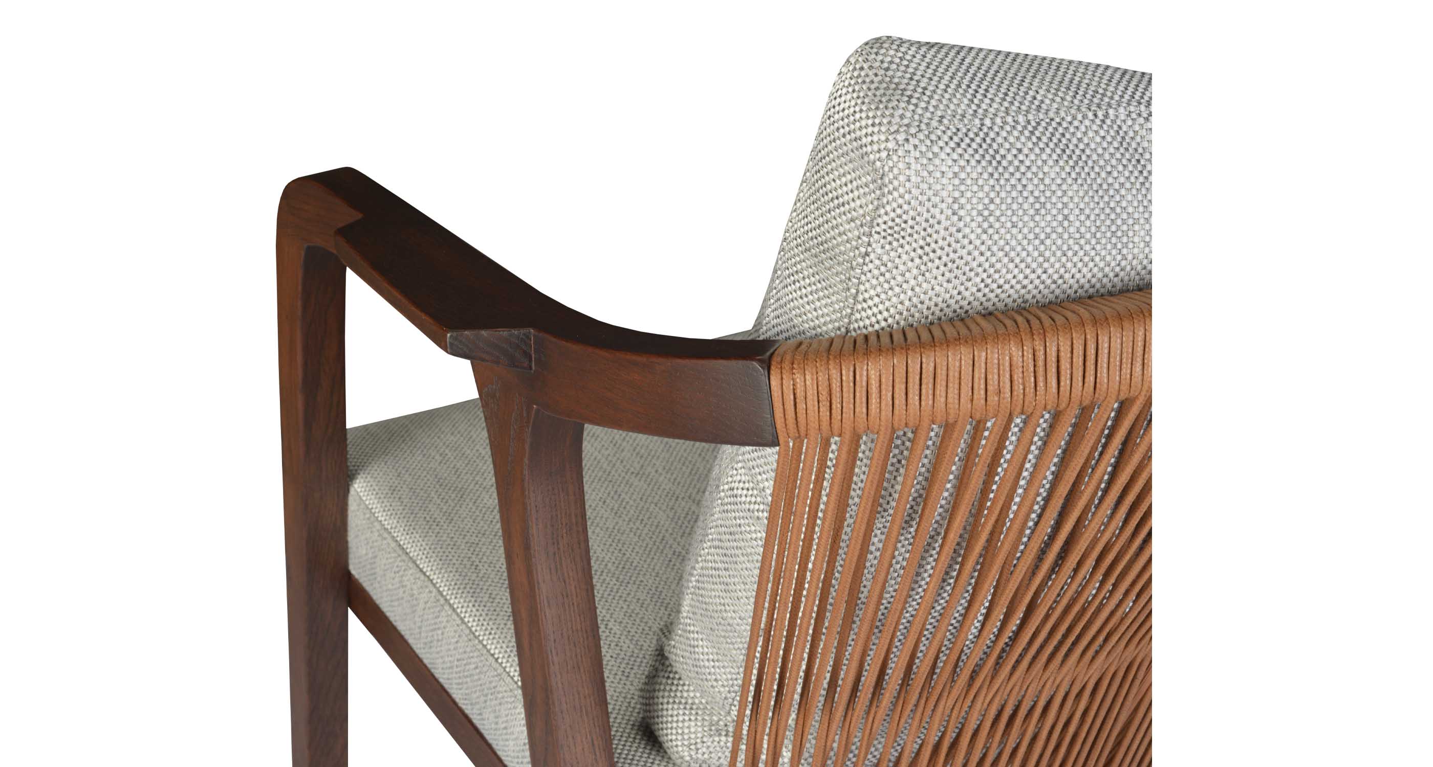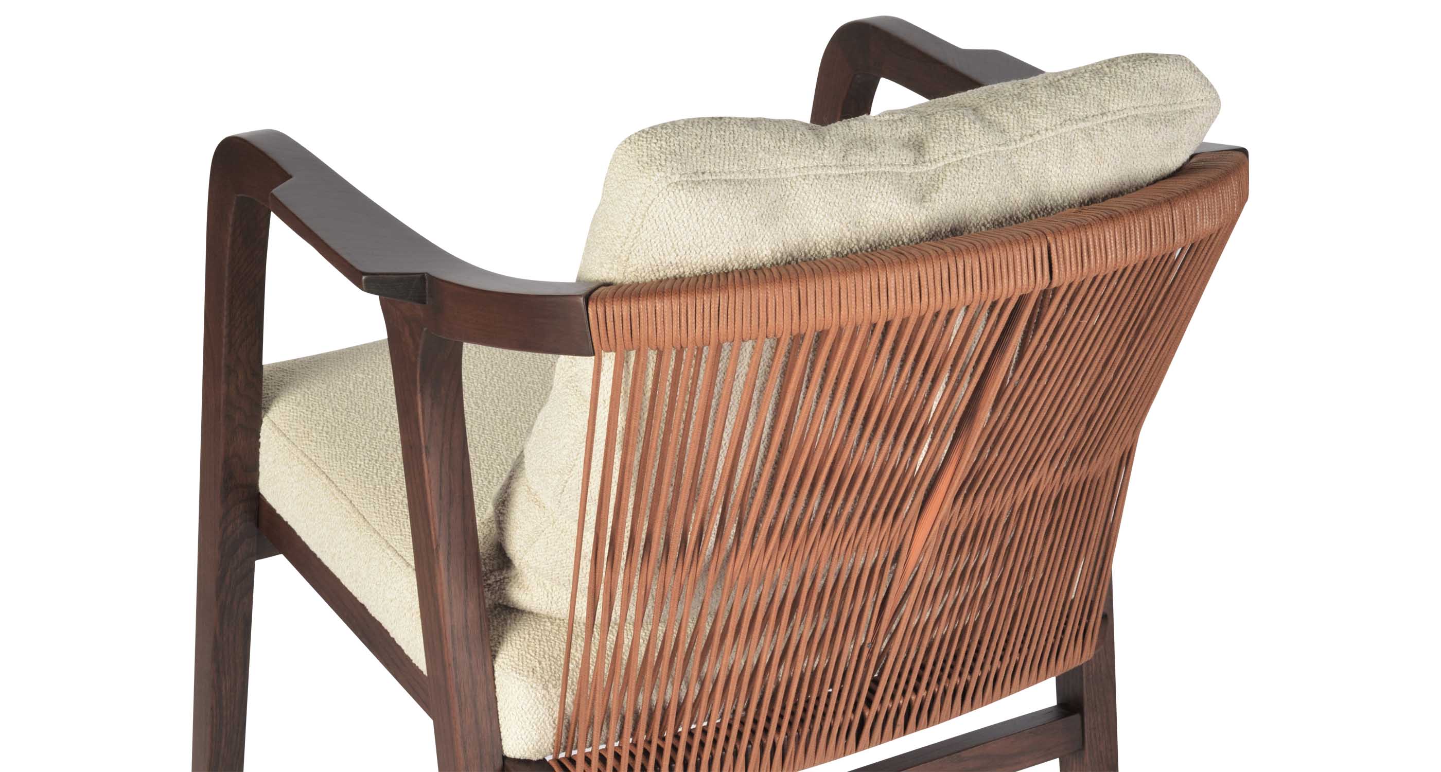 Drops Armchair is a simply designed contemporary dining chair with a comfortable upholstered seat and backrest on wood base. The chair has acrylic rope on the back. Drops Armchair is a perfect design solution for both residential and commercial use.