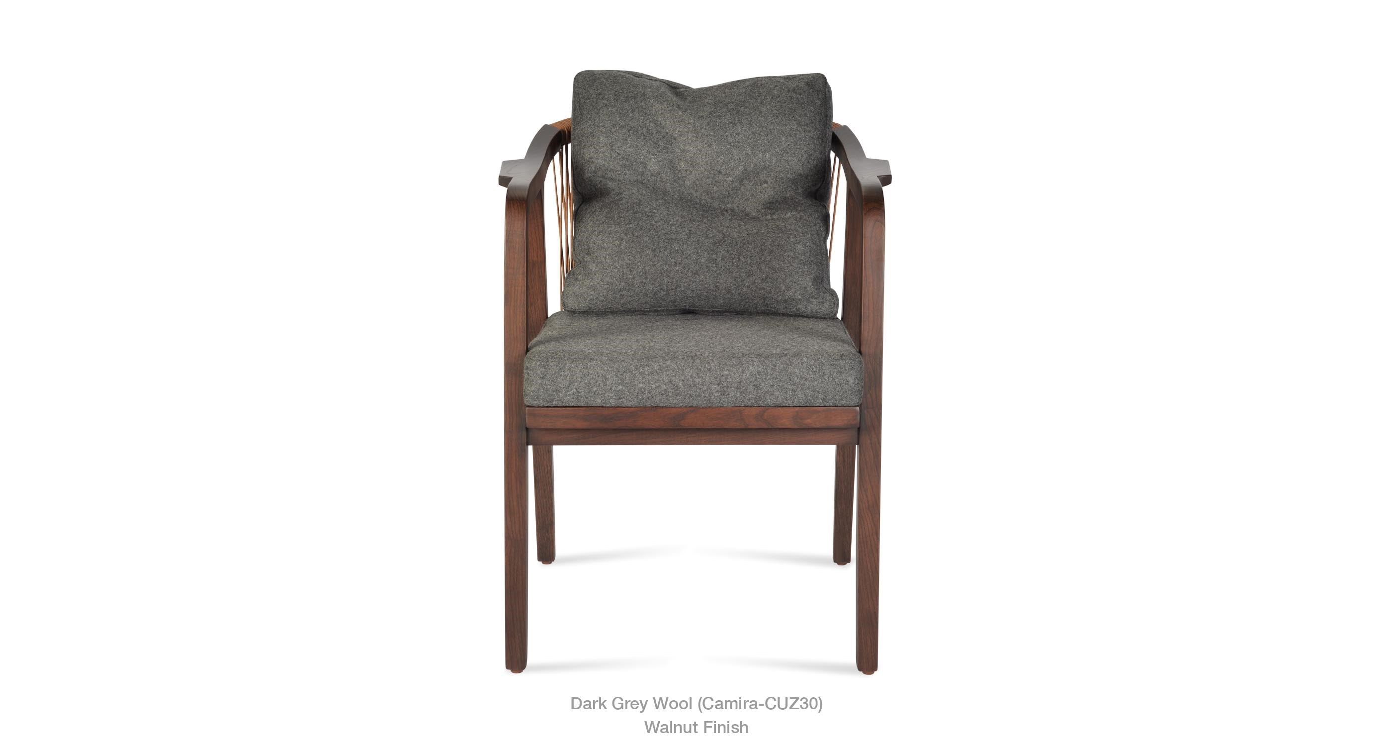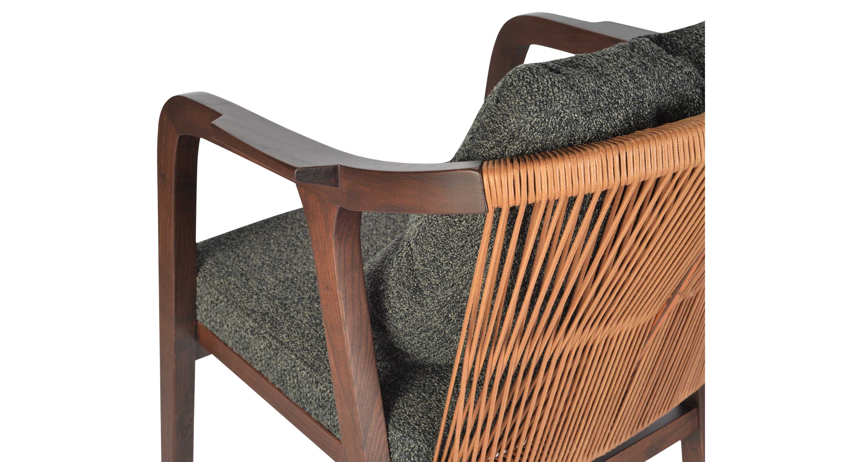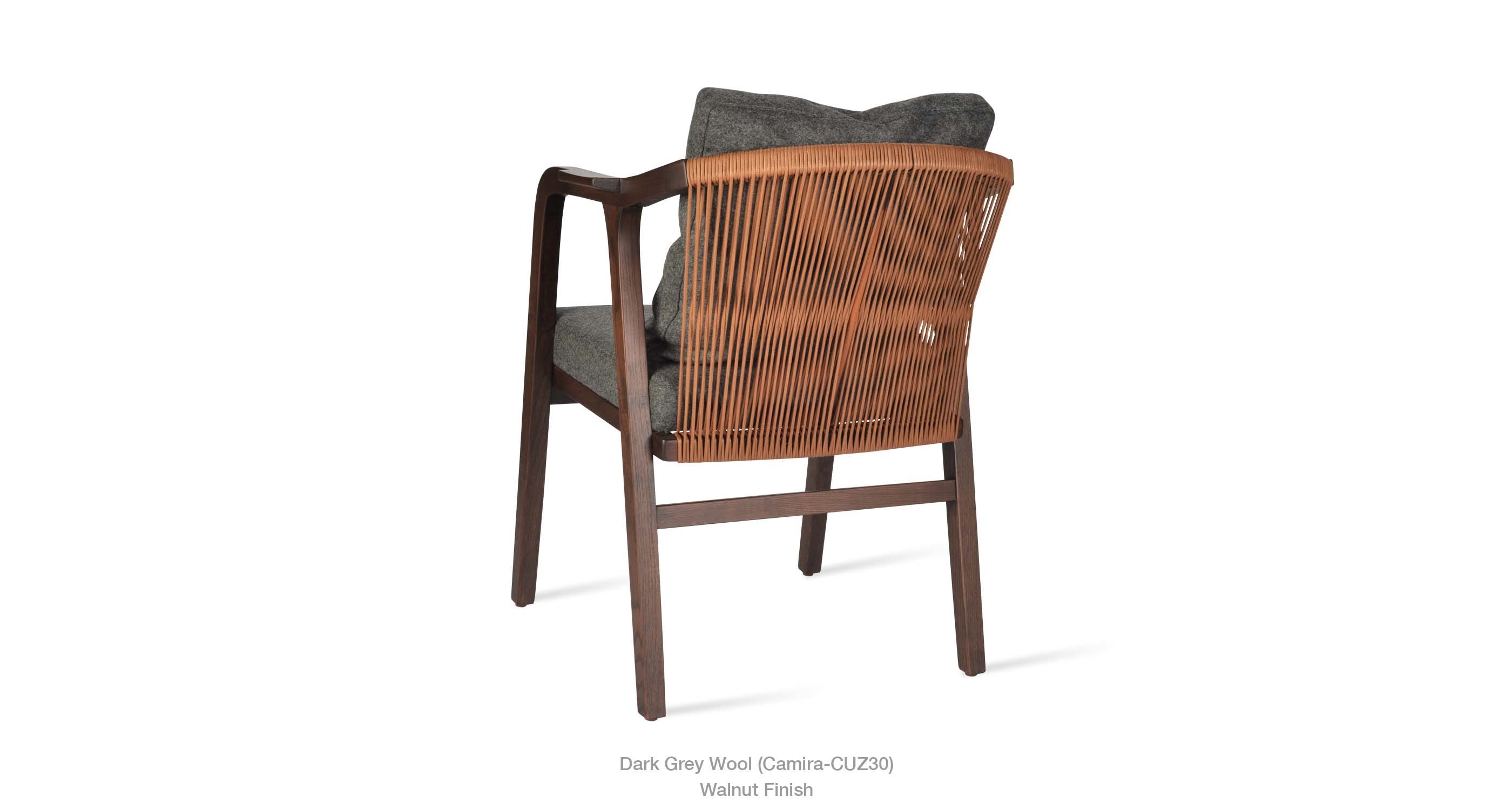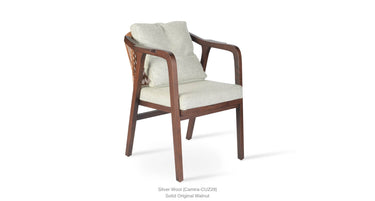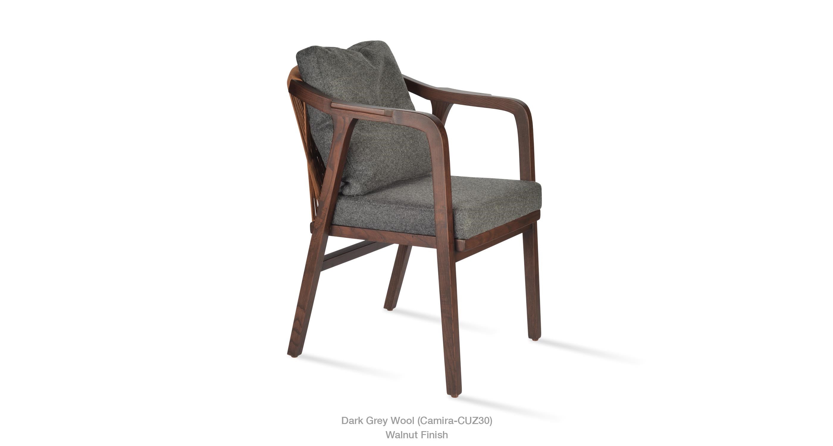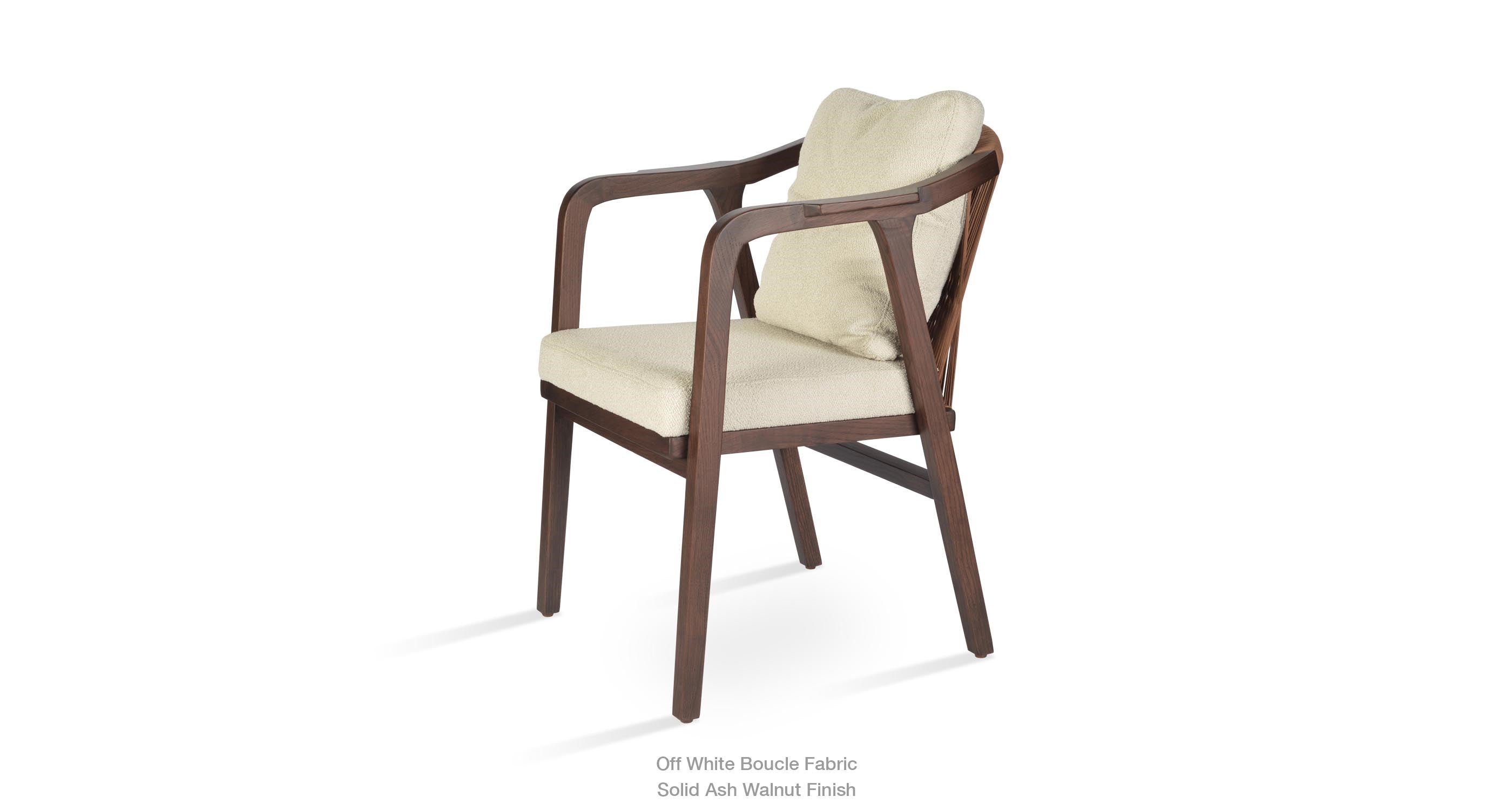 Drops Armchair is a simply designed contemporary dining chair with a comfortable upholstered seat and backrest on wood base. The chair has acrylic rope on the back. Drops Armchair is a perfect design solution for both residential and commercial use.