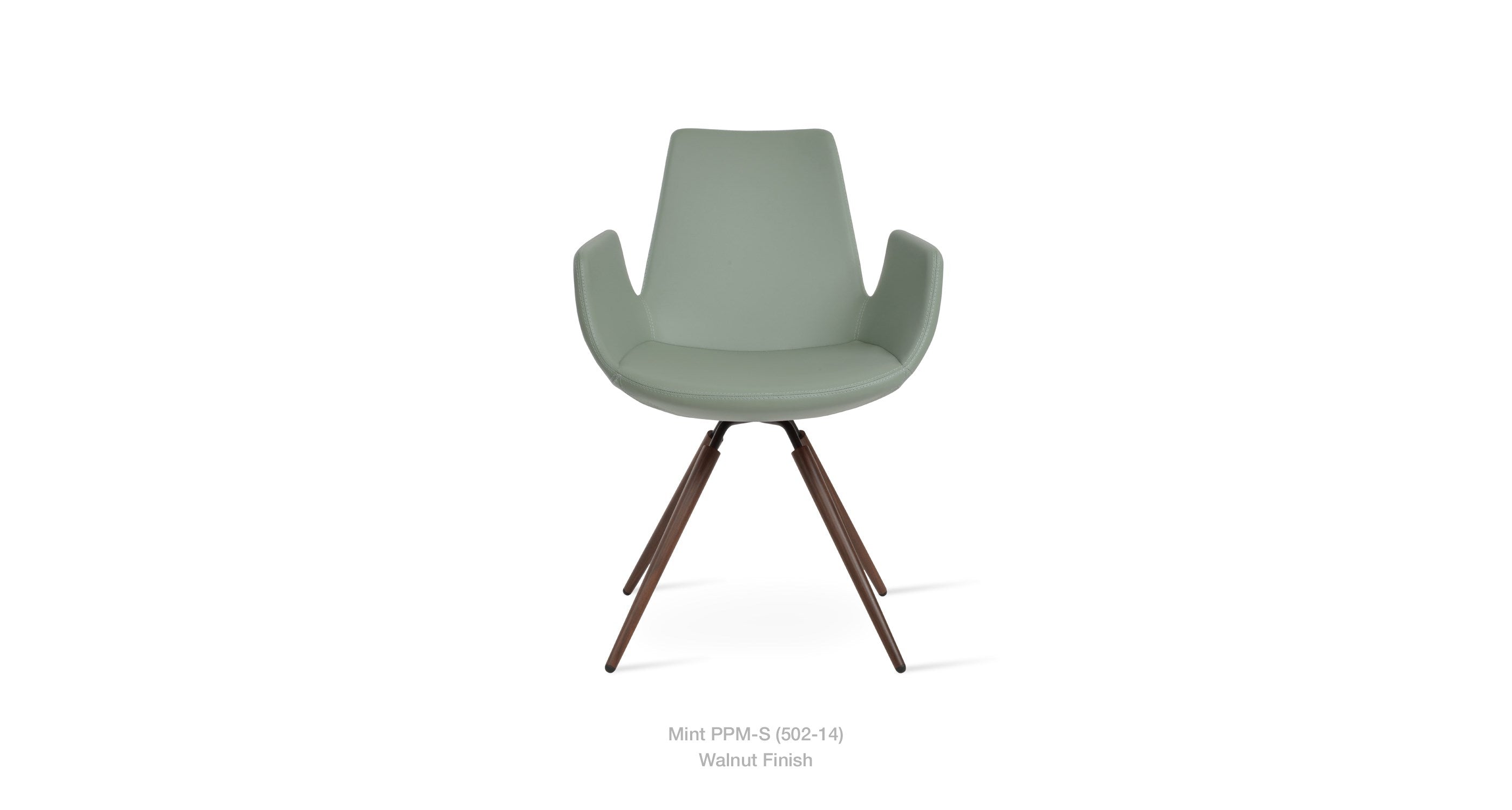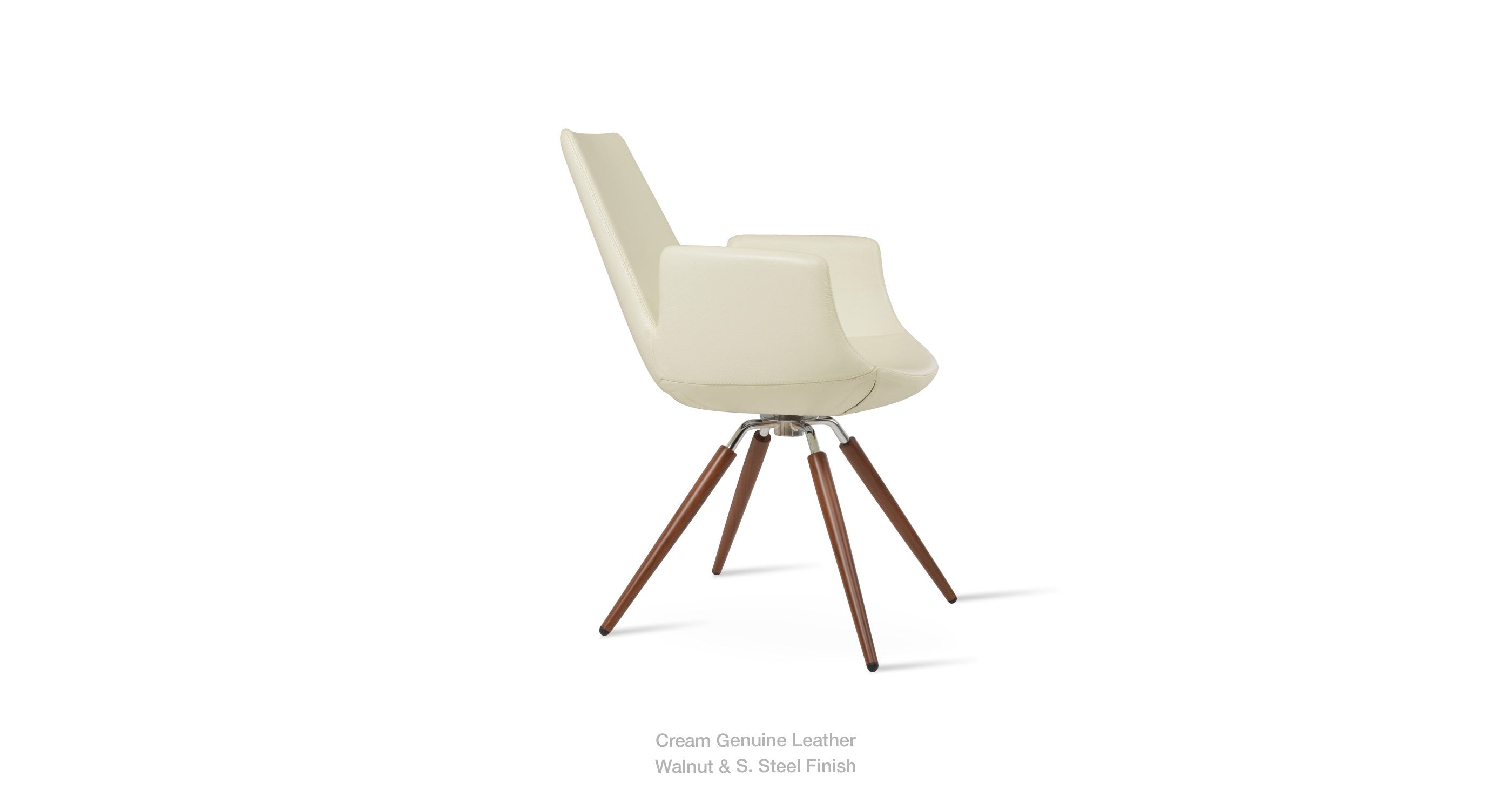 Eiffel Arm Carrot Swivel is a contemporary chair with a comfortable upholstered seat and backrest on a metal swivel legs. The seat has a steel structure with “S” shape springs for extra flexibility and strength. This steel frame is molded by injecting polyurethane foam. Eiffel Arm seat is upholstered with a removable velcro, enclosed leather, PPM, leatherette, wool as well as Camira organic wool slip cover that can be changed with professional help. Eiffel Arm Carrot Swivel may be upholstered with variety of other colors as a special order with a minimum of quantity required. The chair is suitable for both residential and commercial use.