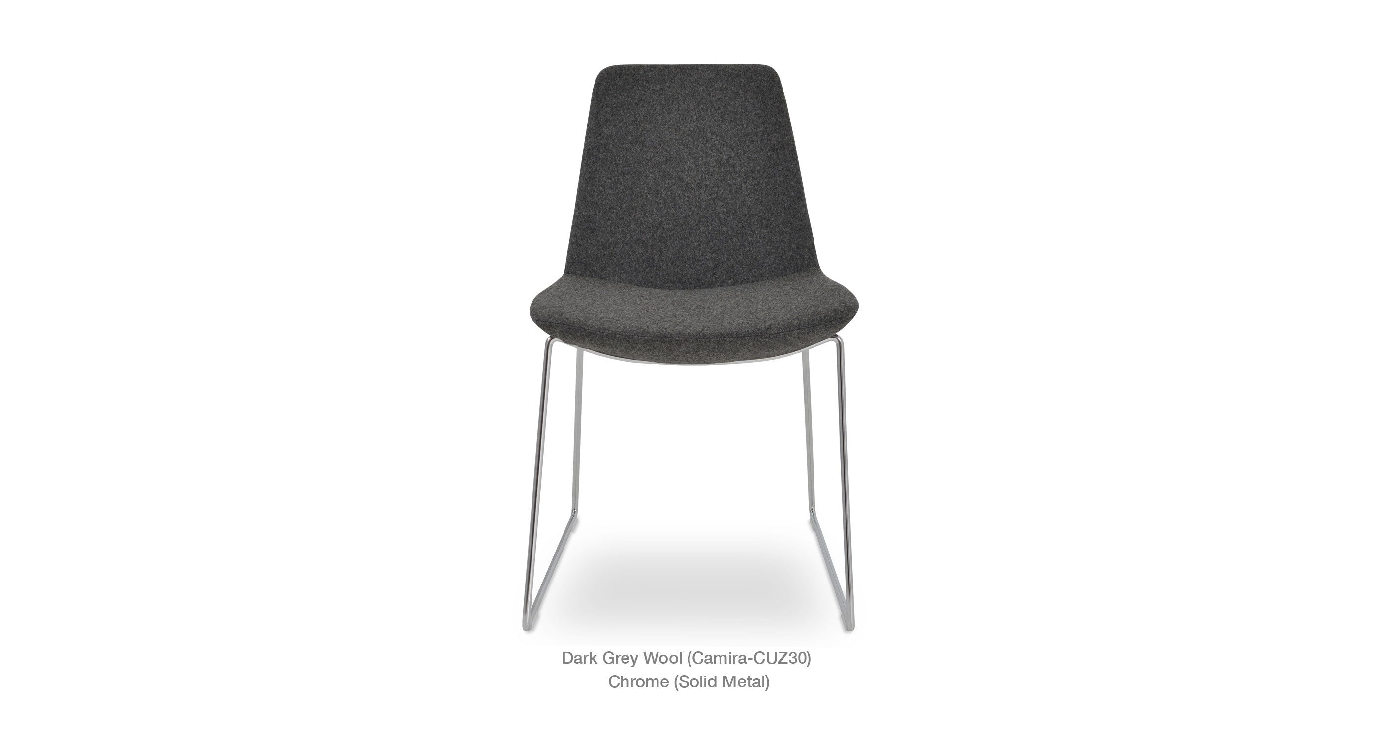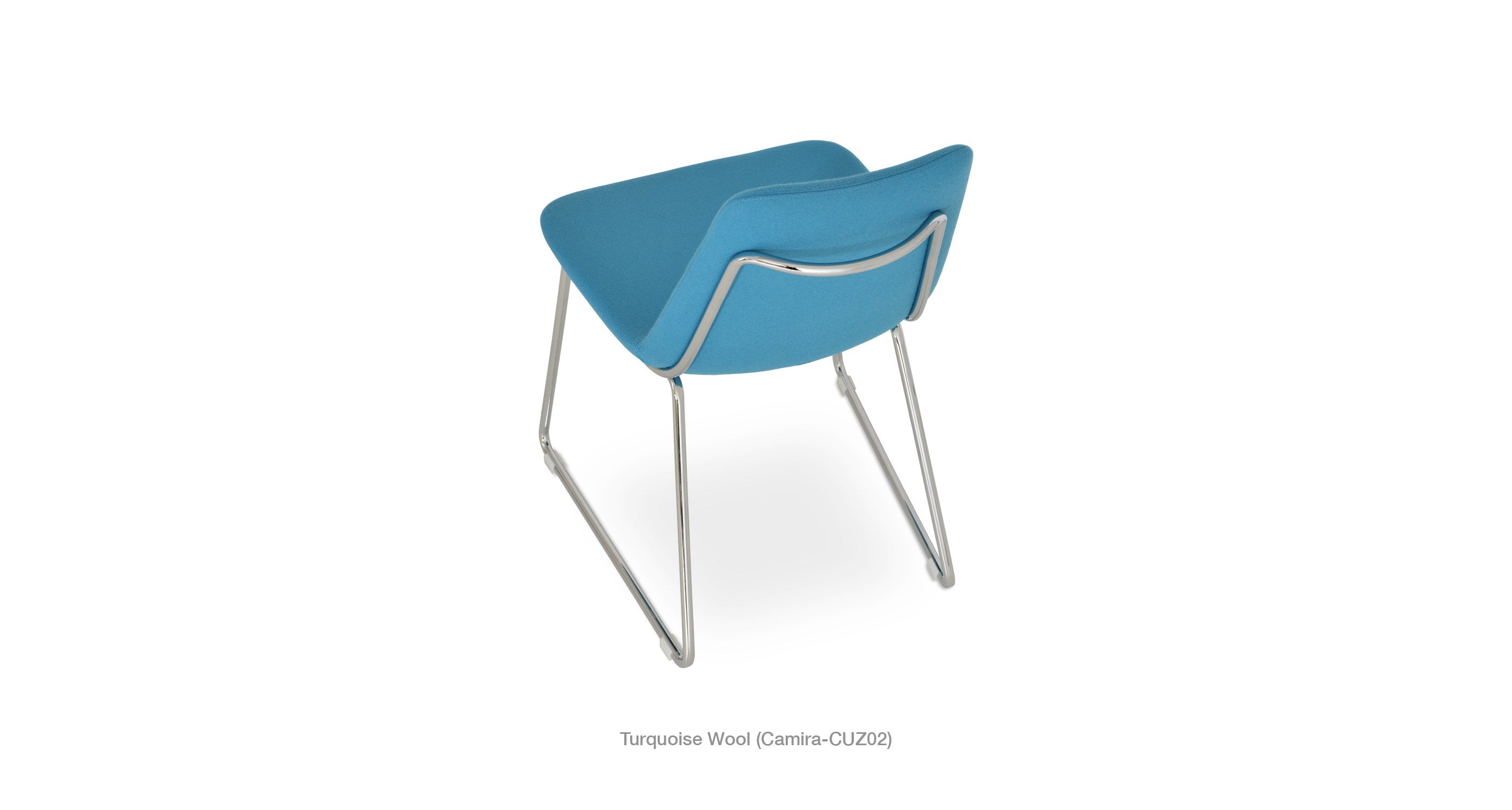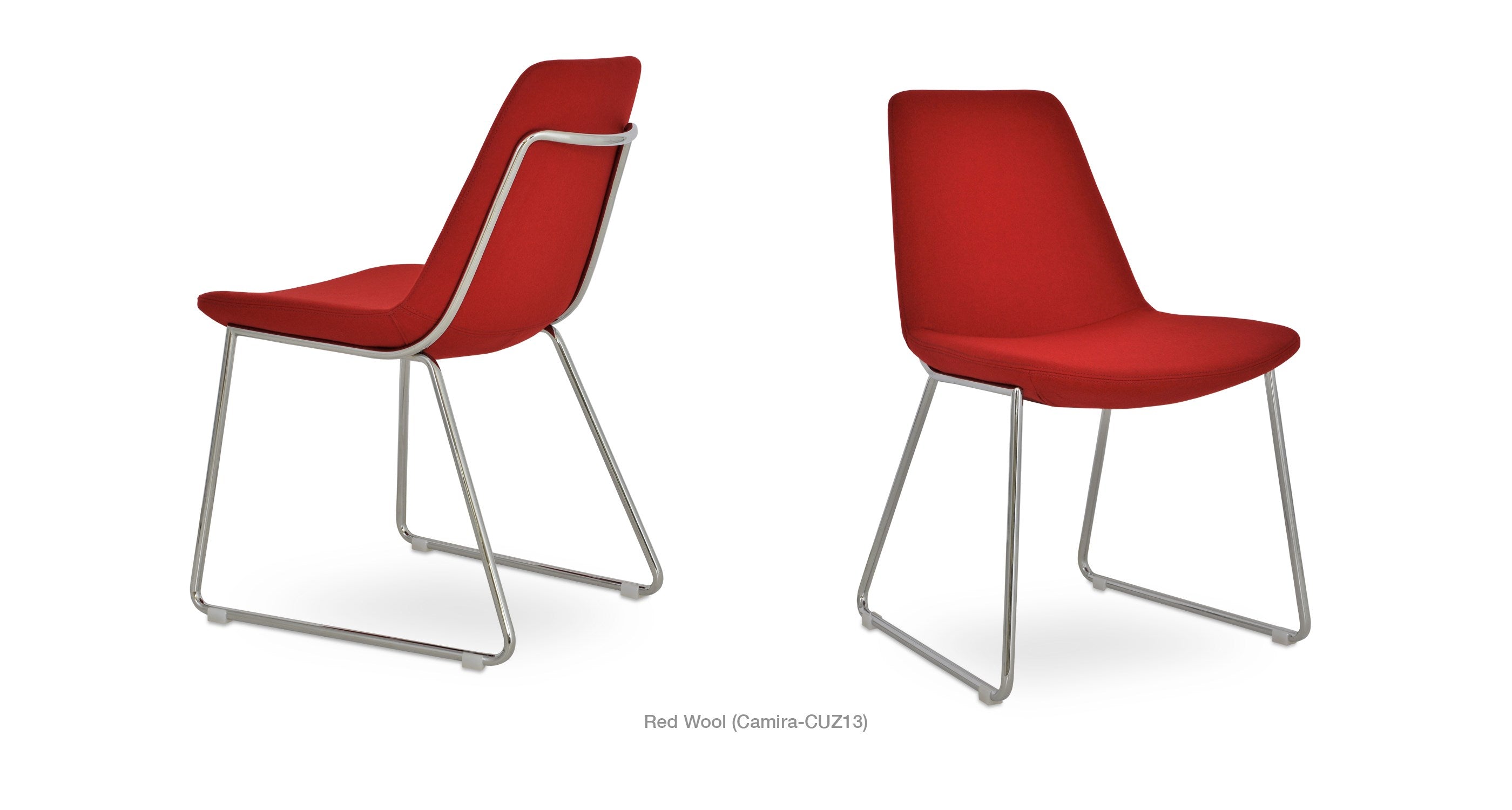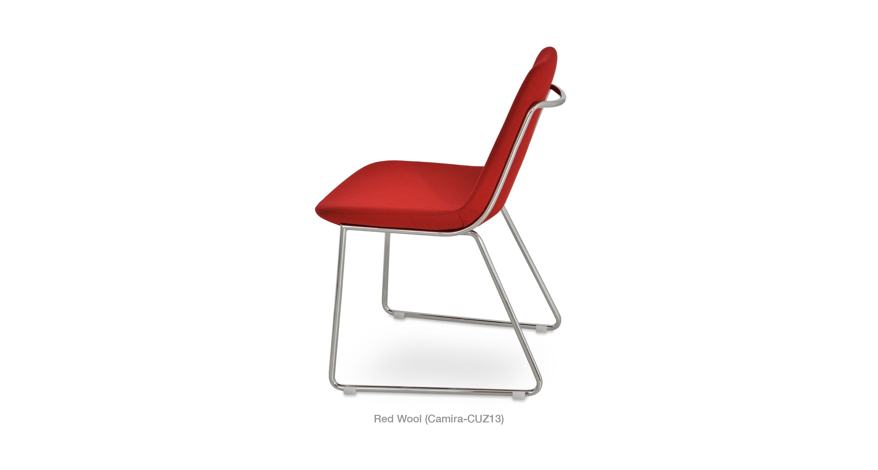 Eiffel Handle Back is a contemporary dining chair with a comfortable upholstered seat and backrest on solid metal wire in chrome, as well as tube available in chrome and black powder coated finish. Each leg is tipped with a plastic glide embedded into the metal wire. The seat has a steel structure with “S” shape springs for extra flexibility and strength. This steel frame is molded by injecting polyurethane foam. Eiffel seat is upholstered with a removable velcro, enclosed leather, PPM, leatherette, wool as well as Camira organic wool slip cover. Eiffel Handle Back may be upholstered with variety of other colors as a special order with a minimum of quantity required. The chair is suitable for both residential and commercial use.
