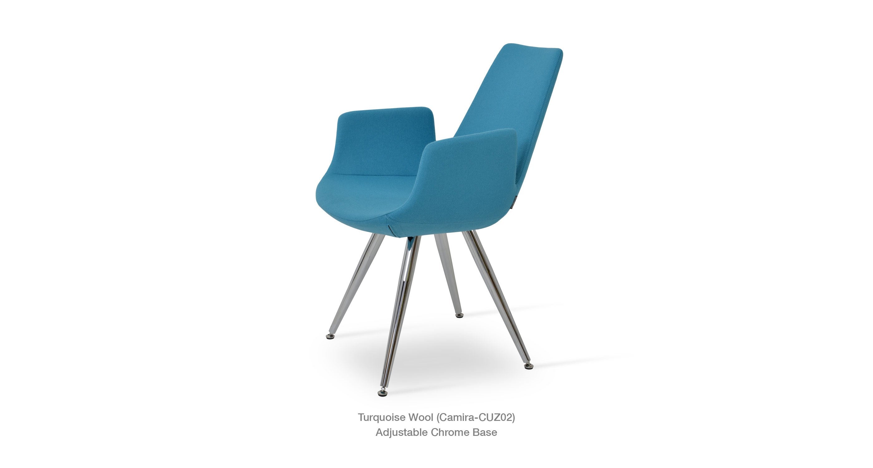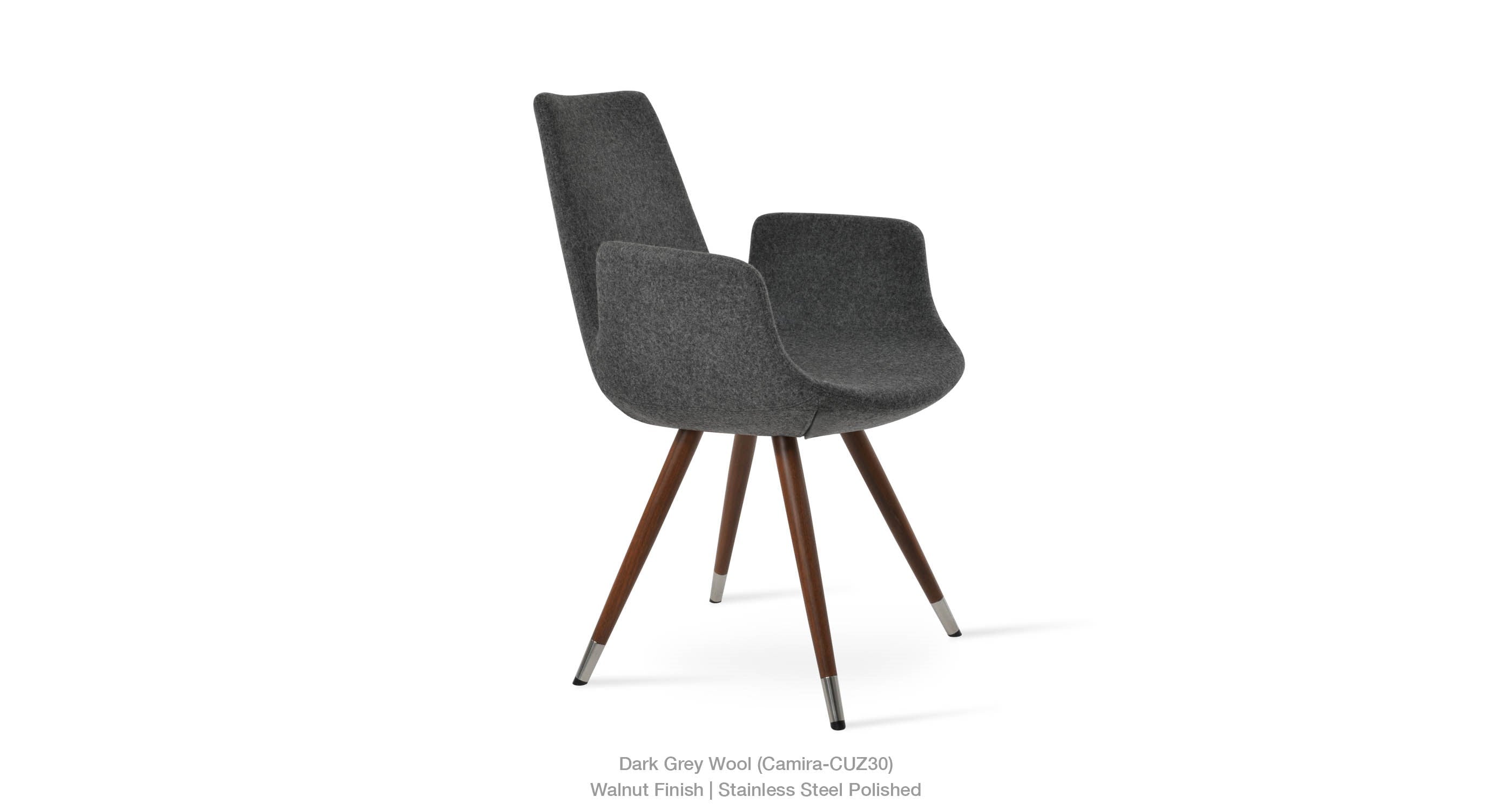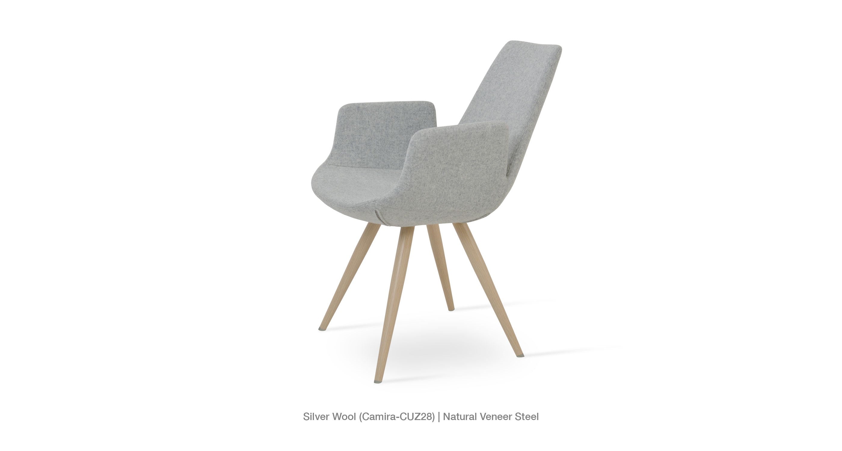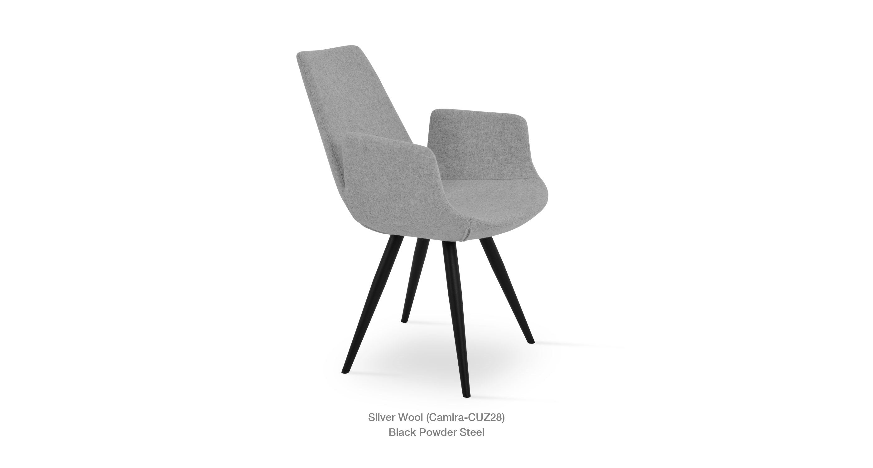 Eiffel Arm Star is a contemporary chair with a comfortable upholstered seat and backrest on a star matt brushed nickel legs. The seat has a steel structure with “S” shape springs for extra flexibility and strength. This steel frame is molded by injecting polyurethane foam. Eiffel seat is upholstered with a removable velcro, enclosed leather, PPM, leatherette, wool as well as Camira organic wool slip cover that can be changed with professional help. Eiffel Arm Star may be upholstered with variety of other colors as a special order with a minimum of quantity required. The chair is suitable for both residential and commercial use.