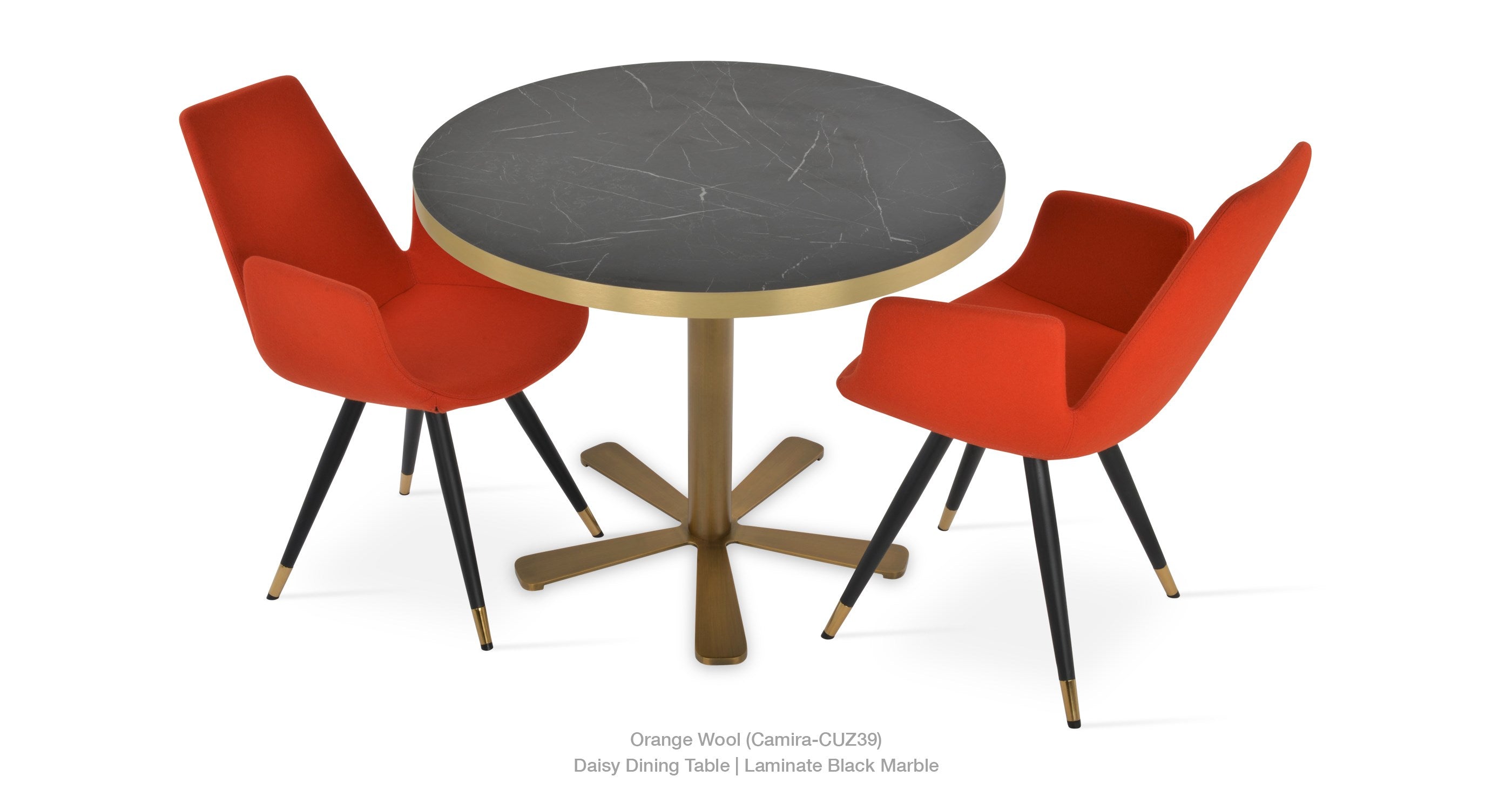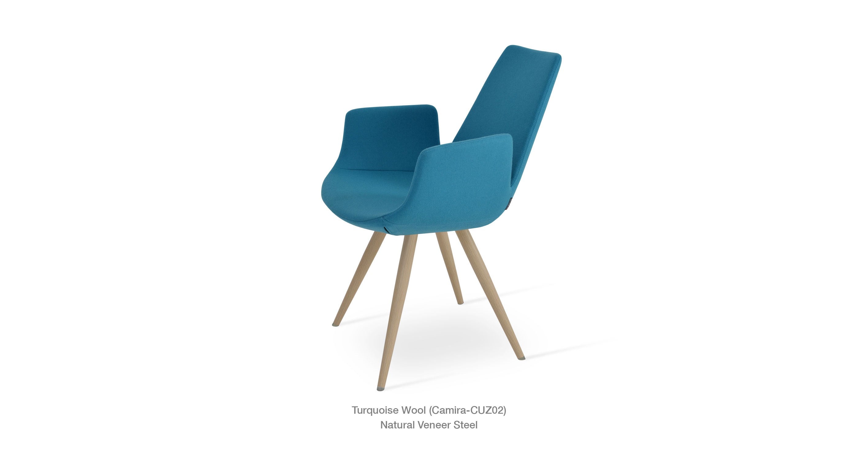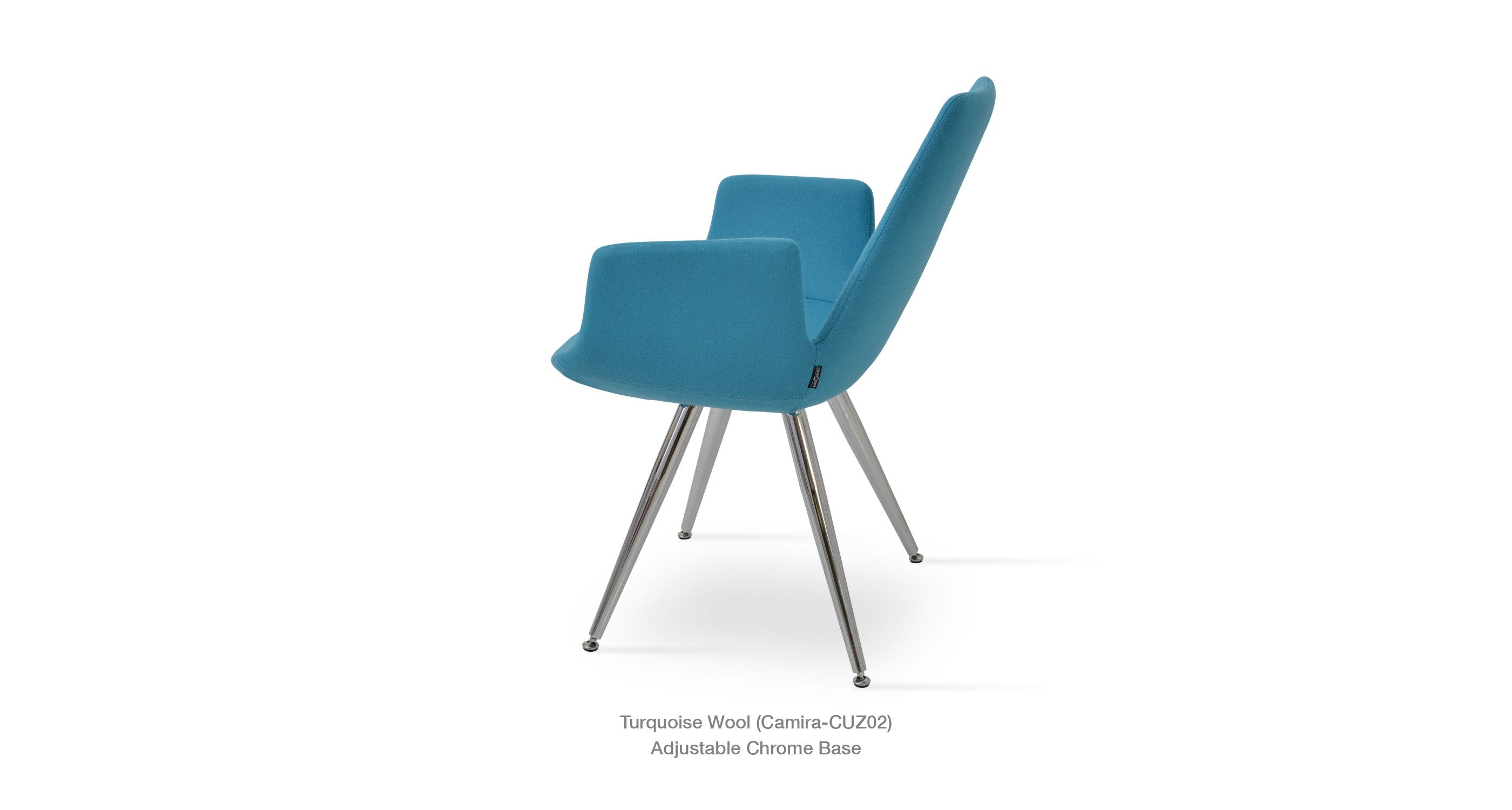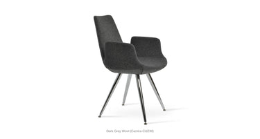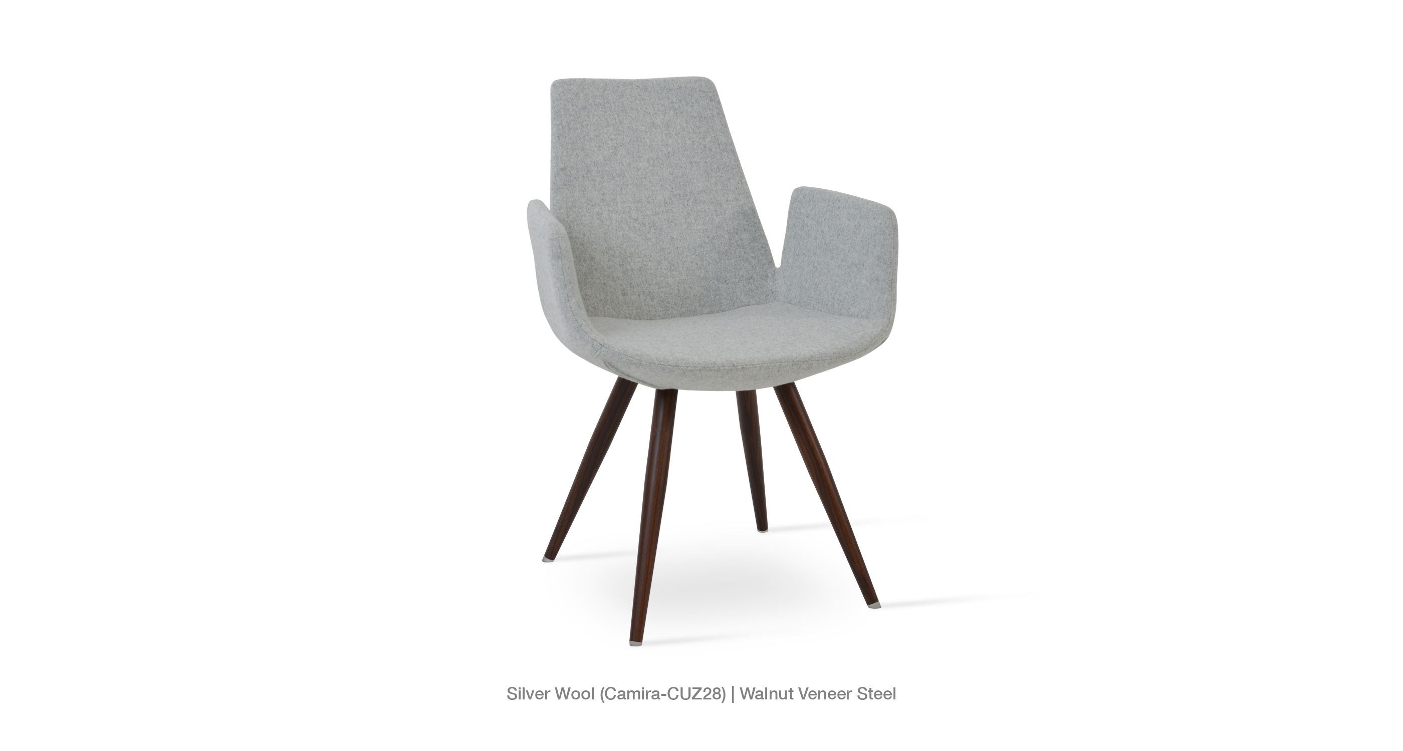 Eiffel Arm Star is a contemporary chair with a comfortable upholstered seat and backrest on a star matt brushed nickel legs. The seat has a steel structure with “S” shape springs for extra flexibility and strength. This steel frame is molded by injecting polyurethane foam. Eiffel seat is upholstered with a removable velcro, enclosed leather, PPM, leatherette, wool as well as Camira organic wool slip cover that can be changed with professional help. Eiffel Arm Star may be upholstered with variety of other colors as a special order with a minimum of quantity required. The chair is suitable for both residential and commercial use.