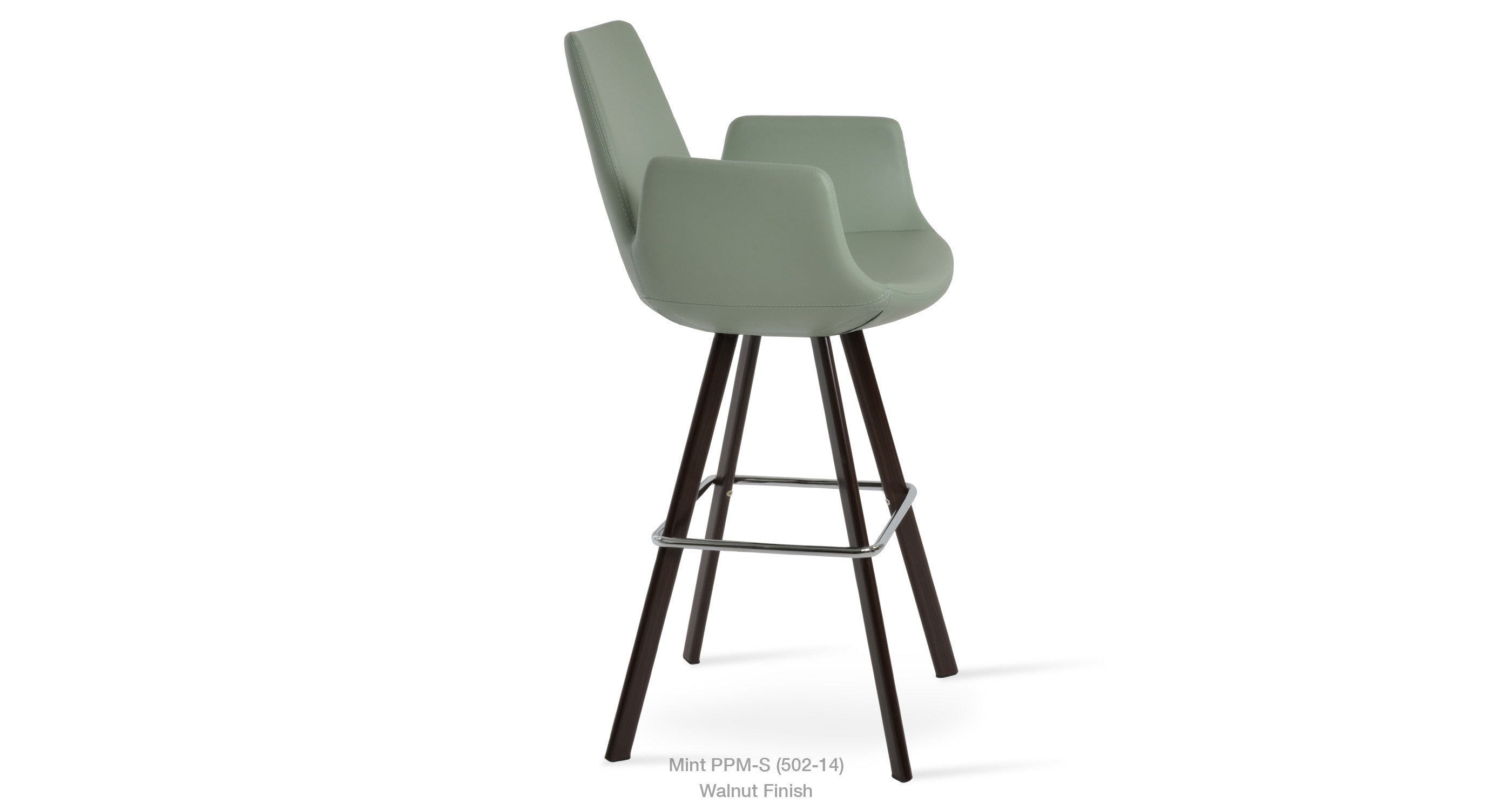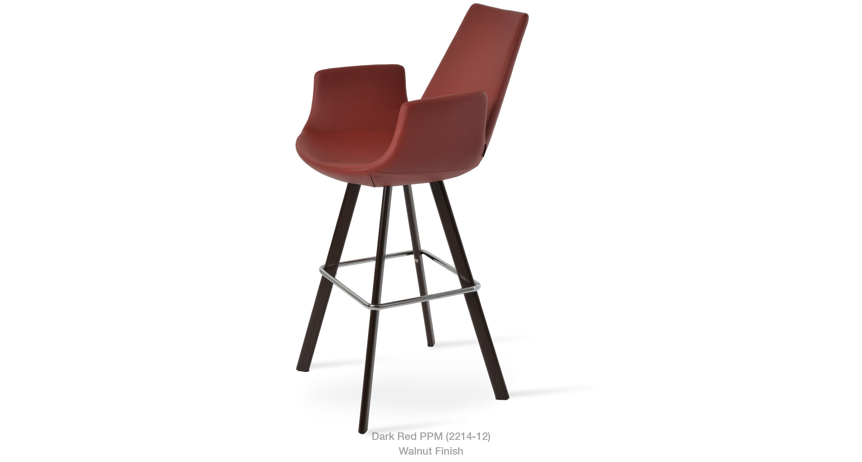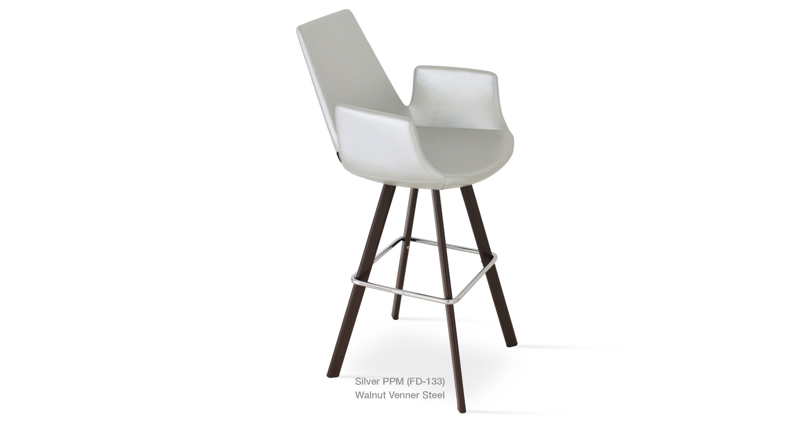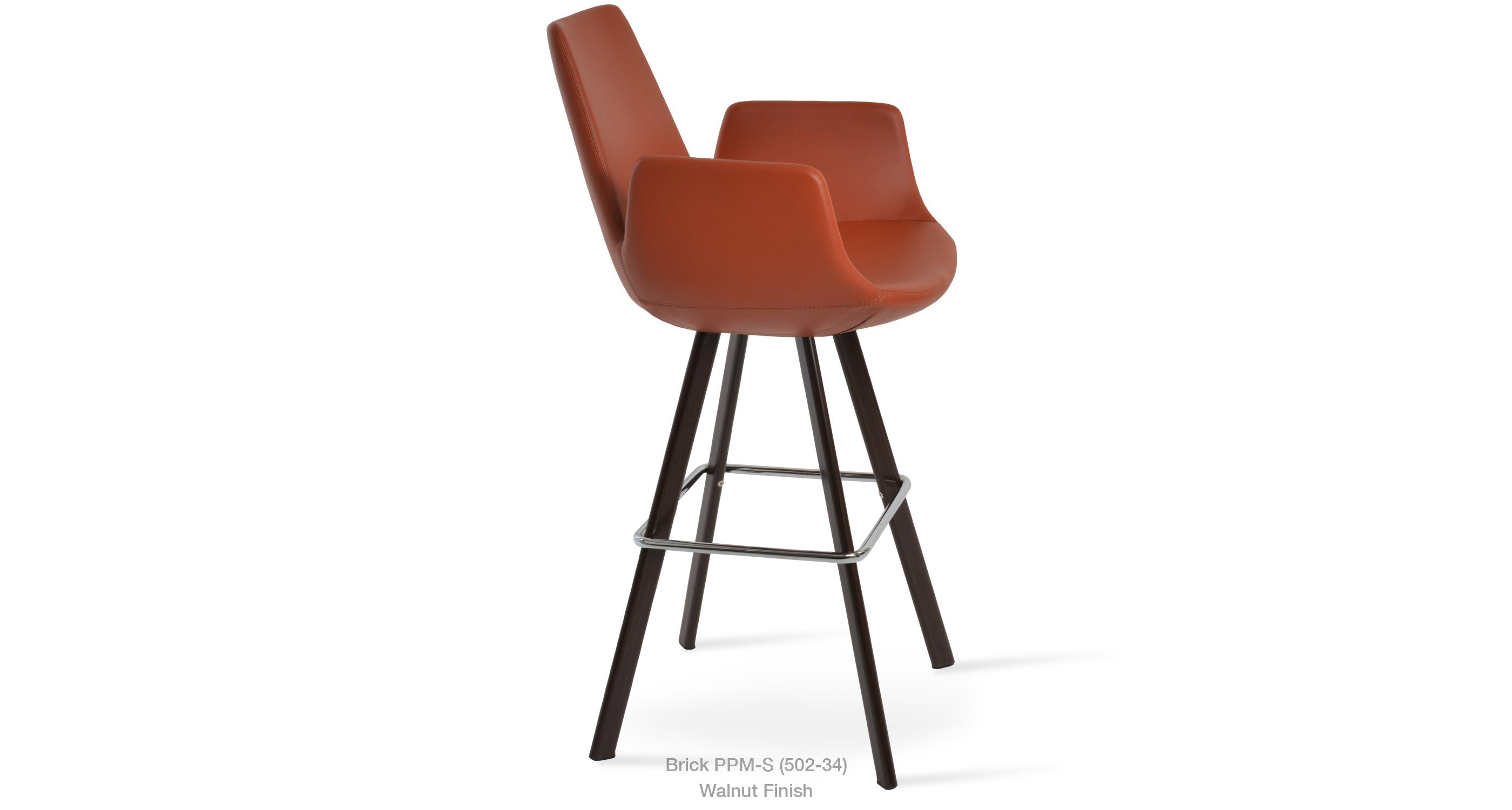 Eiffel Arm Sword Stool is a contemporary chair with a comfortable upholstered seat and backrest on a solid walnut beech. The seat has a steel structure with “S” shape springs for extra flexibility and strength. This steel frame is molded by injecting polyurethane foam. Eiffel seat is upholstered with a removable velcro, enclosed leather, PPM, leatherette, wool as well as Camira organic wool slip cover. Eiffel Arm MW Stool may be upholstered with variety of other colors as a special order with a minimum of 24 required. The chair is suitable for both residential and commercial use.