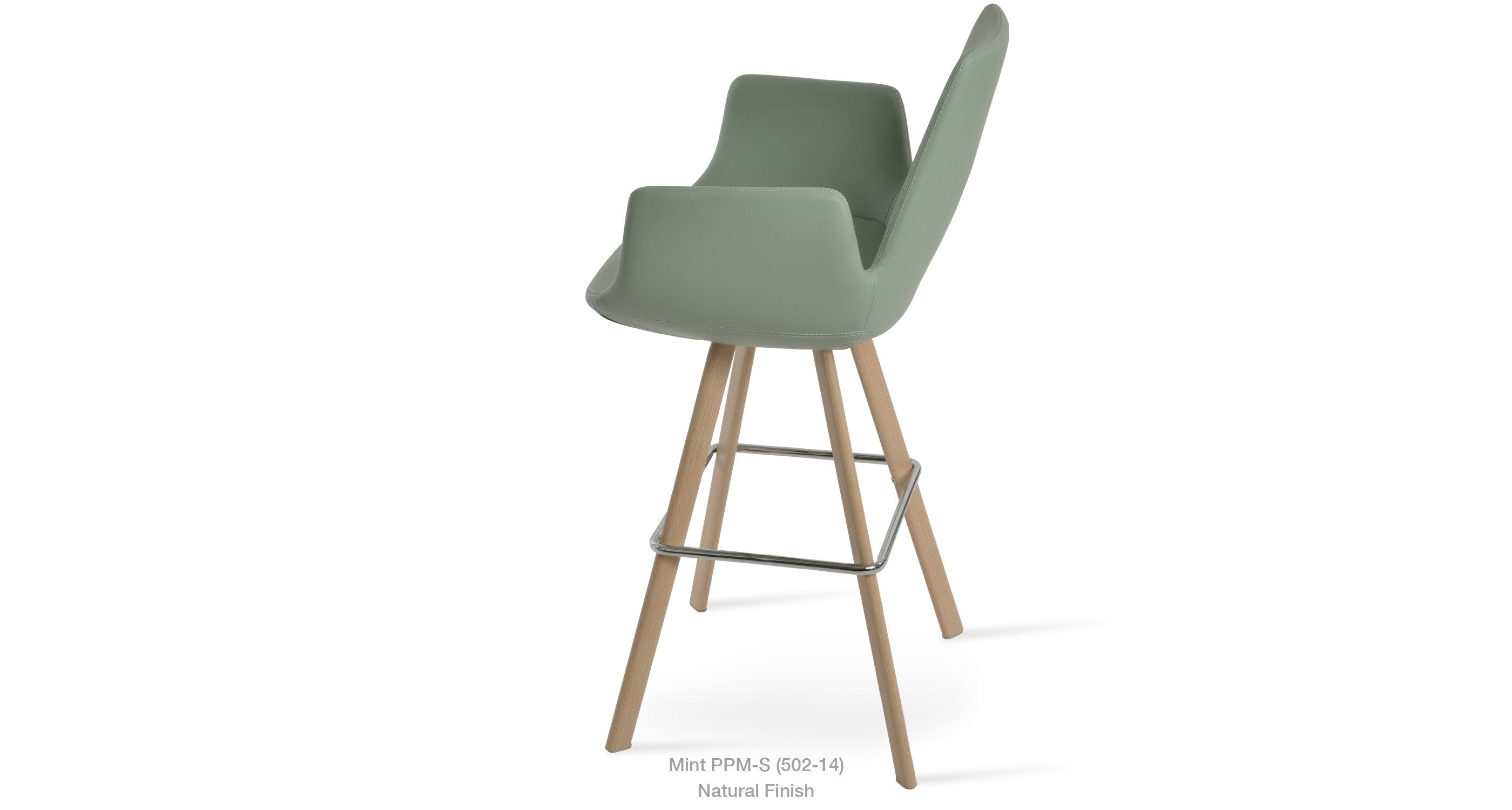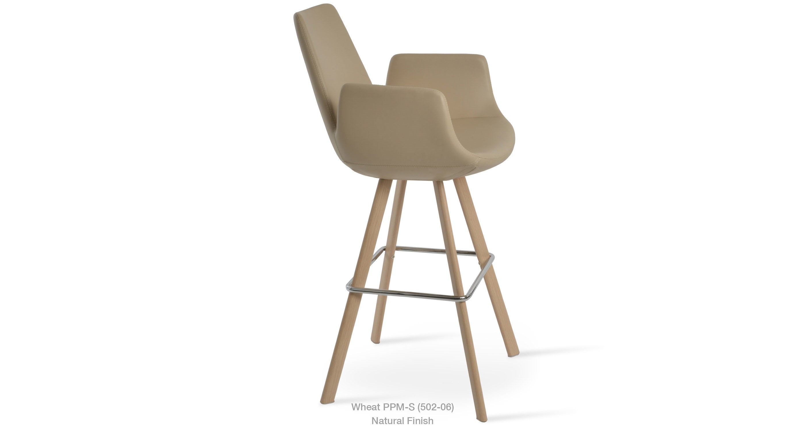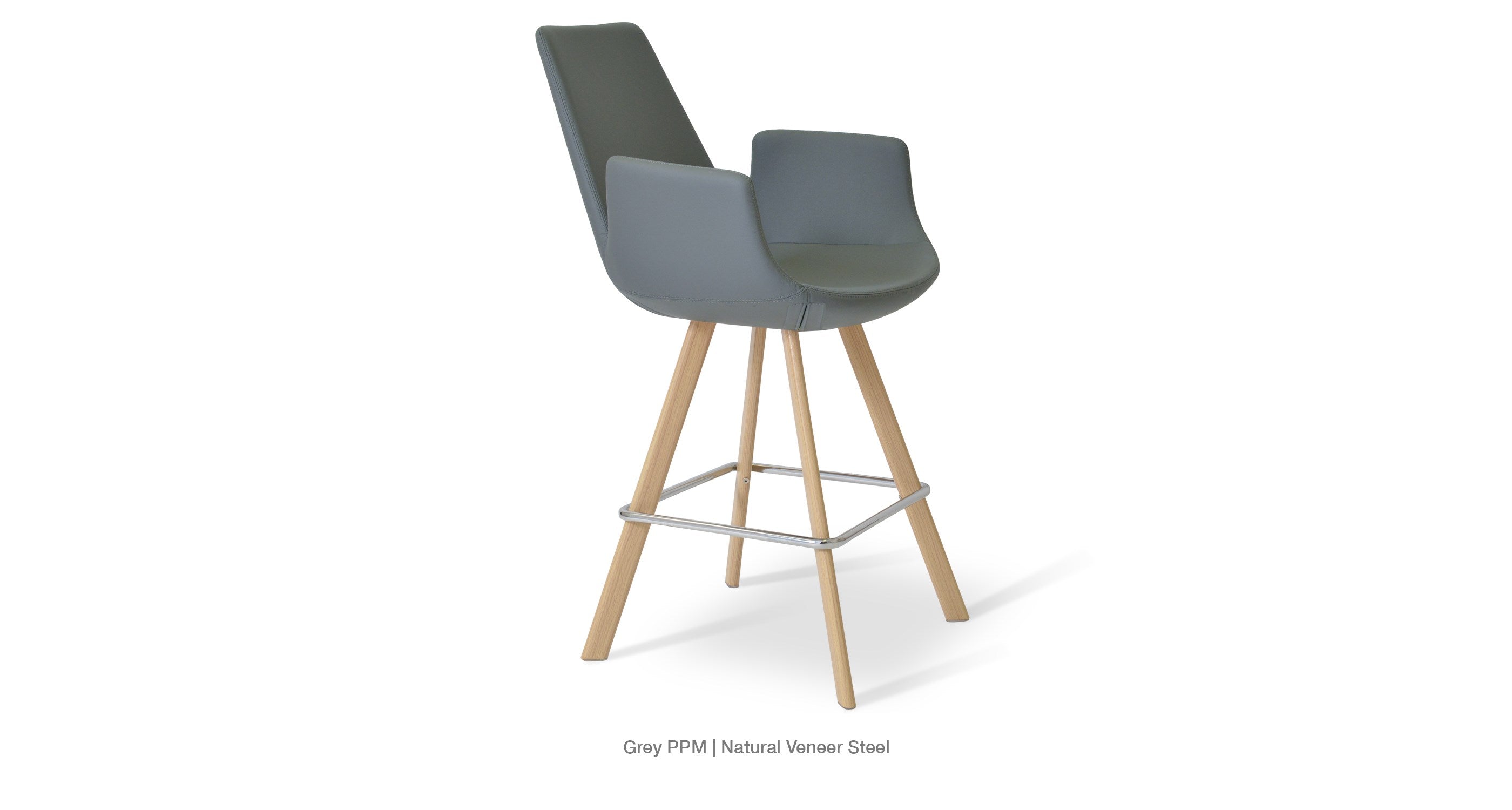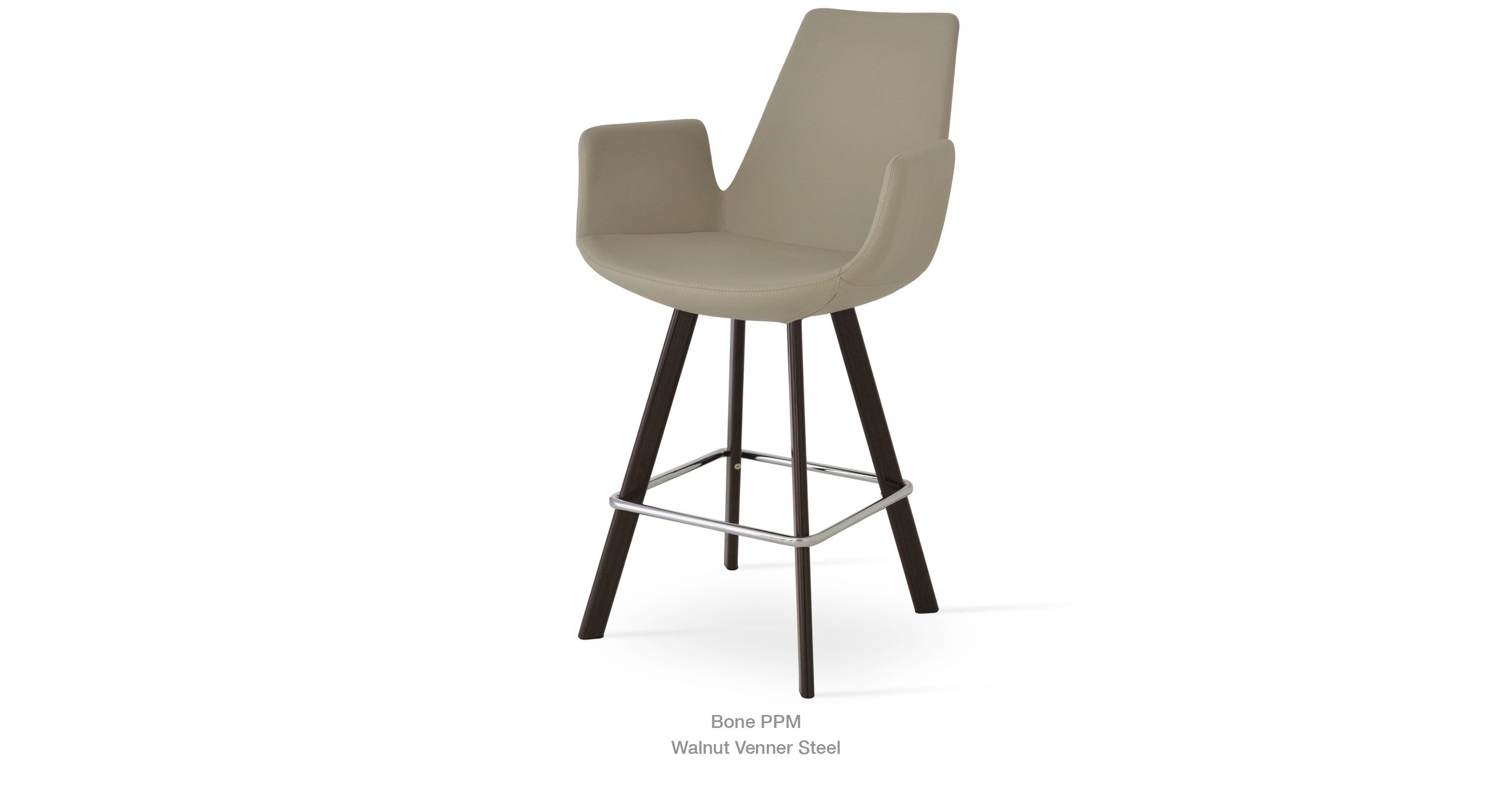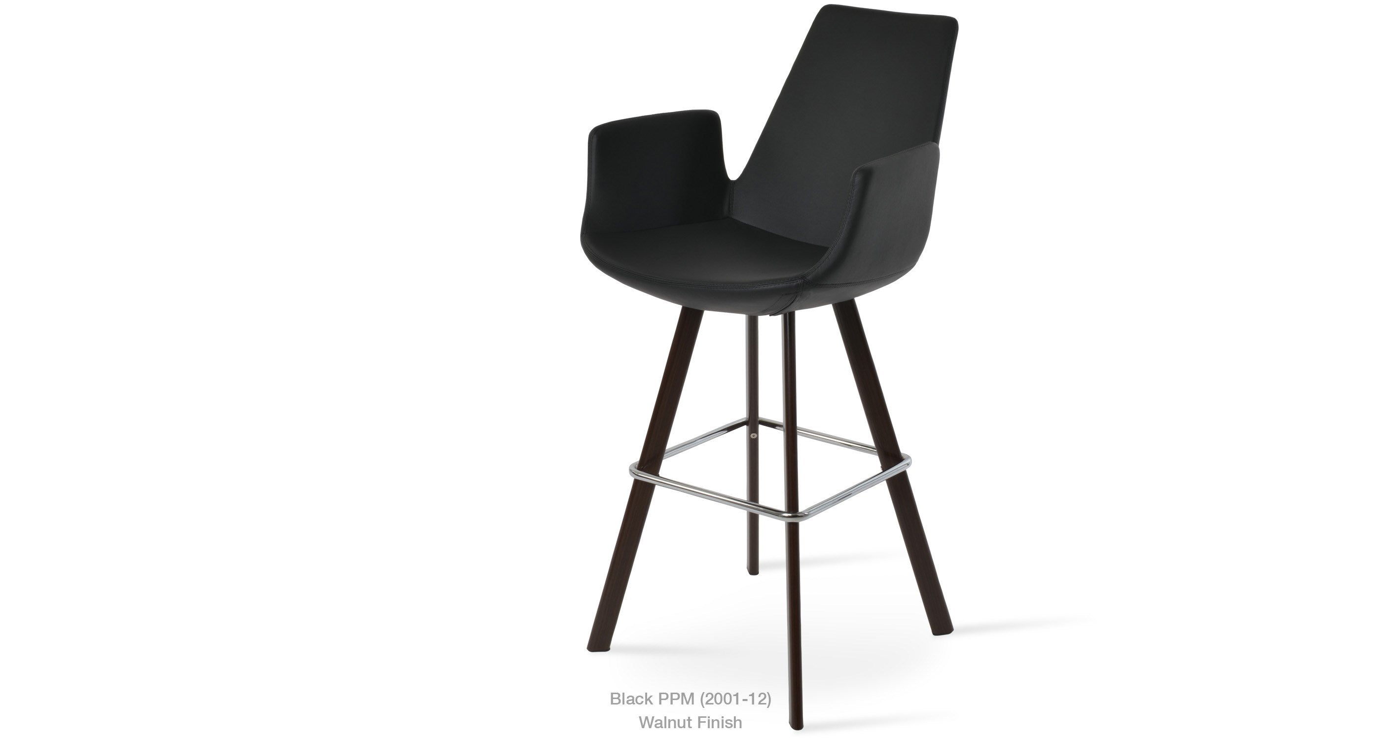 Eiffel Arm Sword Stool is a contemporary chair with a comfortable upholstered seat and backrest on a solid walnut beech. The seat has a steel structure with “S” shape springs for extra flexibility and strength. This steel frame is molded by injecting polyurethane foam. Eiffel seat is upholstered with a removable velcro, enclosed leather, PPM, leatherette, wool as well as Camira organic wool slip cover. Eiffel Arm MW Stool may be upholstered with variety of other colors as a special order with a minimum of 24 required. The chair is suitable for both residential and commercial use.