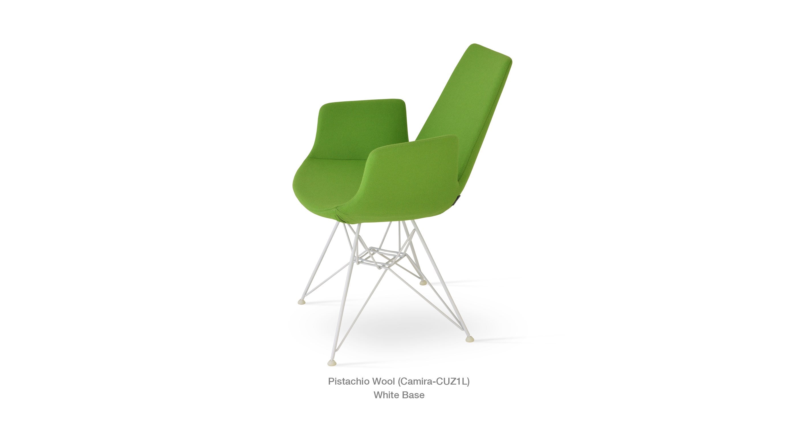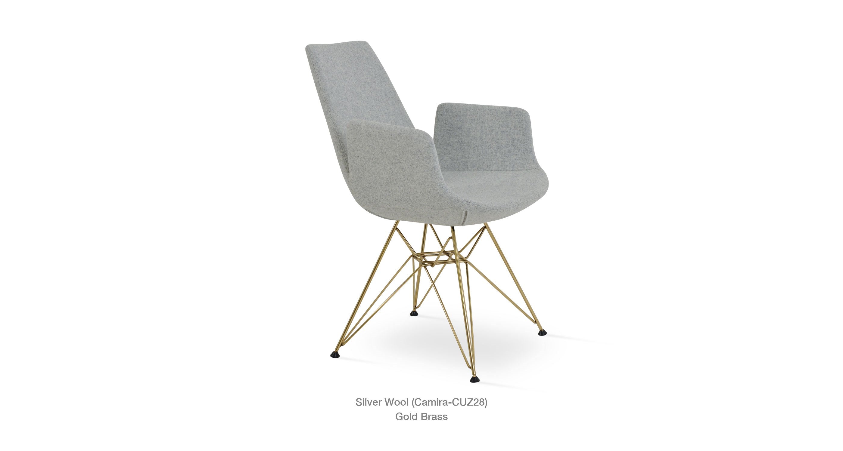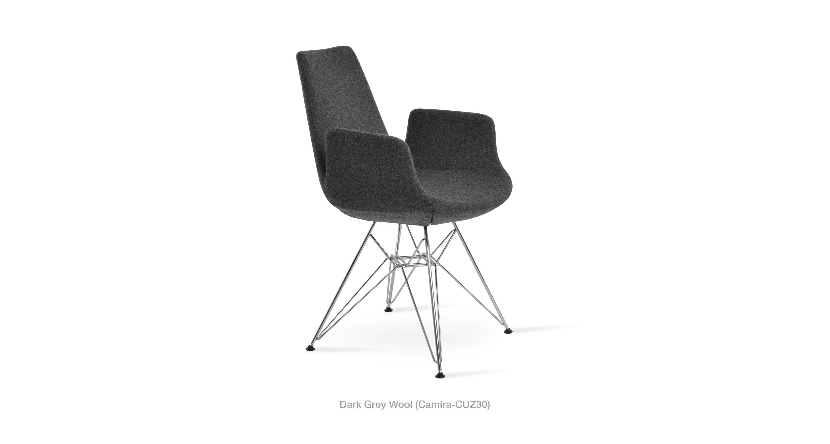 Eiffel Arm Tower is a contemporary chair with a comfortable upholstered seat and backrest matt brushed nickel legs. The seat has a steel structure with “S” shape springs for extra flexibility and strength. This steel frame is molded by injecting polyurethane foam. Eiffel seat is upholstered with a removable velcro, enclosed leather, PPM, leatherette, wool as well as Camira organic wool slip cover that can be changed with professional help. Eiffel Arm Tower may be upholstered with variety of other colors as a special order with a minimum of quantity required. The chair is suitable for both residential and commercial use.