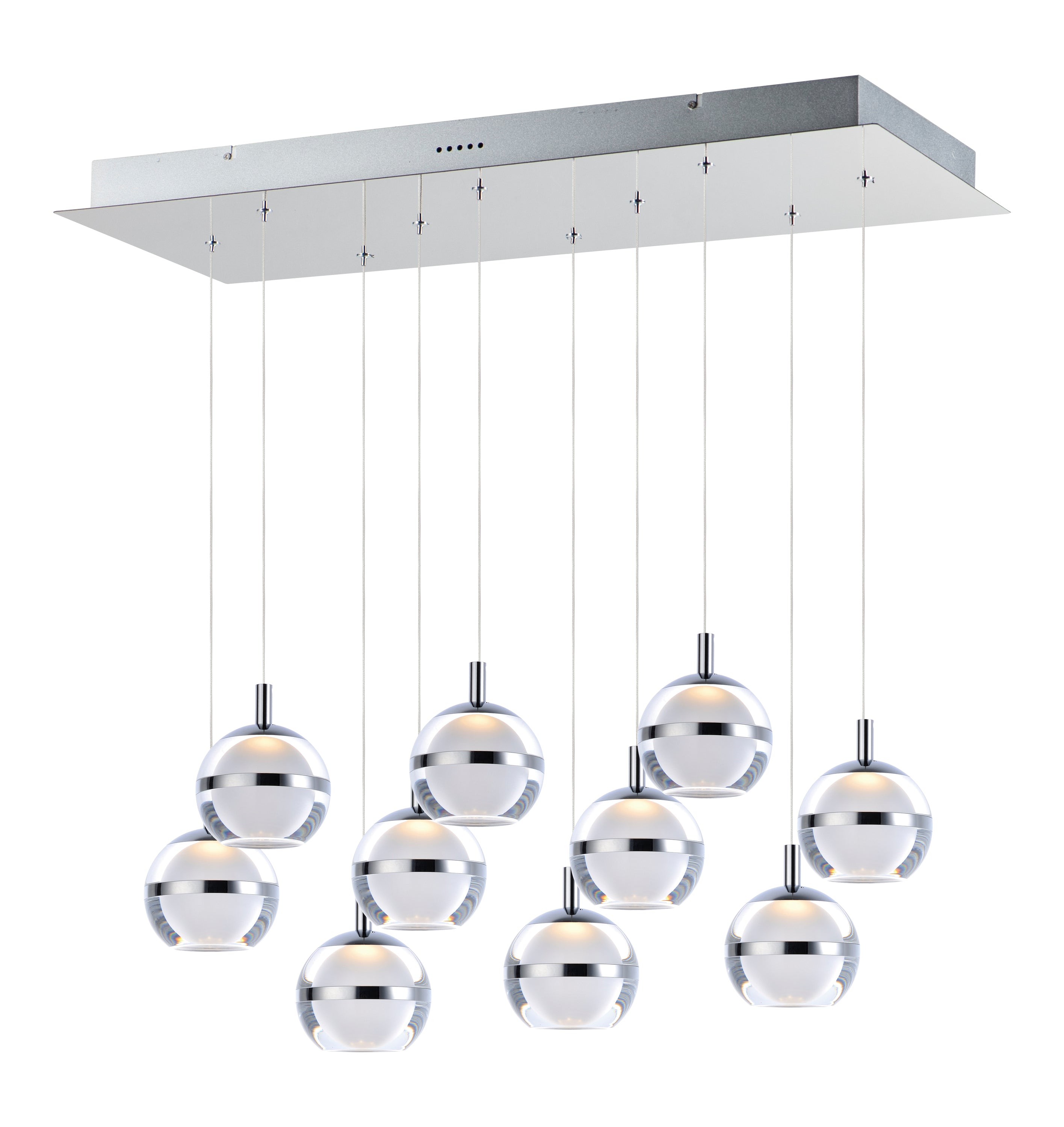 Orbs of crystal Clear acrylic are trimmed with a metal band and frosted inside for excellent light diffusion. The bottom is dimpled for a unique optical effect.