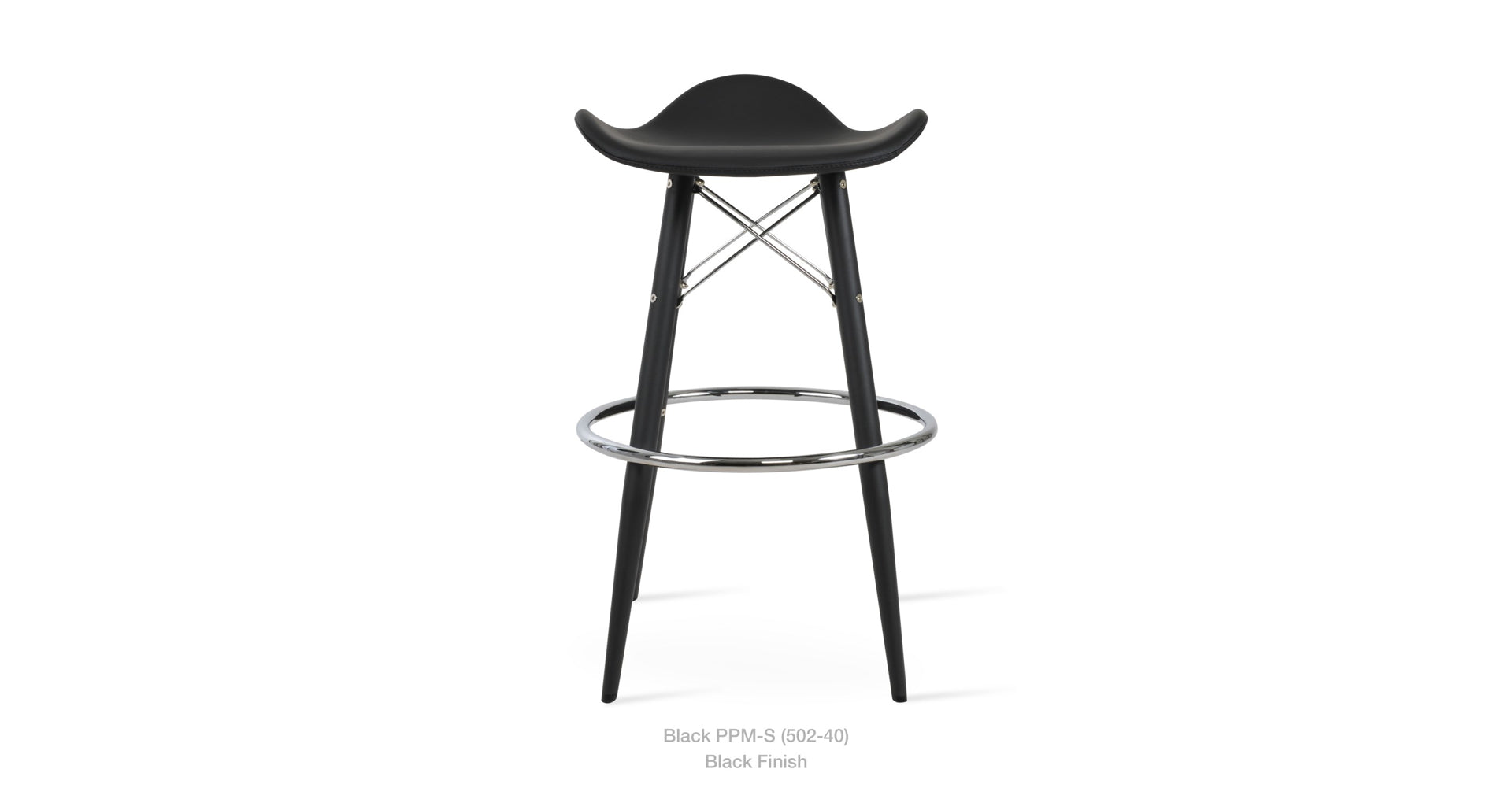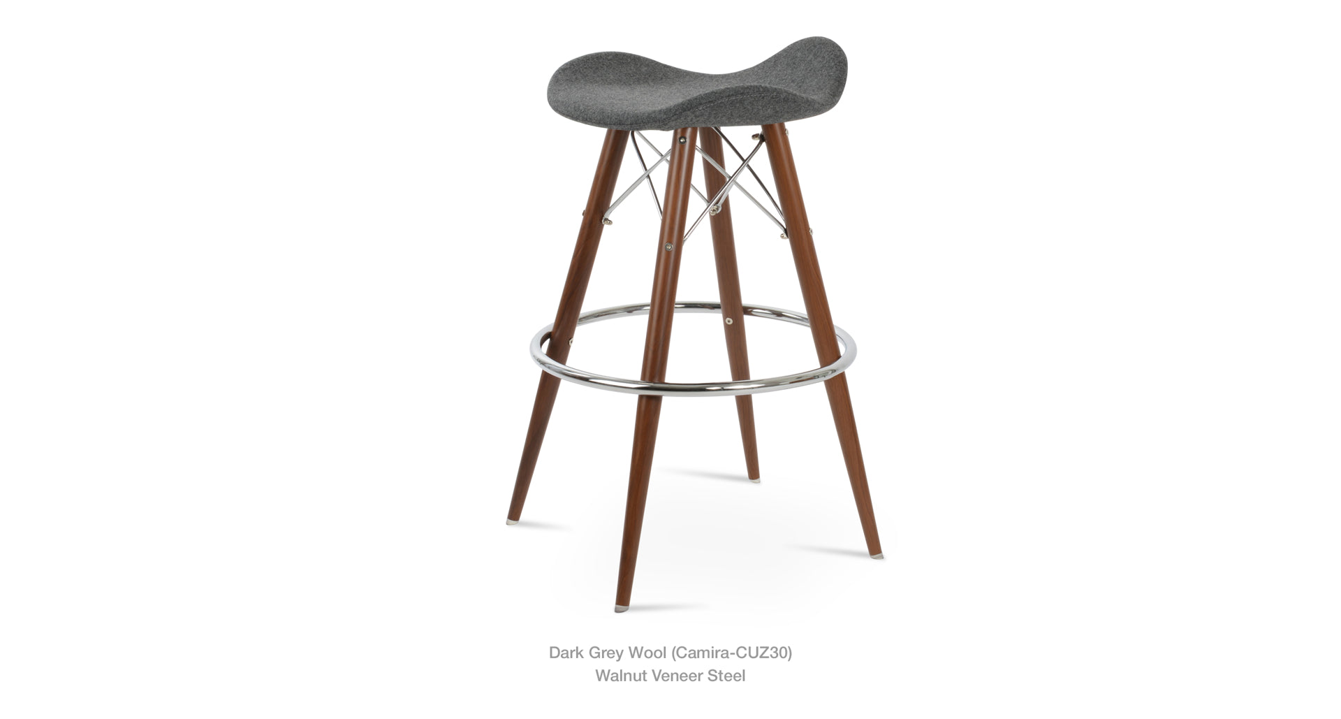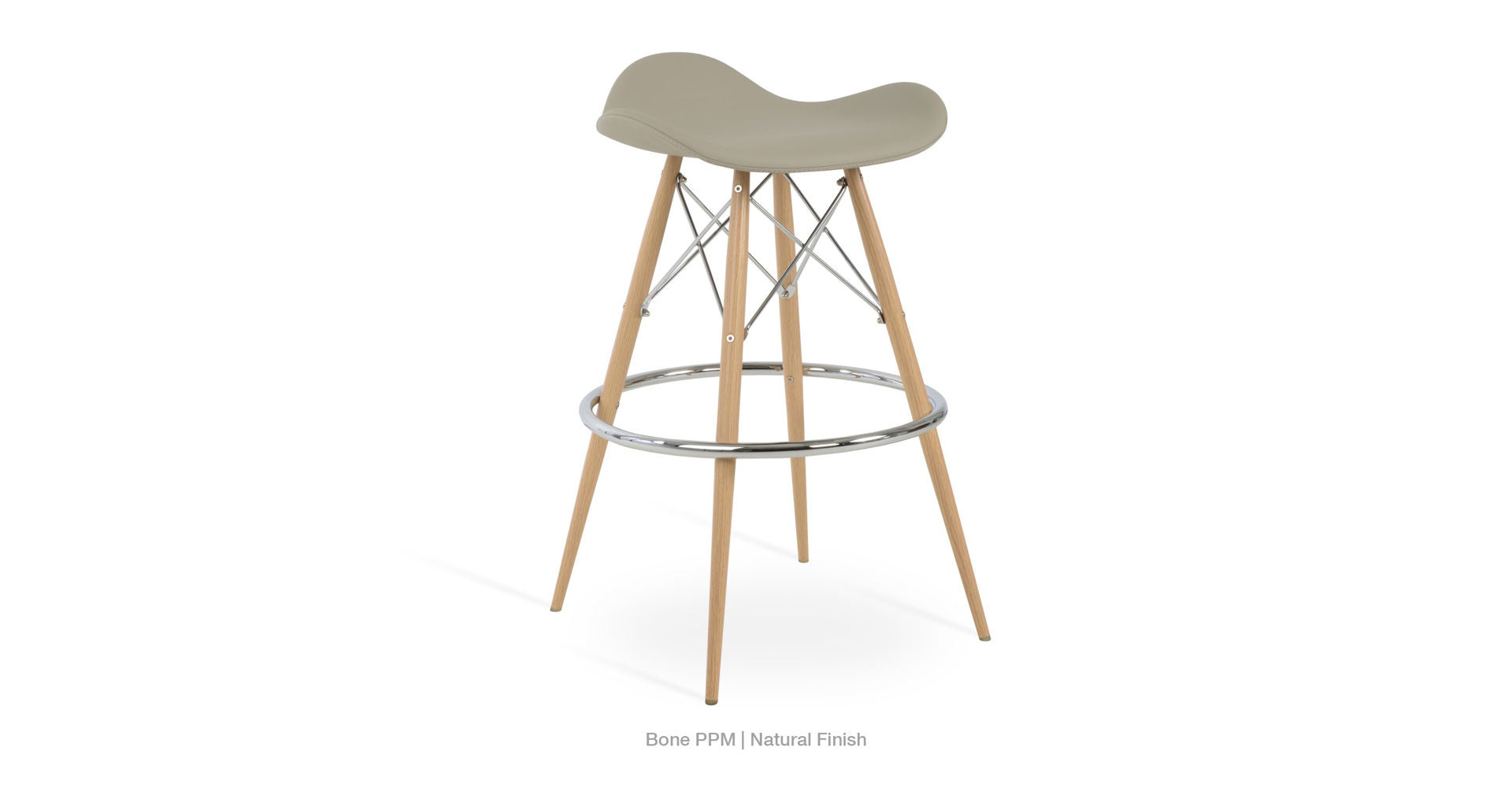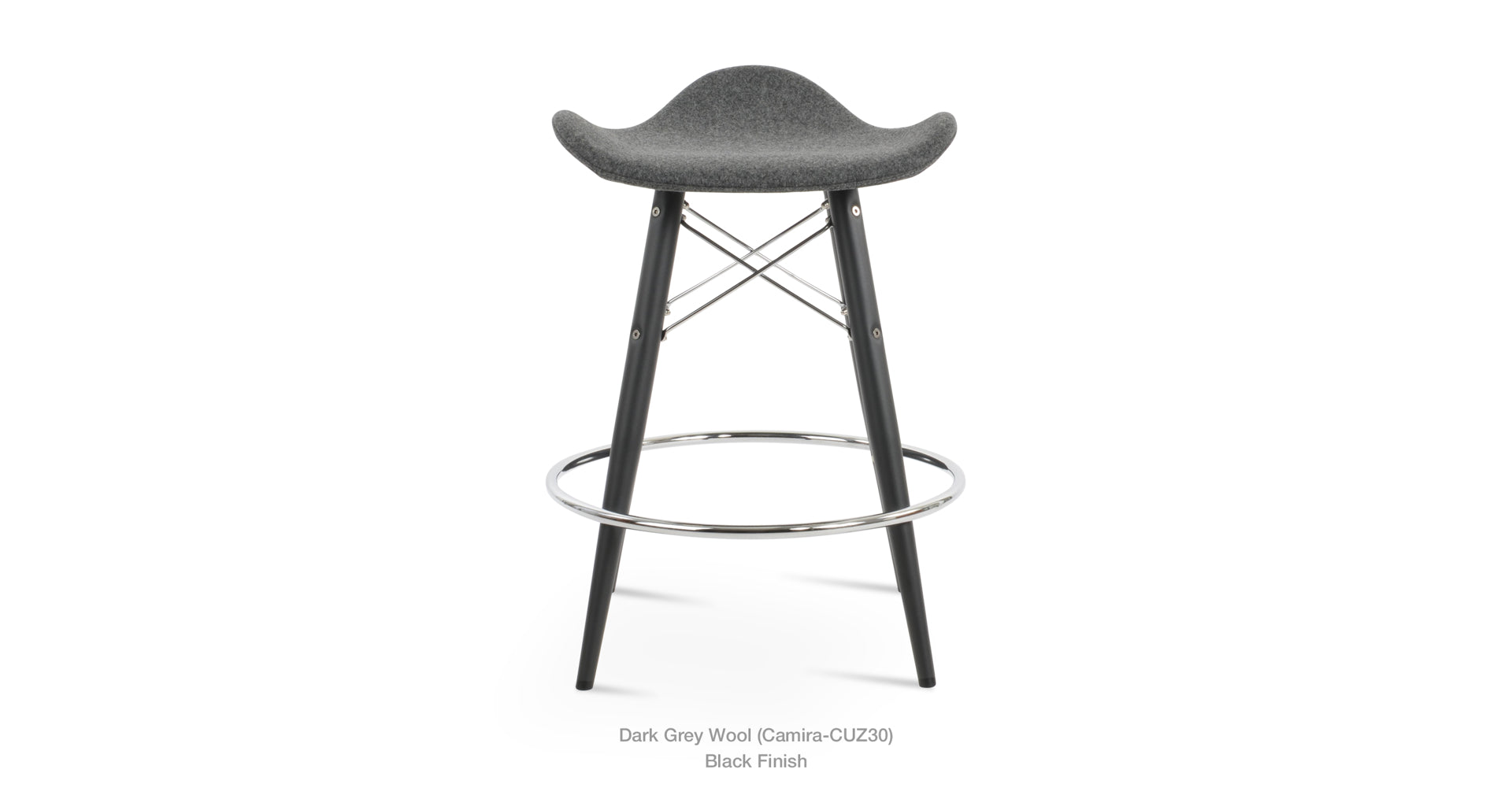 Falcon MW is a unique counter and bar stool with a comfortable plywood upholstered seat and backrest on solid chromed steel MW base. Each leg is tipped with a plastic glide embedded into the metal wire. The stool is suitable for both residential and commercial use.
