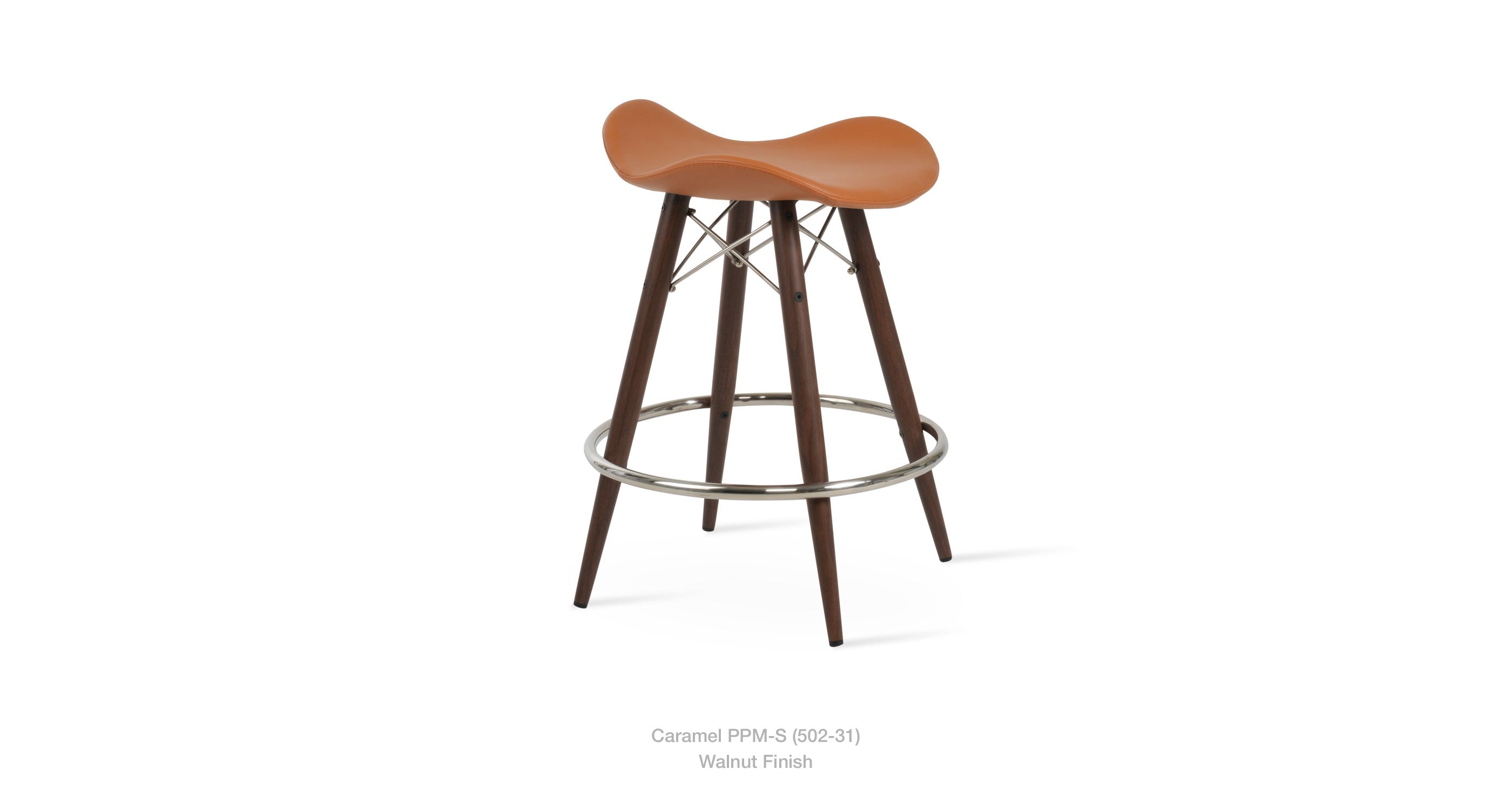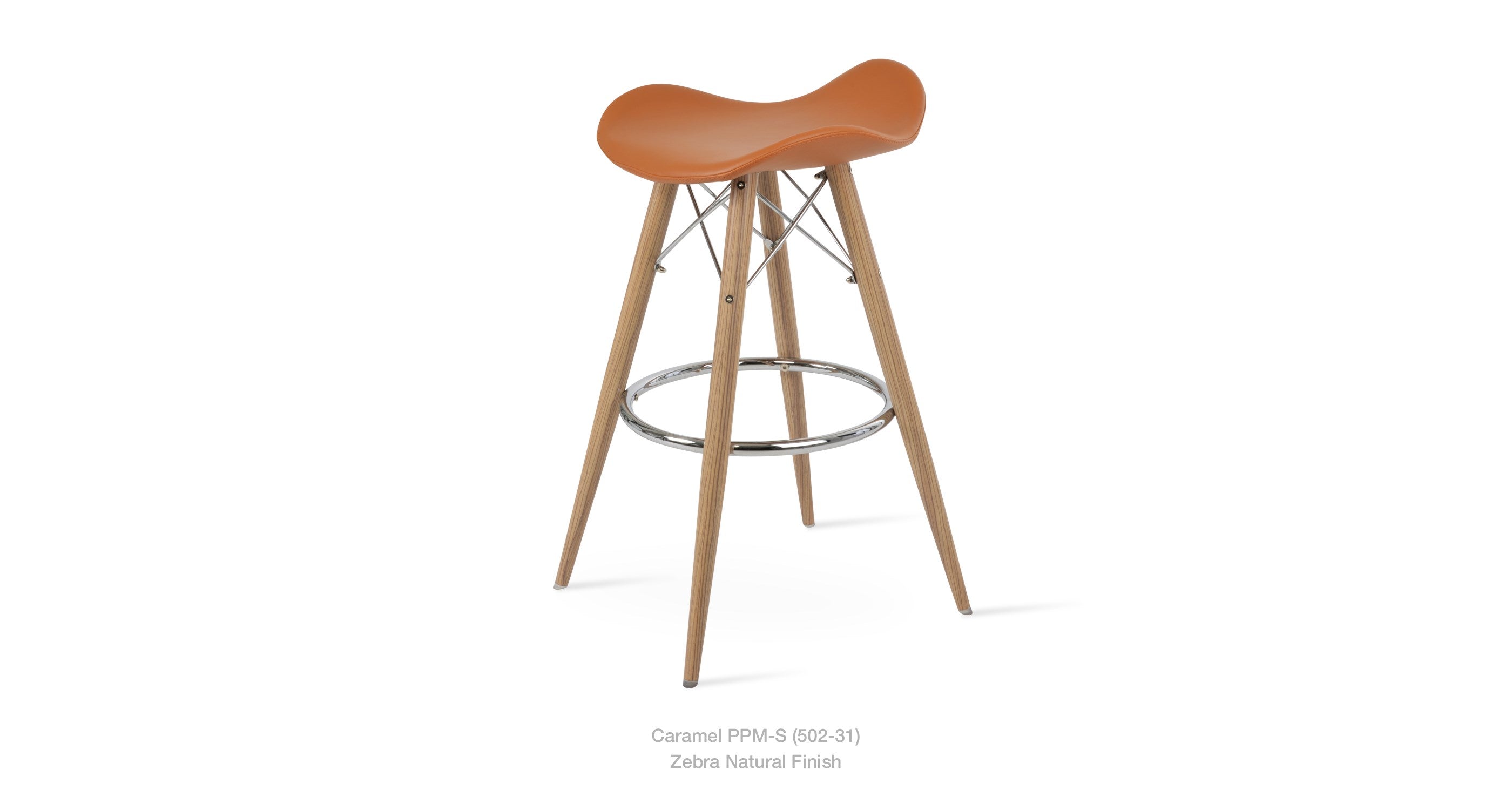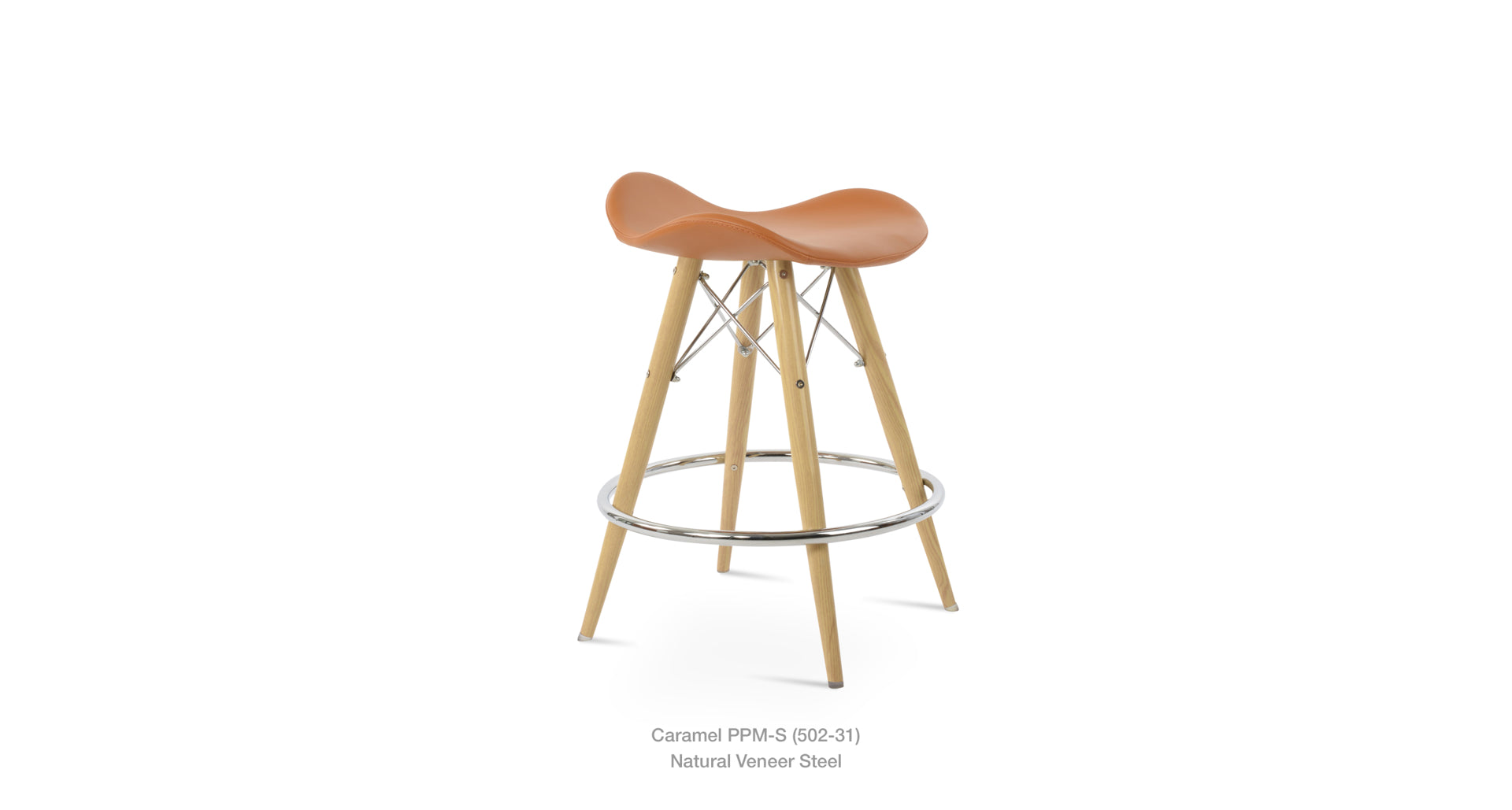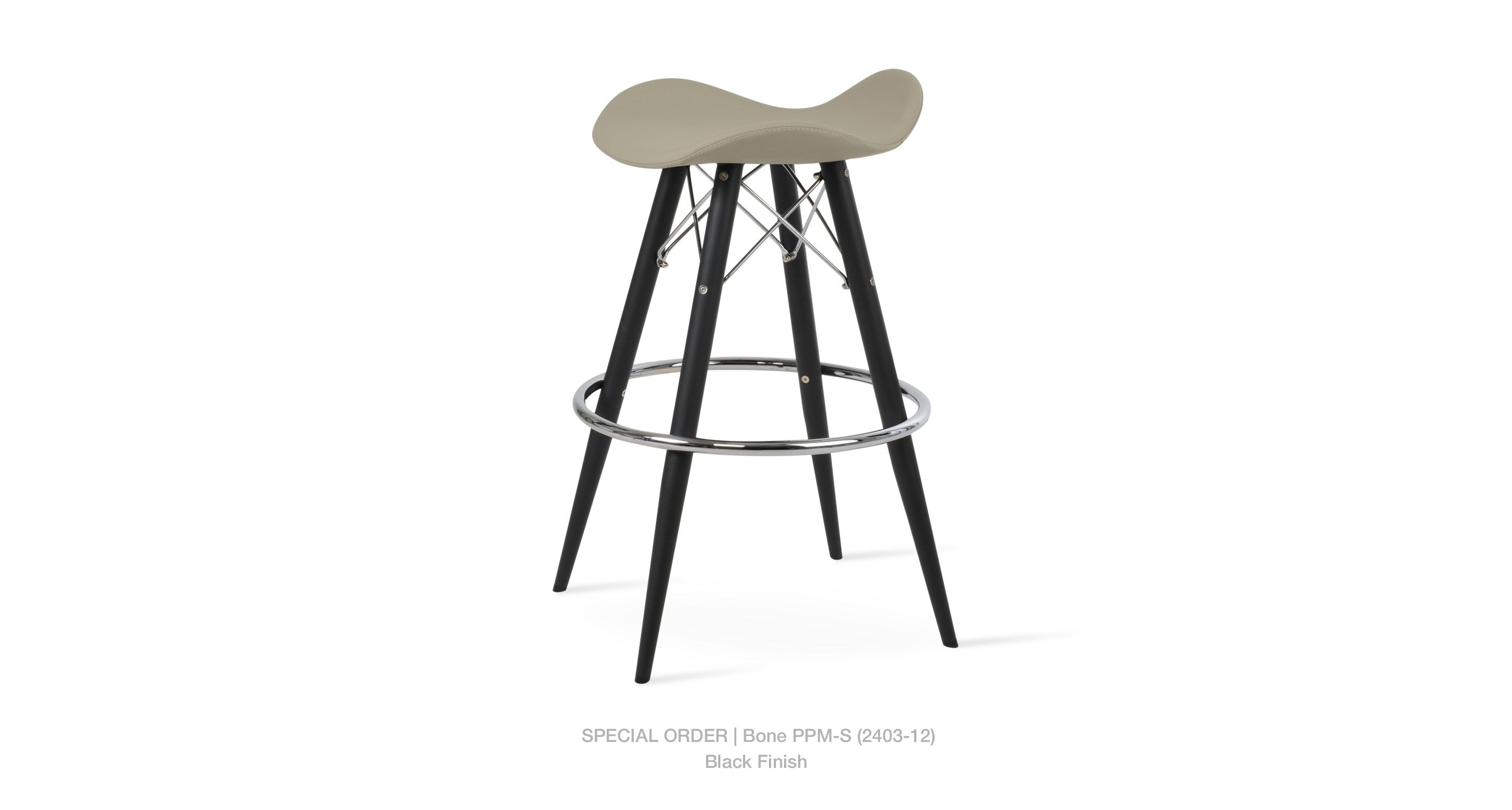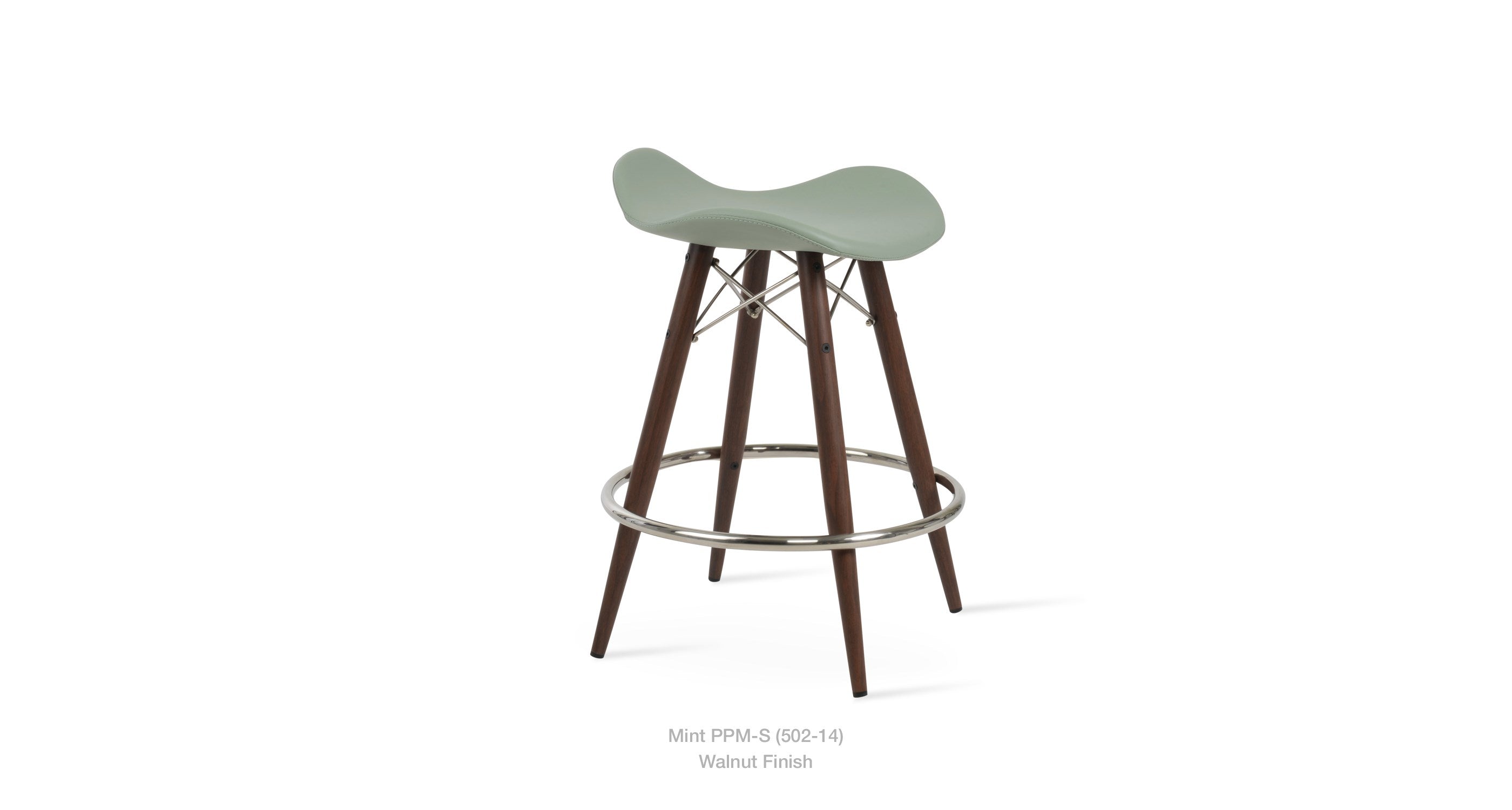 Falcon MW is a unique counter and bar stool with a comfortable plywood upholstered seat and backrest on solid chromed steel MW base. Each leg is tipped with a plastic glide embedded into the metal wire. The stool is suitable for both residential and commercial use.