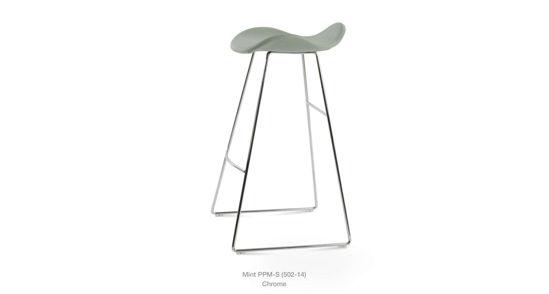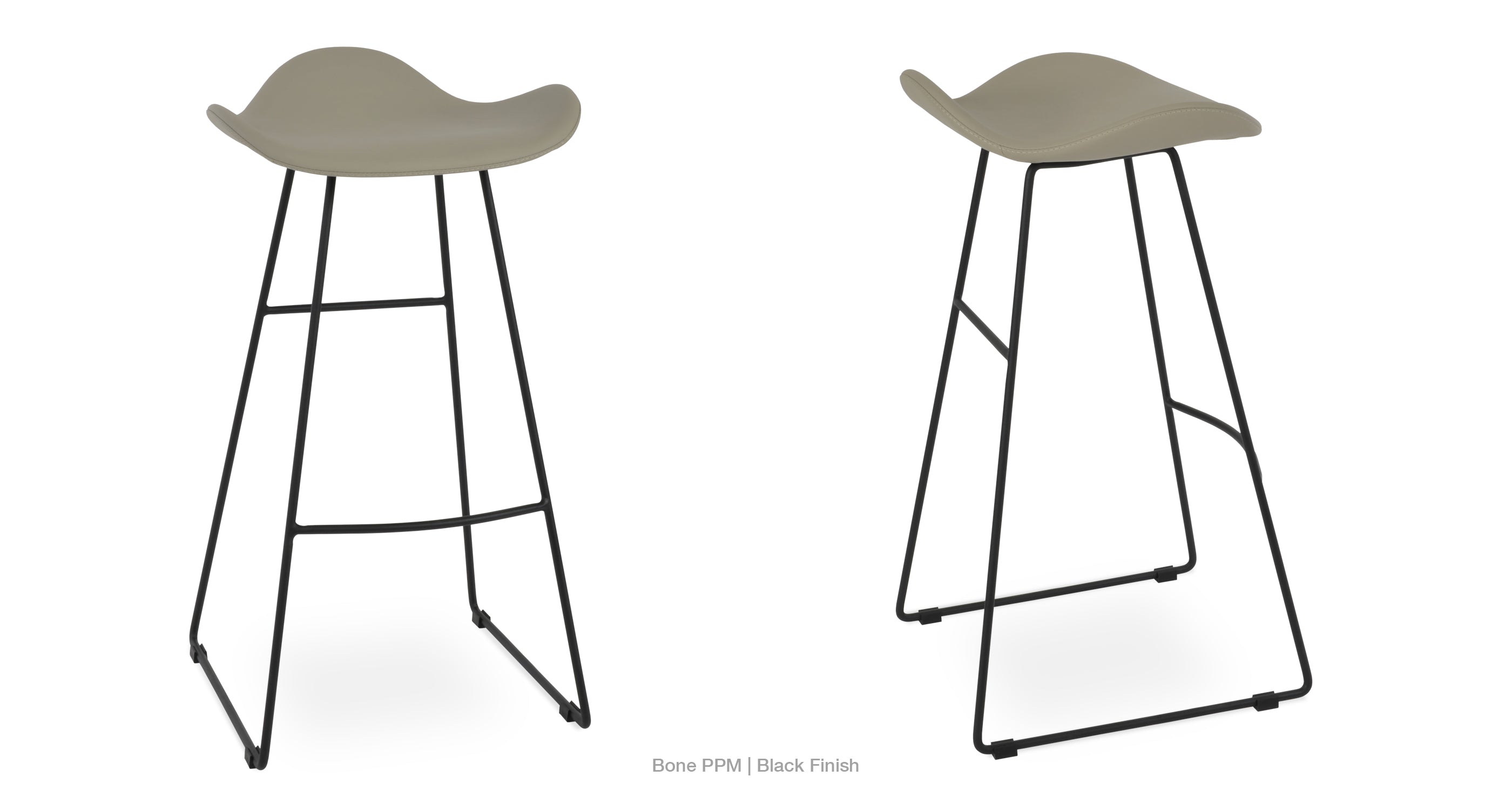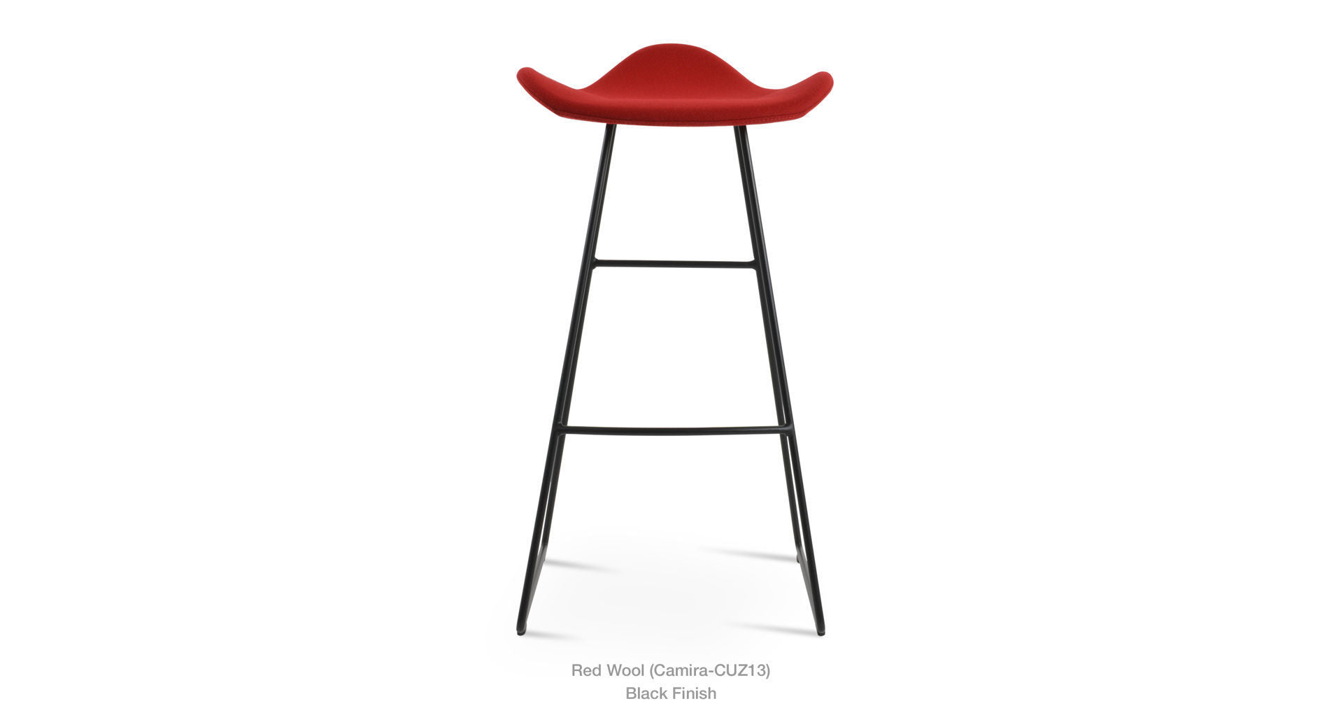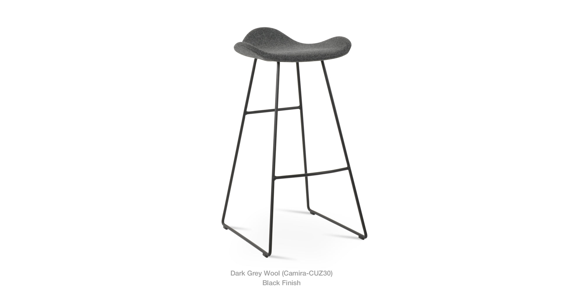 Falcon Wire Stools is a unique counter and bar stool with a comfortable plywood upholstered seat and backrest on solid chromed steel wire base. Each leg is tipped with a plastic glide embedded into the metal wire. The stool is suitable for both residential and commercial use.