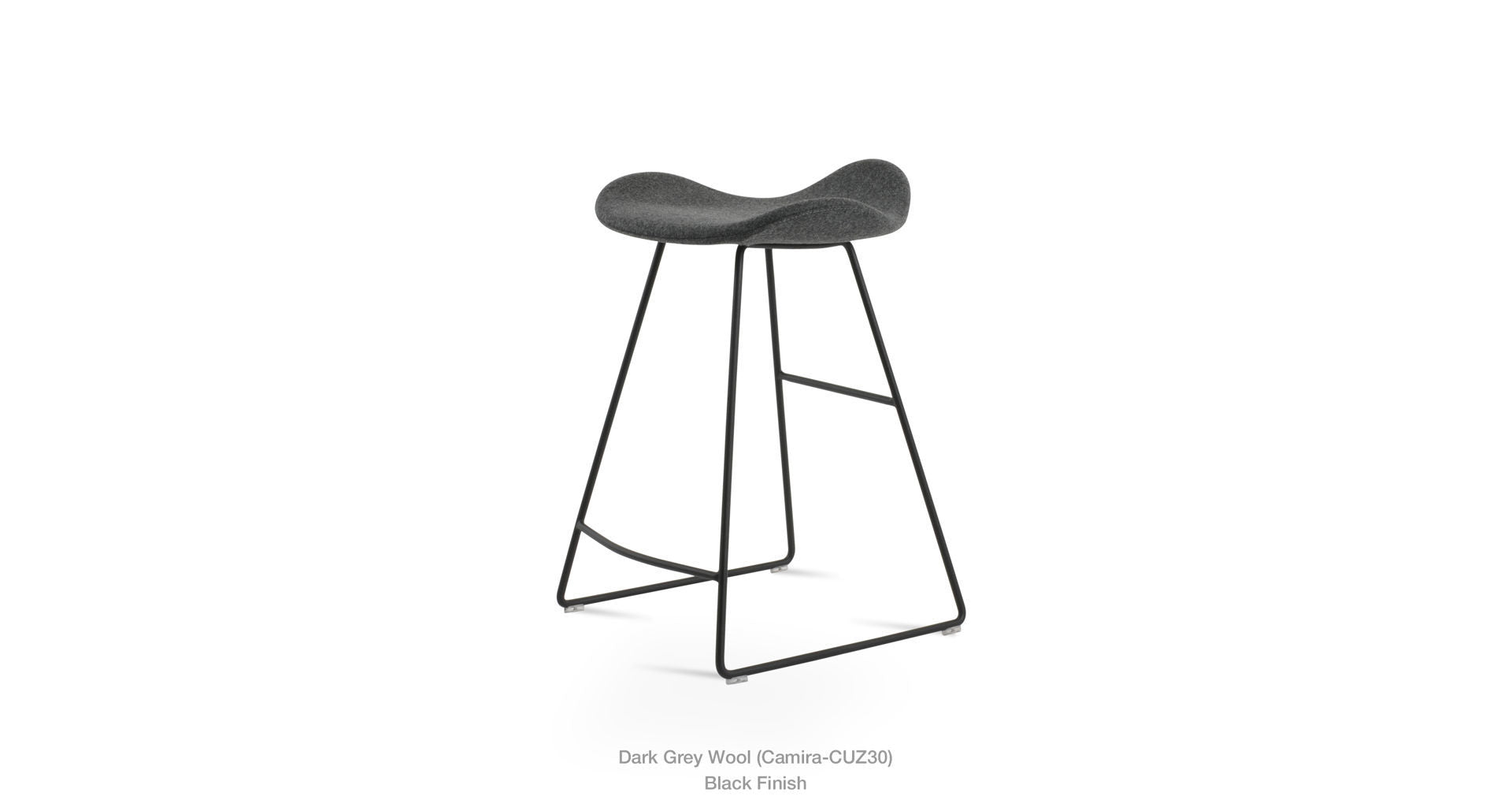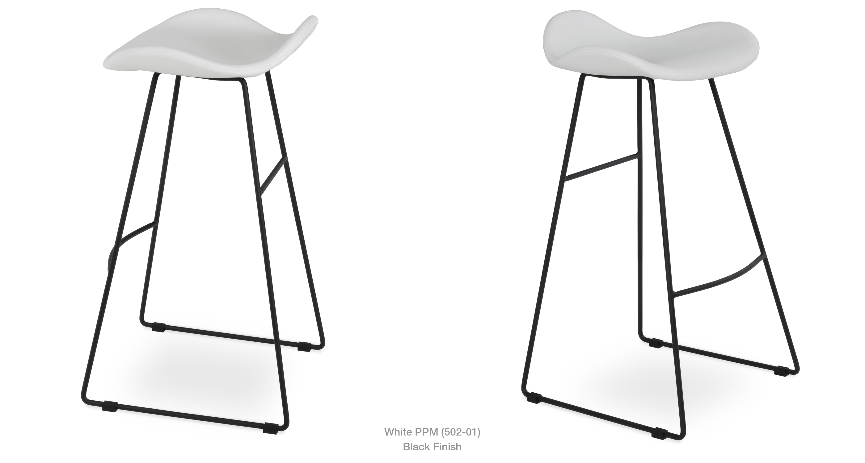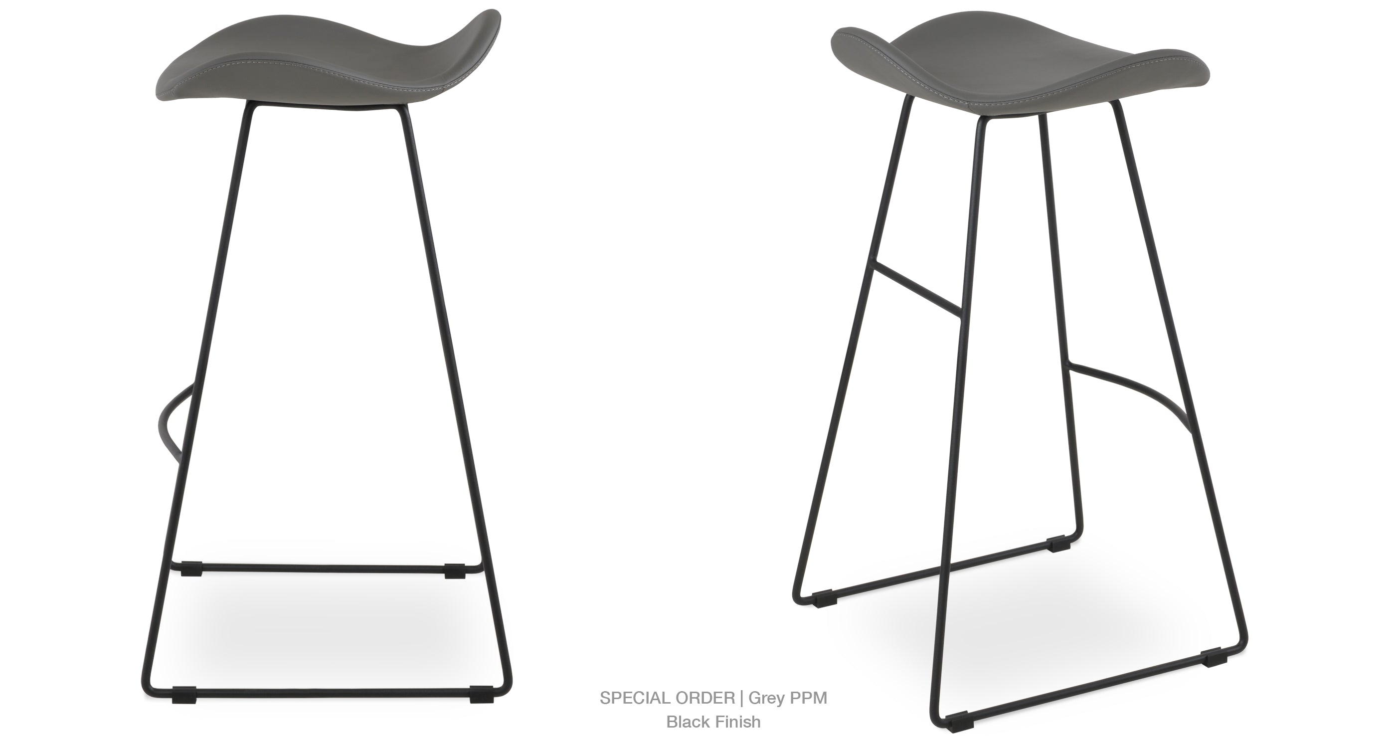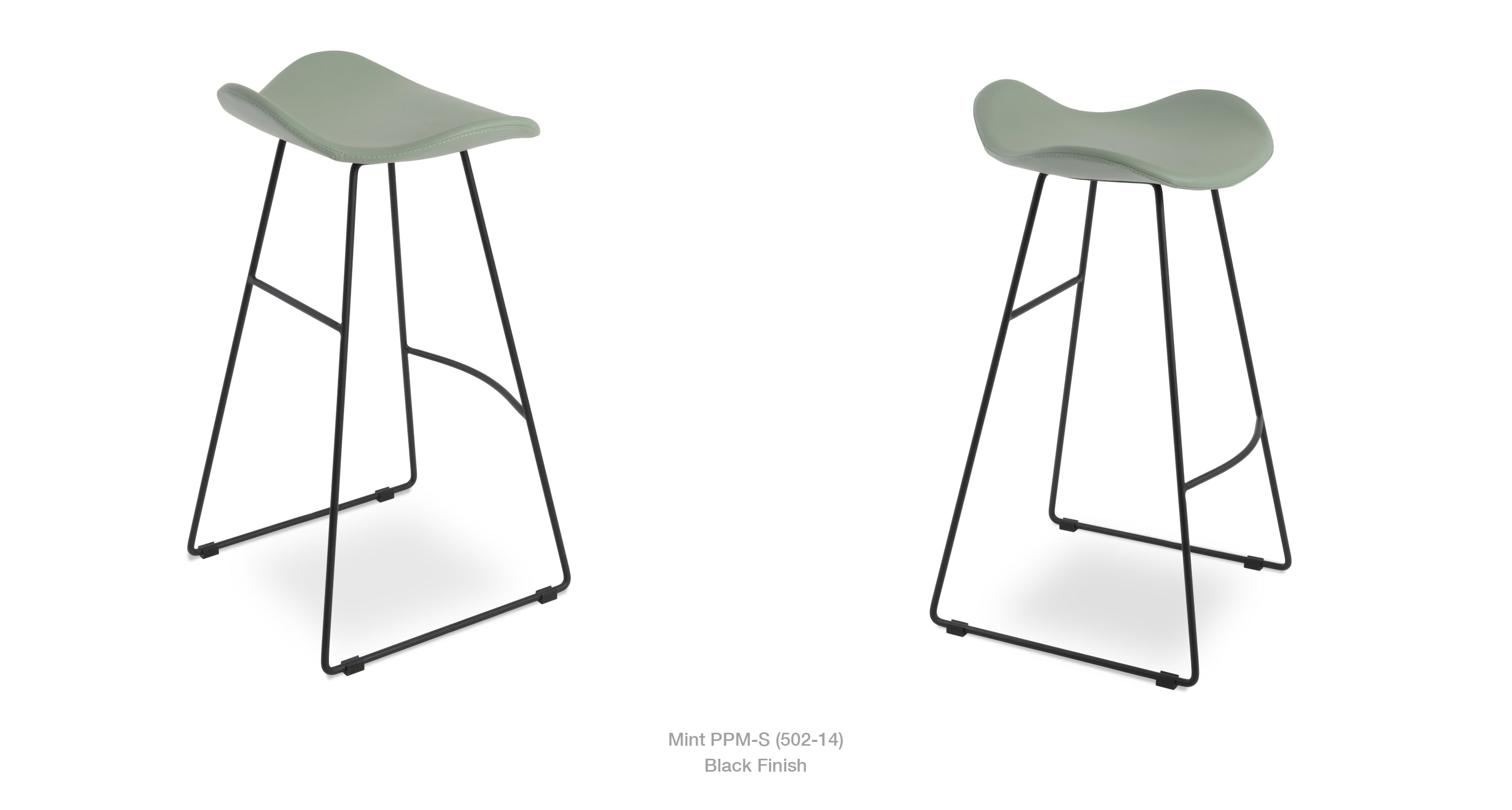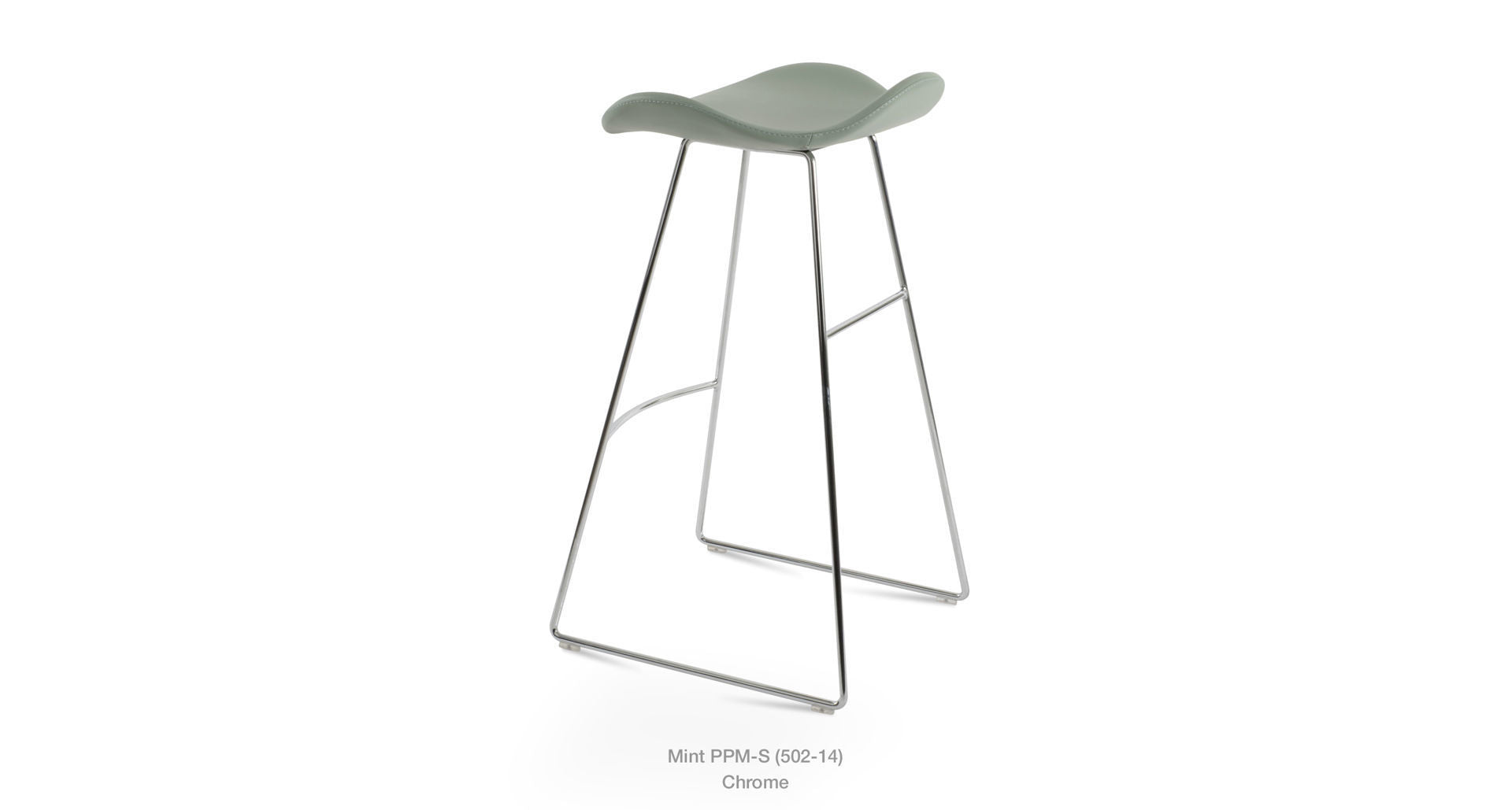 Falcon Wire Stools is a unique counter and bar stool with a comfortable plywood upholstered seat and backrest on solid chromed steel wire base. Each leg is tipped with a plastic glide embedded into the metal wire. The stool is suitable for both residential and commercial use.