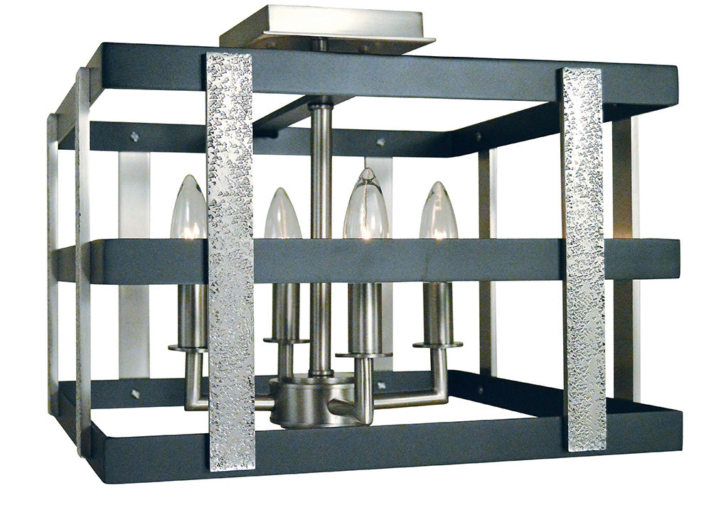 Framburg Montreaux 4 - Light Brushed Nickel with Matte Black Accents Semi-Flush Mount L1031 BN/MBLACK