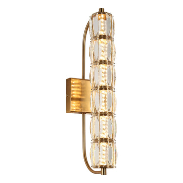 Introducing the Frvabert HA05131, a stunning fusion of classic elegance and modern design. This gold and crystal LED wall sconce is the perfect way to add a touch of glamour and sophistication to any space. With its sleek cylinder silhouette, sparkling crystal accents, and warm, inviting light, this sconce is sure to become a focal point in your home.