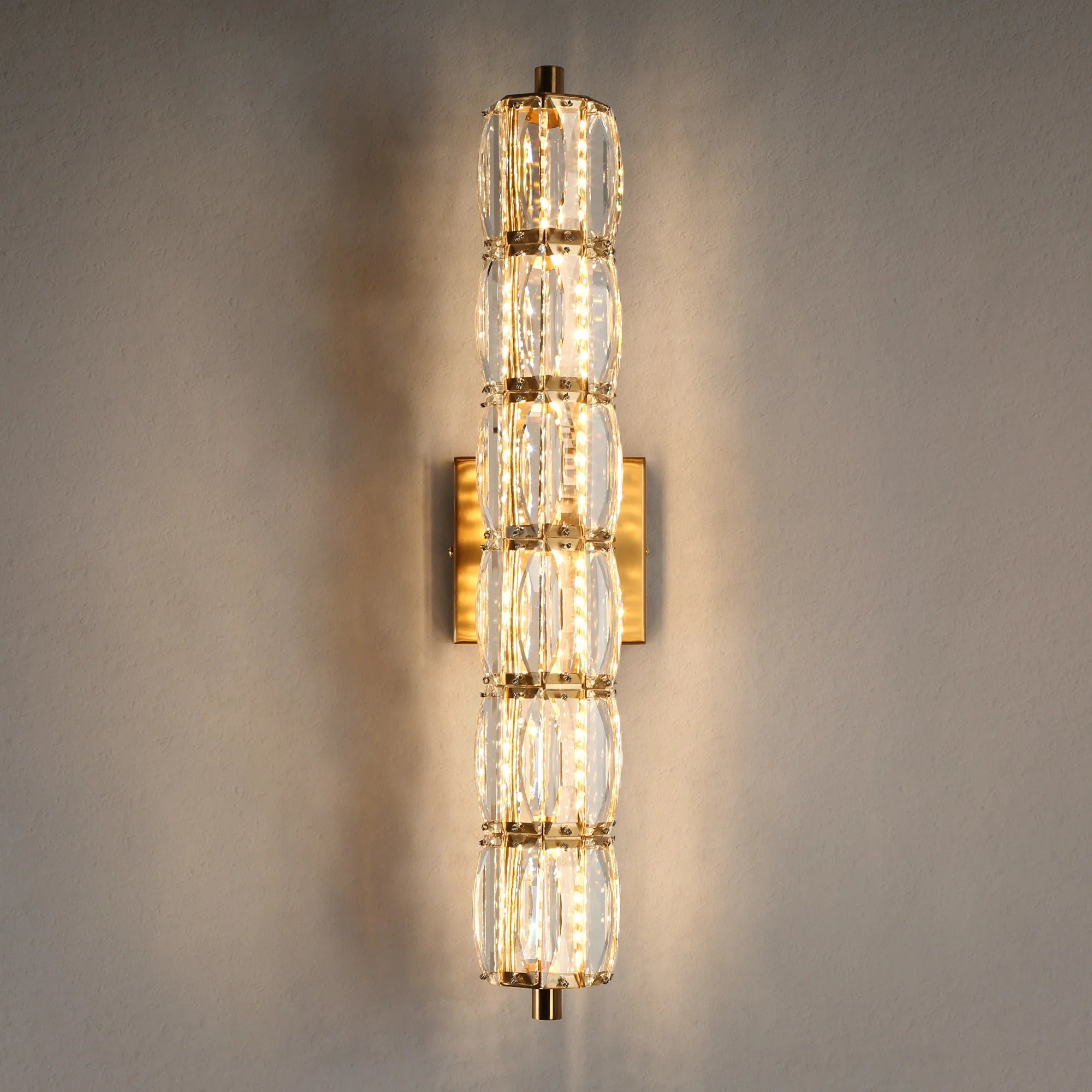Enhance your home with the Frvabert HA05131 Modern Gold and Crystal Cylinder LED Wall Sconce. Order yours today and experience the perfect blend of beauty, functionality, and energy efficiency.