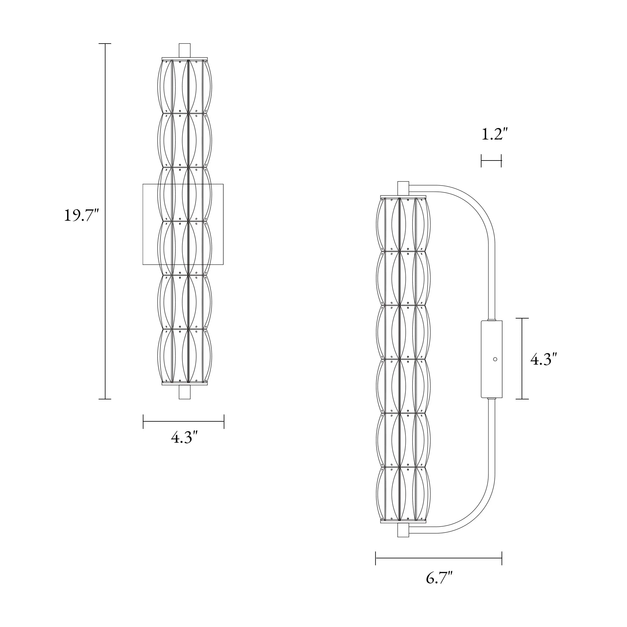 - Dimensions: 4.3"W x 19.7"H x 6.7"D