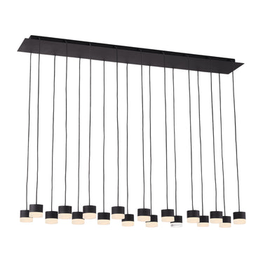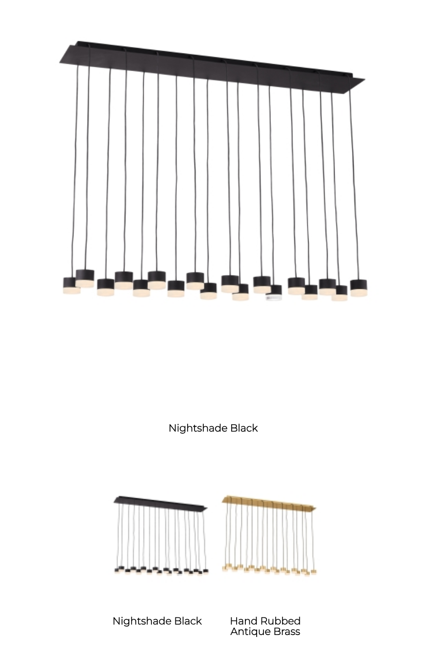 Designed by Sean Lavin for the Trellis collection, this modern 18-light linear chandelier combines cylindrical metal frames with natural crystal alabaster diffusers for warm, ambient lighting. Perfect for dining rooms, kitchen islands, or high ceilings in open living spaces.