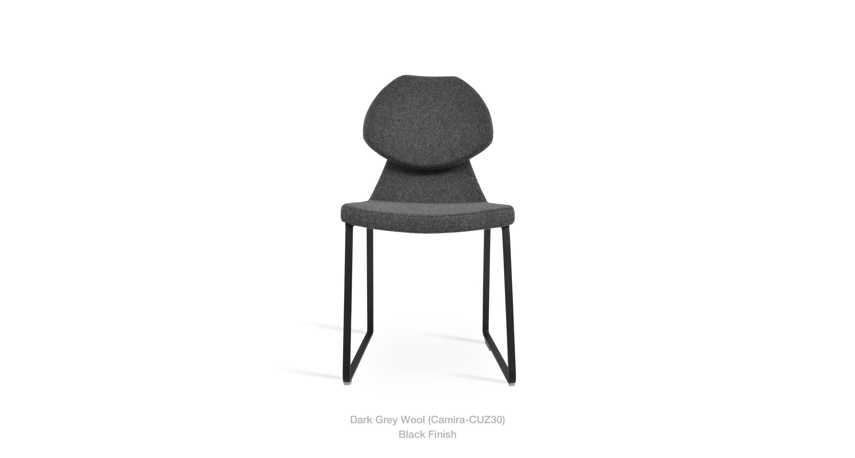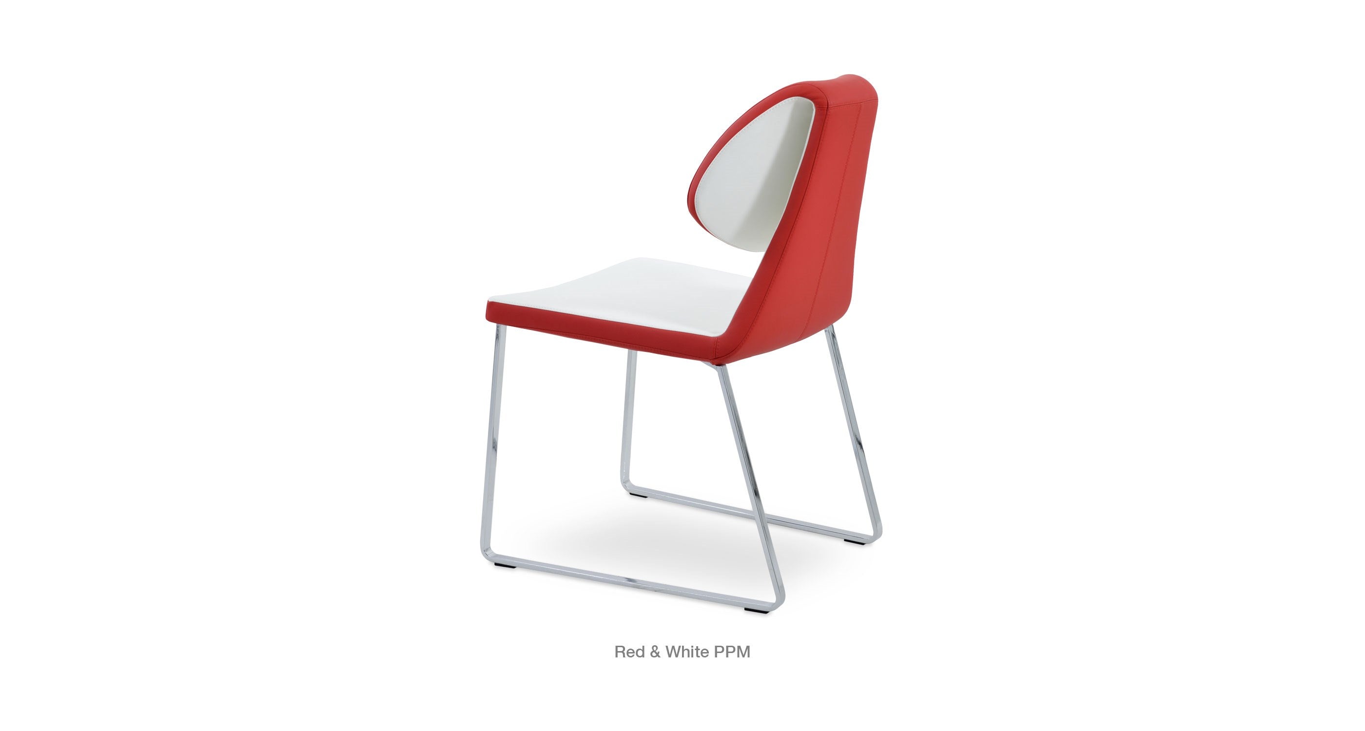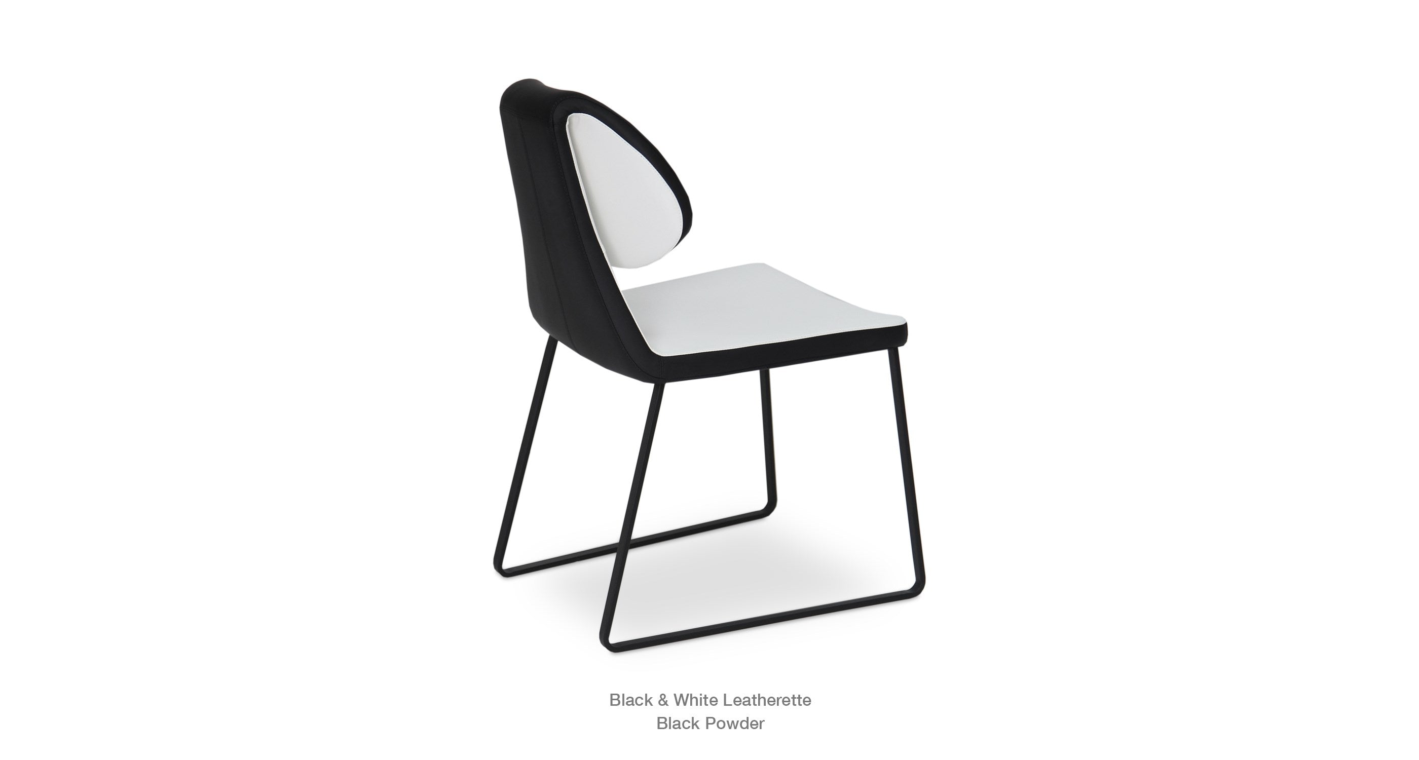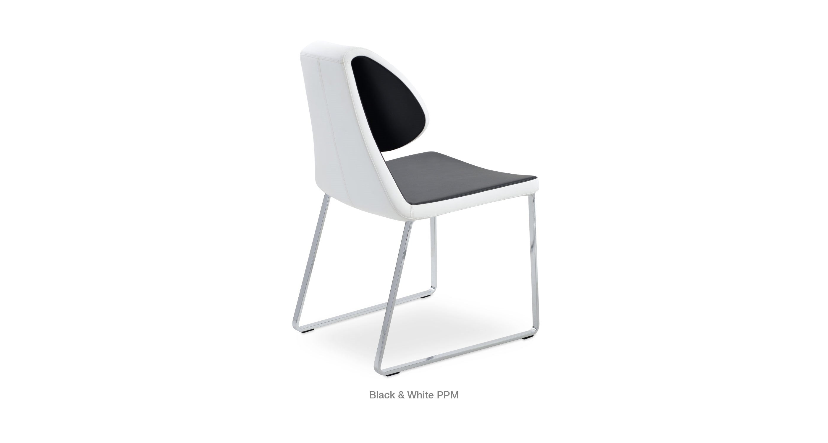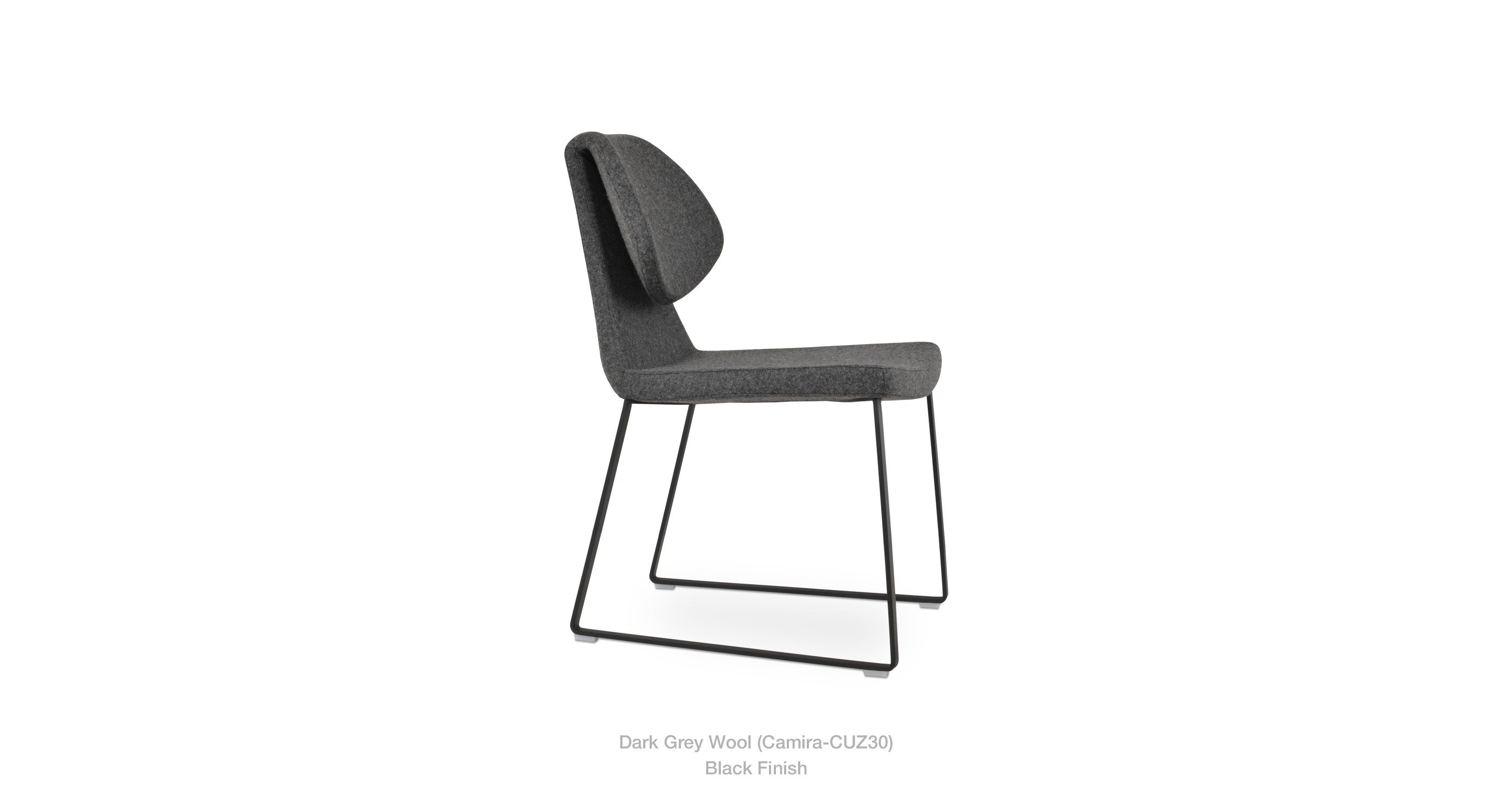 Gakko is a distinctive dining chair with a comfortable upholstered seat and backrest on a sled steel legs with plastic caps embedded inside the base. The folded backrest gives chair extra comfort and futuristic look. Gakko Seat is built on solid birch wood frame. Gakko seat is upholstered with a removable zipper and velcro enclosed top-grain leather, PPM or wool fabric slip cover. Gakko chair may be upholstered with various of other colors as a special order with a minimum of quantity required. The chair is suitable for both residential and commercial use.