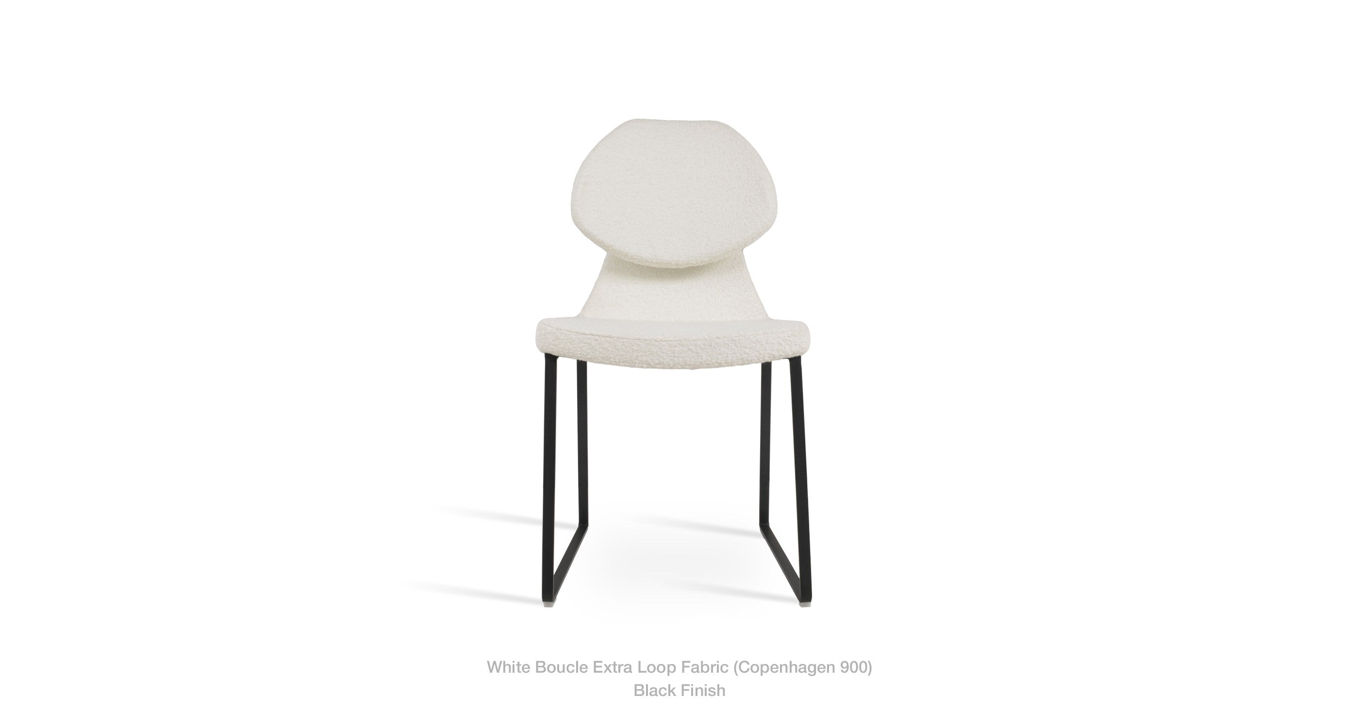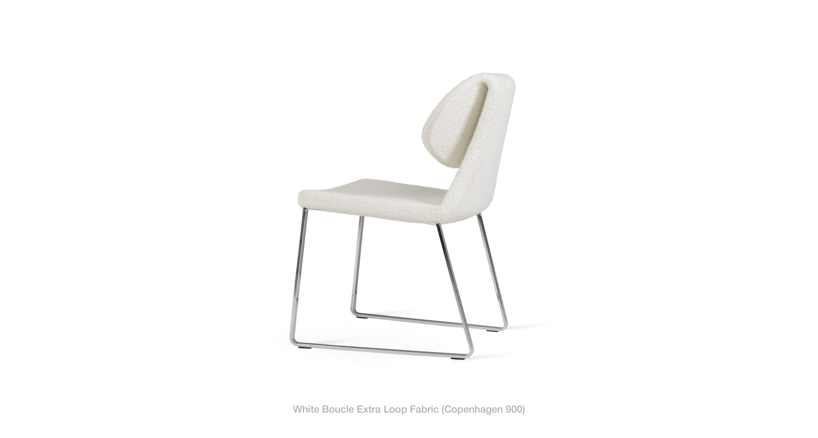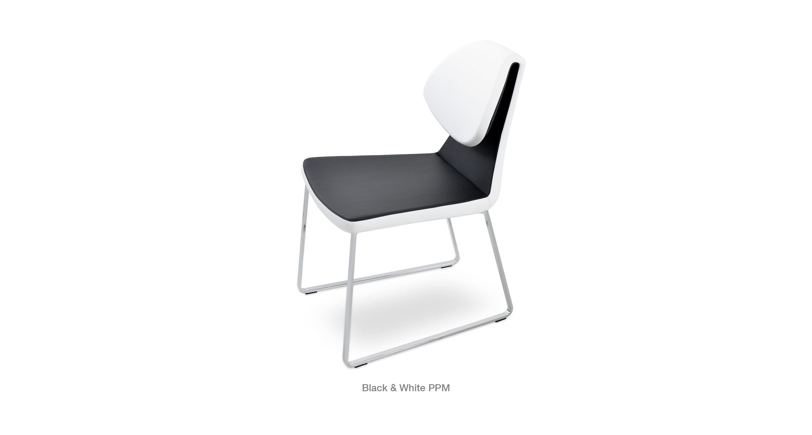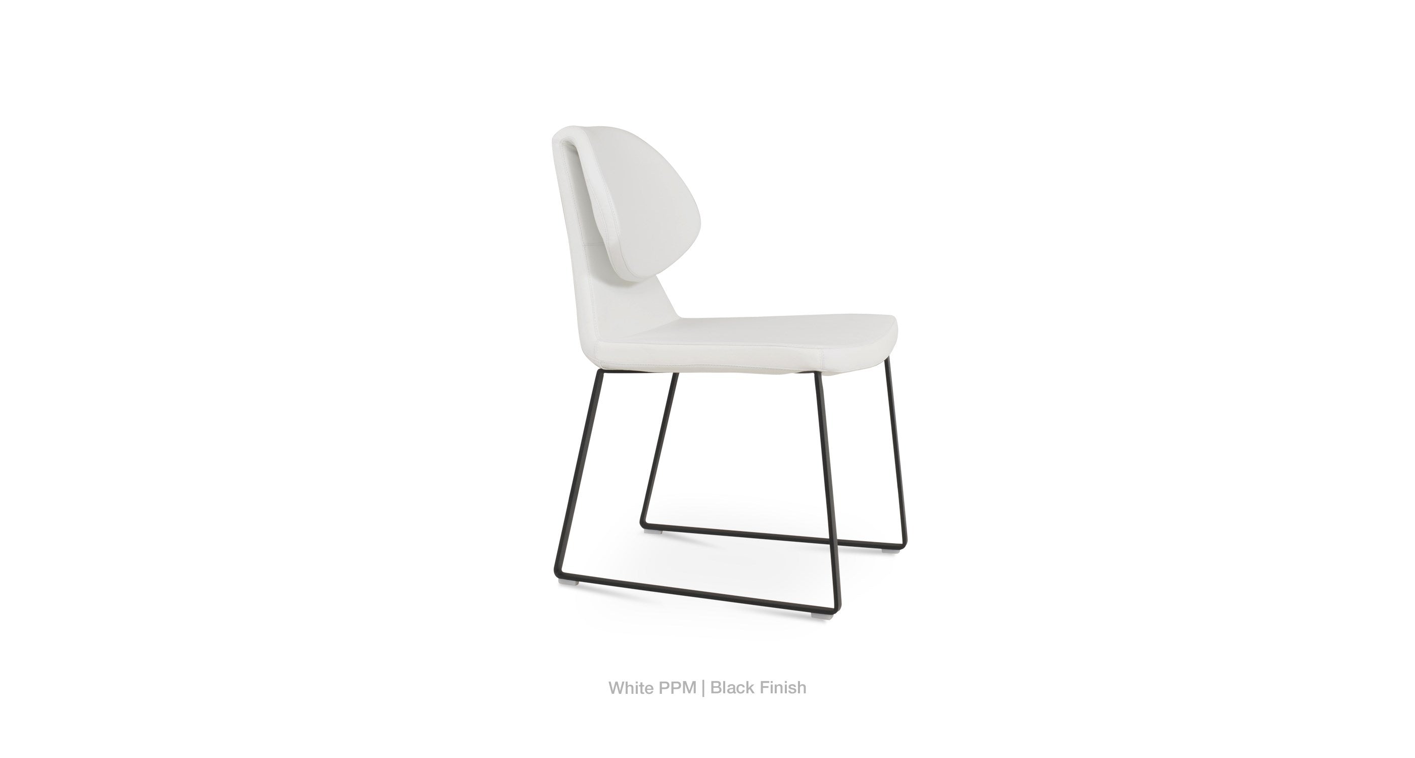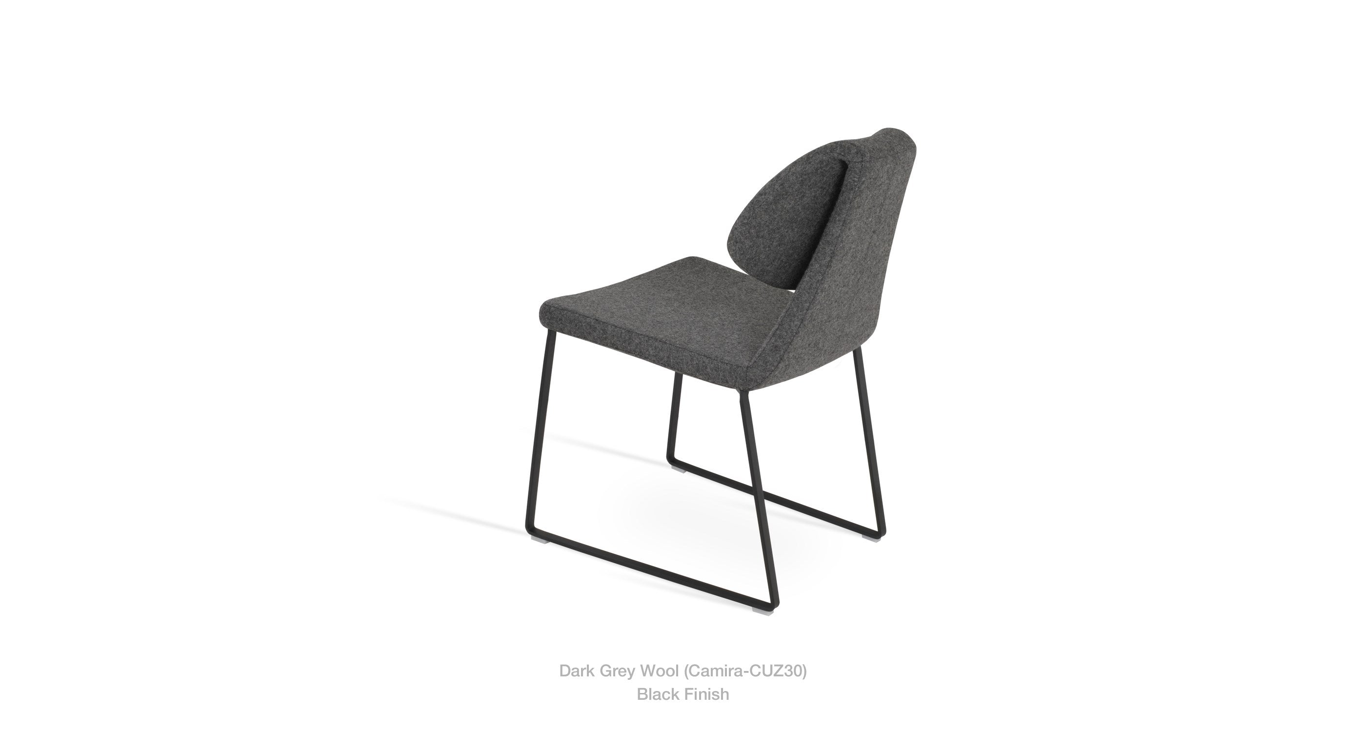 Gakko is a distinctive dining chair with a comfortable upholstered seat and backrest on a sled steel legs with plastic caps embedded inside the base. The folded backrest gives chair extra comfort and futuristic look. Gakko Seat is built on solid birch wood frame. Gakko seat is upholstered with a removable zipper and velcro enclosed top-grain leather, PPM or wool fabric slip cover. Gakko chair may be upholstered with various of other colors as a special order with a minimum of quantity required. The chair is suitable for both residential and commercial use.