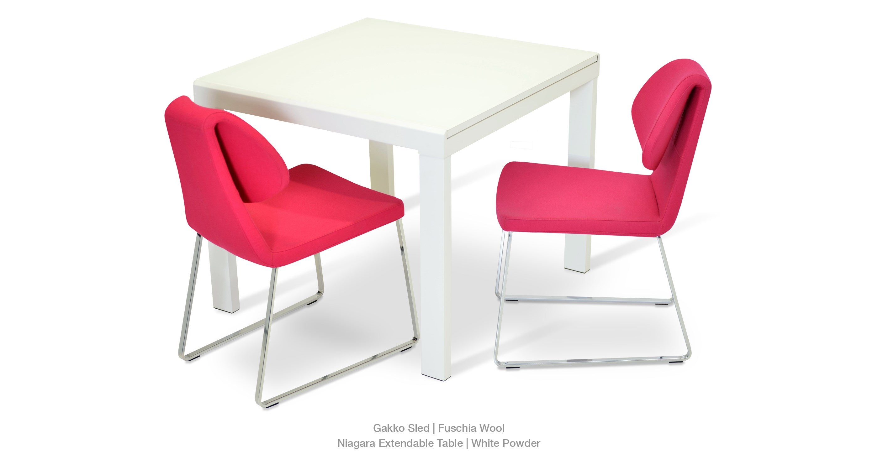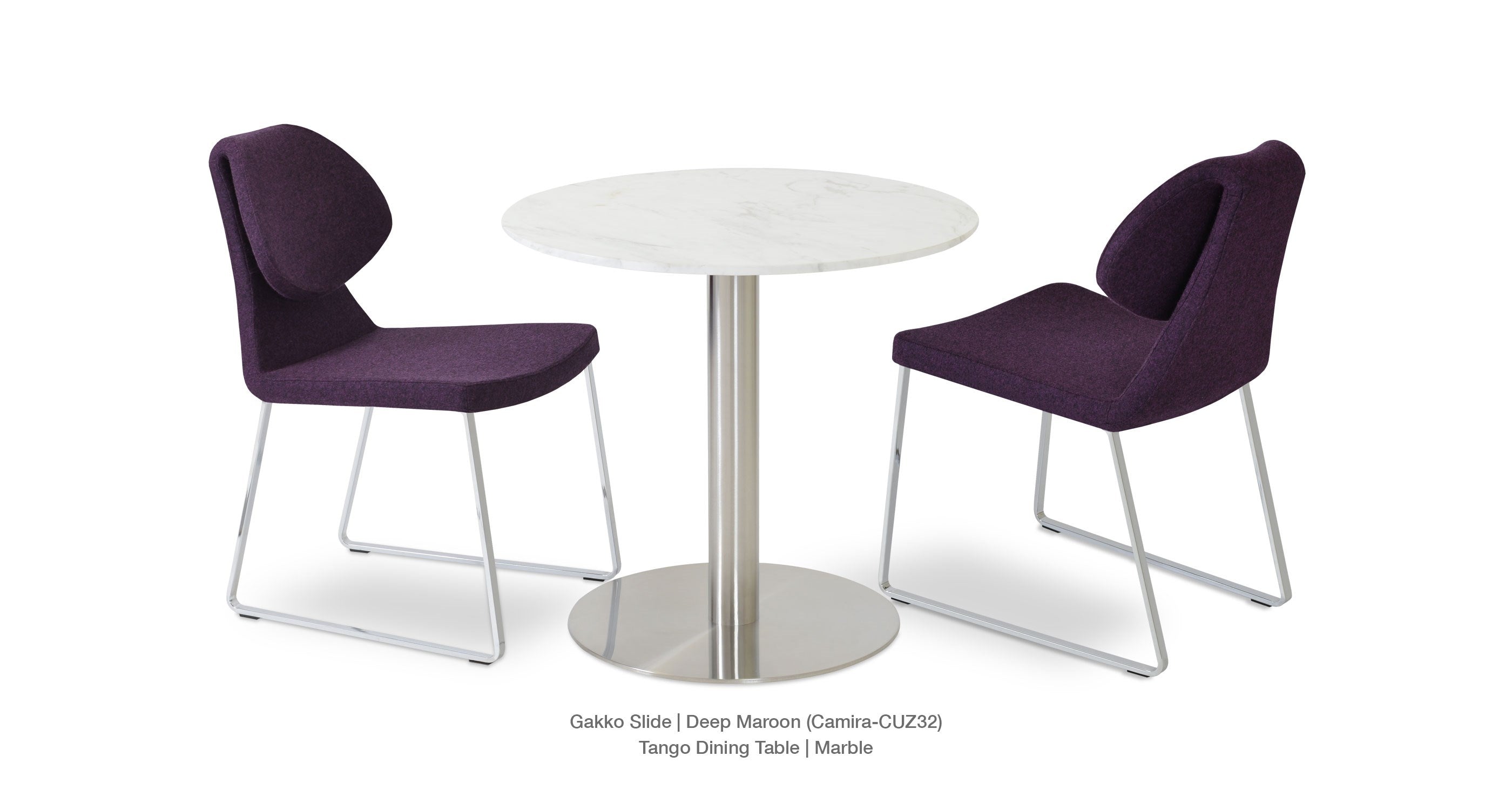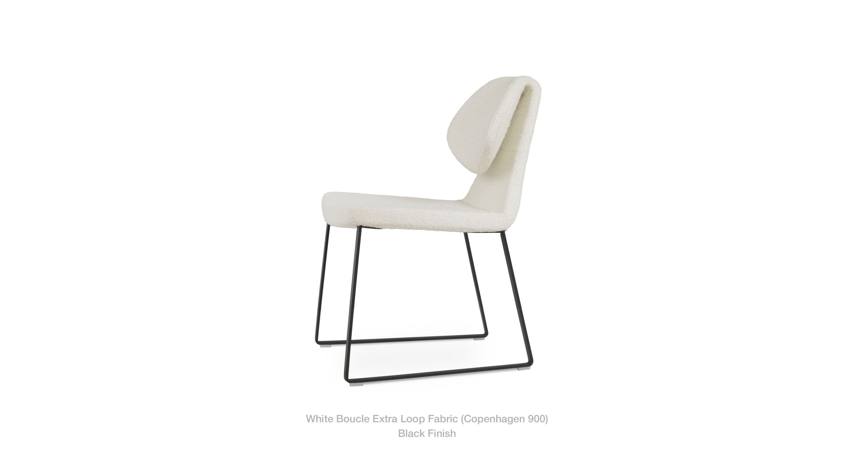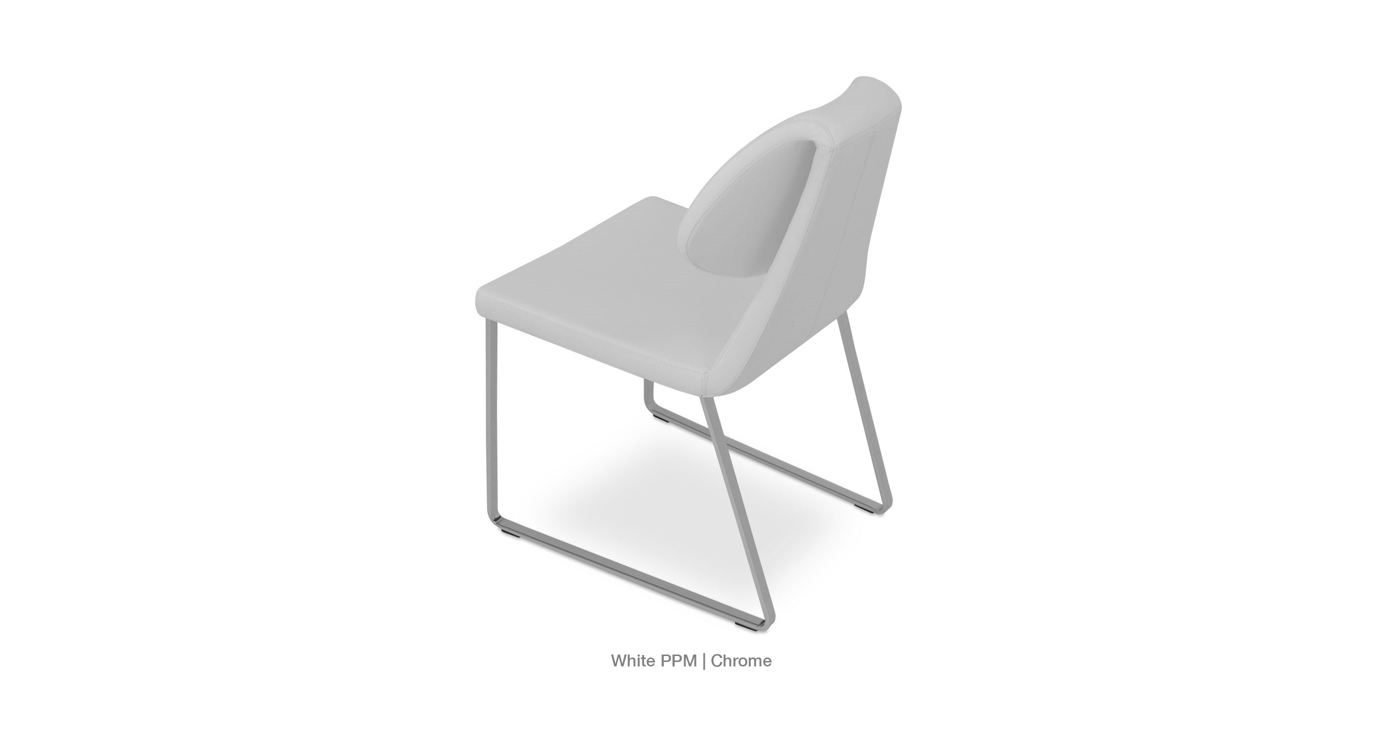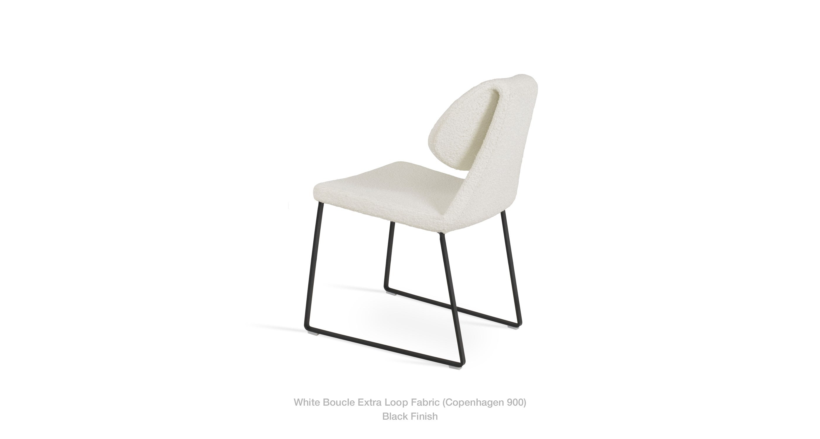 Gakko is a distinctive dining chair with a comfortable upholstered seat and backrest on a sled steel legs with plastic caps embedded inside the base. The folded backrest gives chair extra comfort and futuristic look. Gakko Seat is built on solid birch wood frame. Gakko seat is upholstered with a removable zipper and velcro enclosed top-grain leather, PPM or wool fabric slip cover. Gakko chair may be upholstered with various of other colors as a special order with a minimum of quantity required. The chair is suitable for both residential and commercial use.