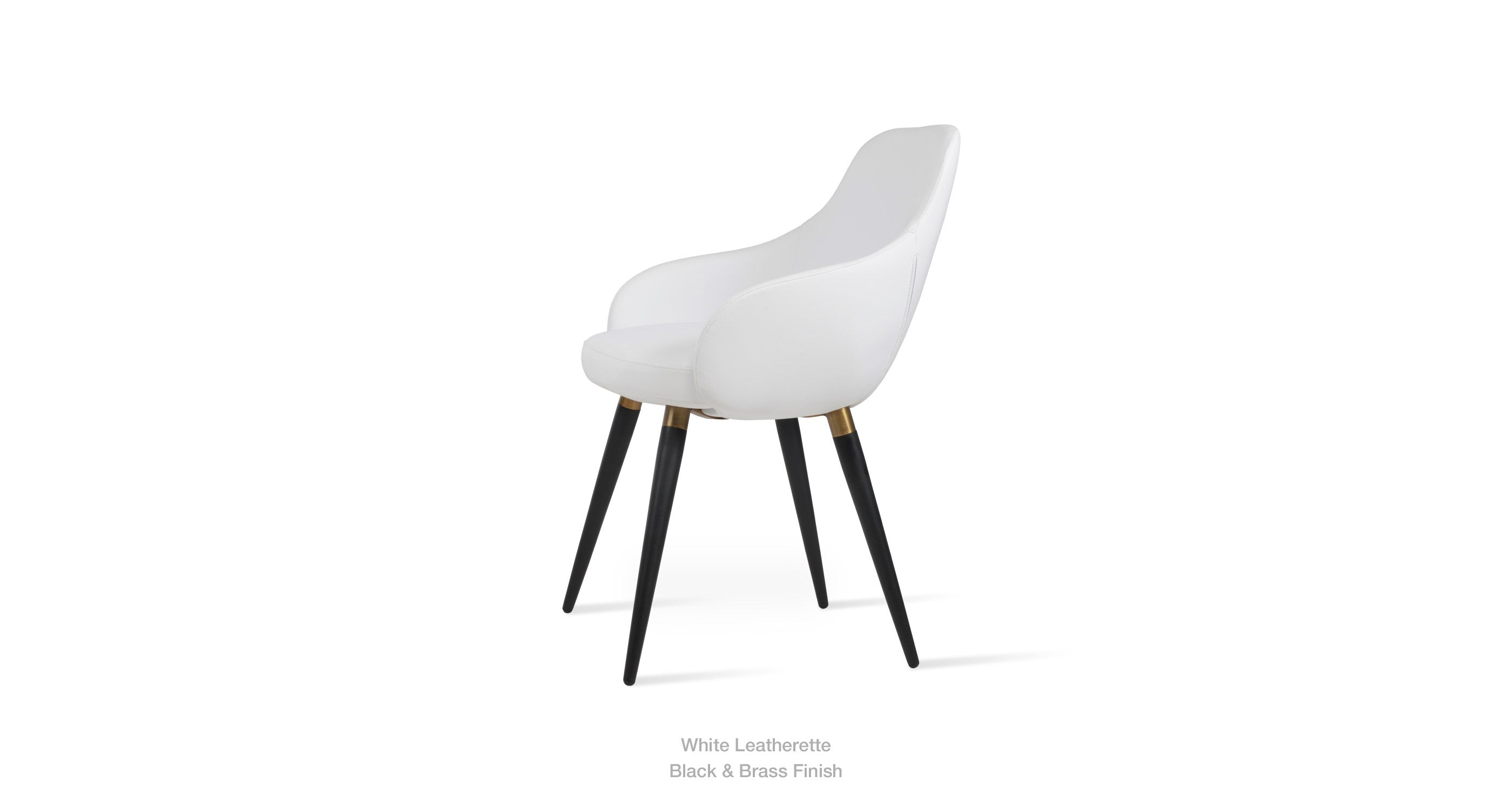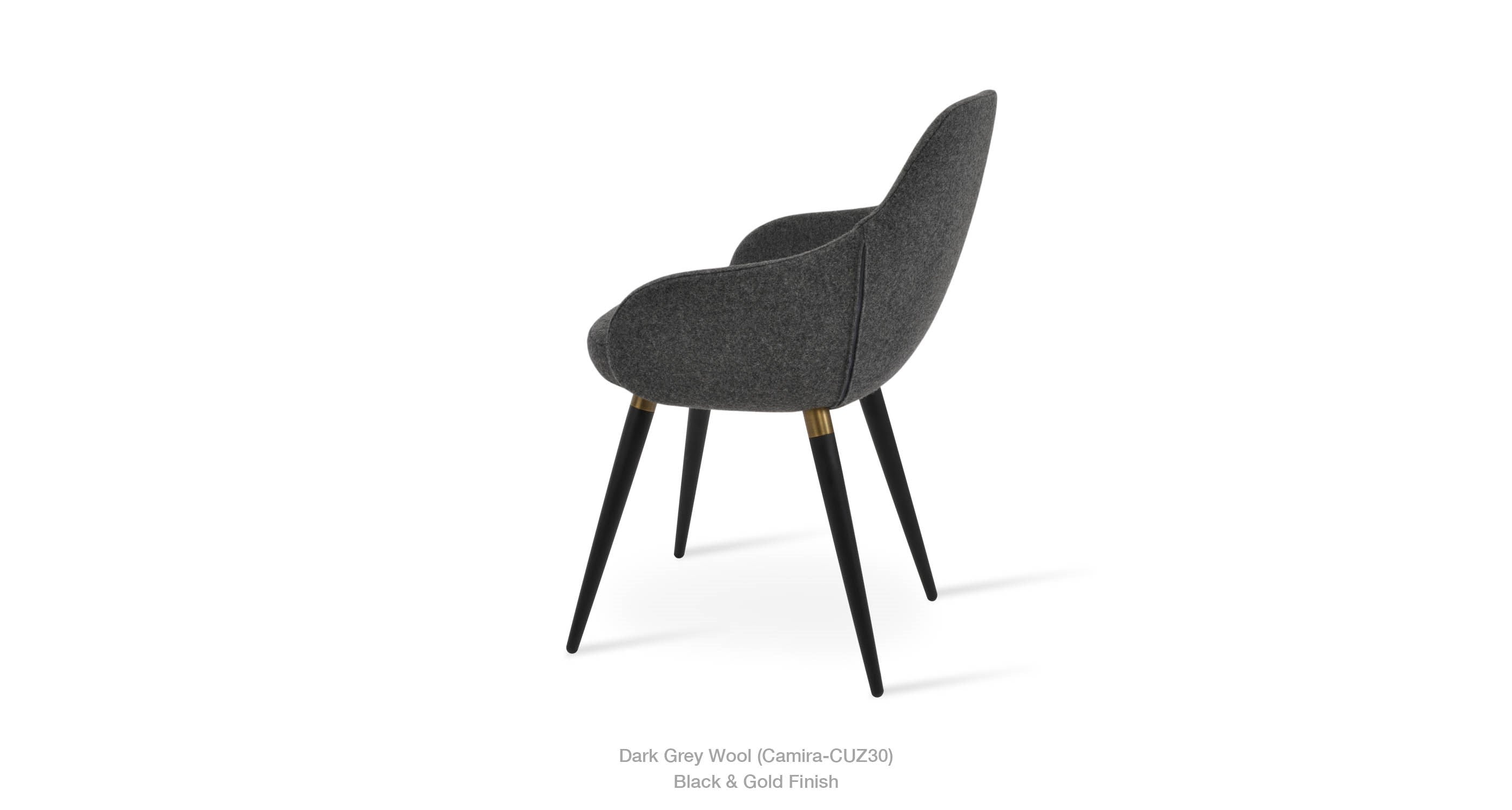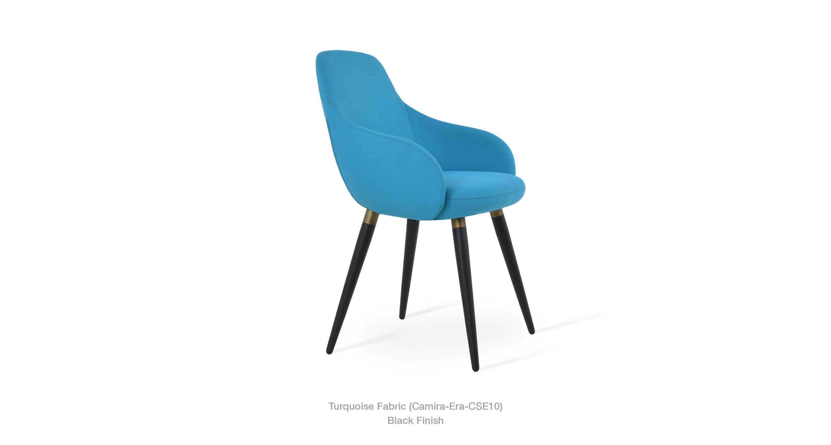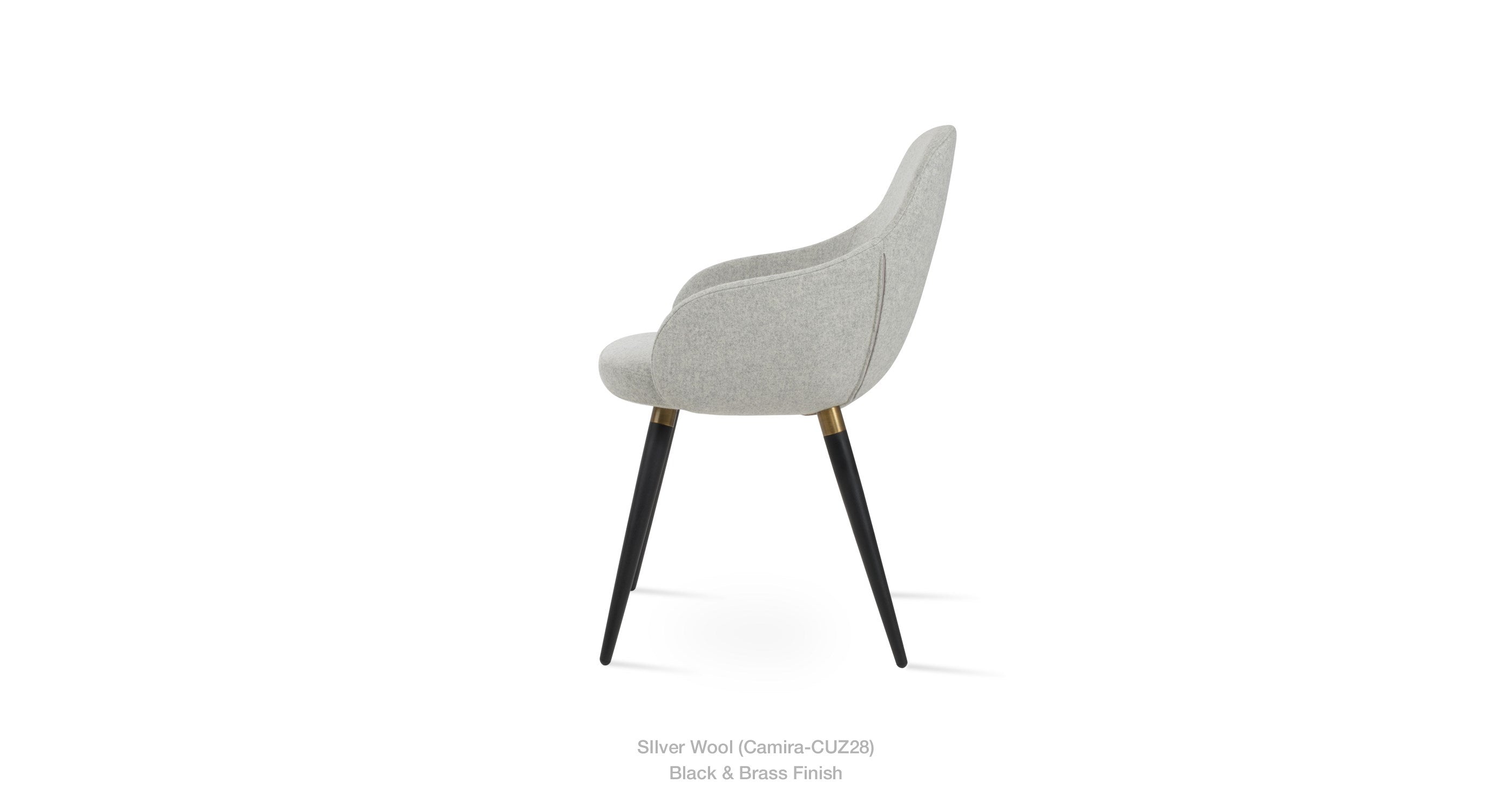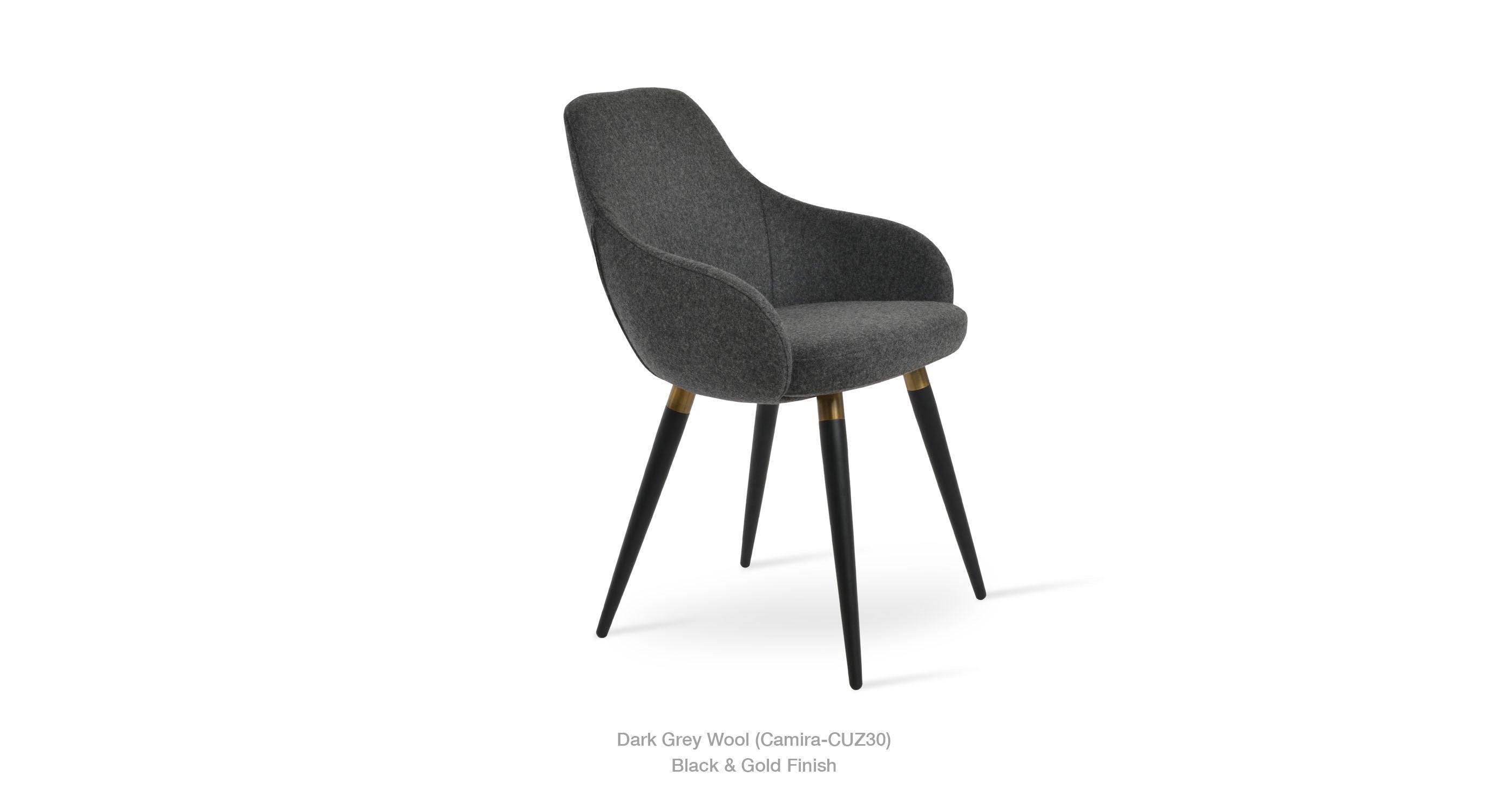 Gazel Arm Ana is a unique dining chair with a comfortable upholstered seat and backrest on a steel base available in variety of finishes. Each leg is tipped with a plastic glide screwed into the foot. The seat has a steel structure with “S” shape springs for extra flexibility and strength. Gazel seat is upholstered with a removable zipper enclosed leather, leatherette or wool fabric slip cover that can be changed with professional help. This contemporary chair is suitable for both residential and commercial use.