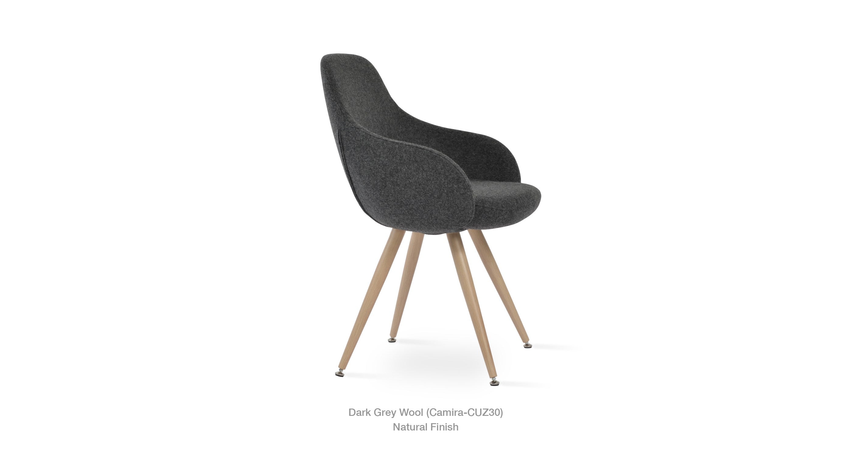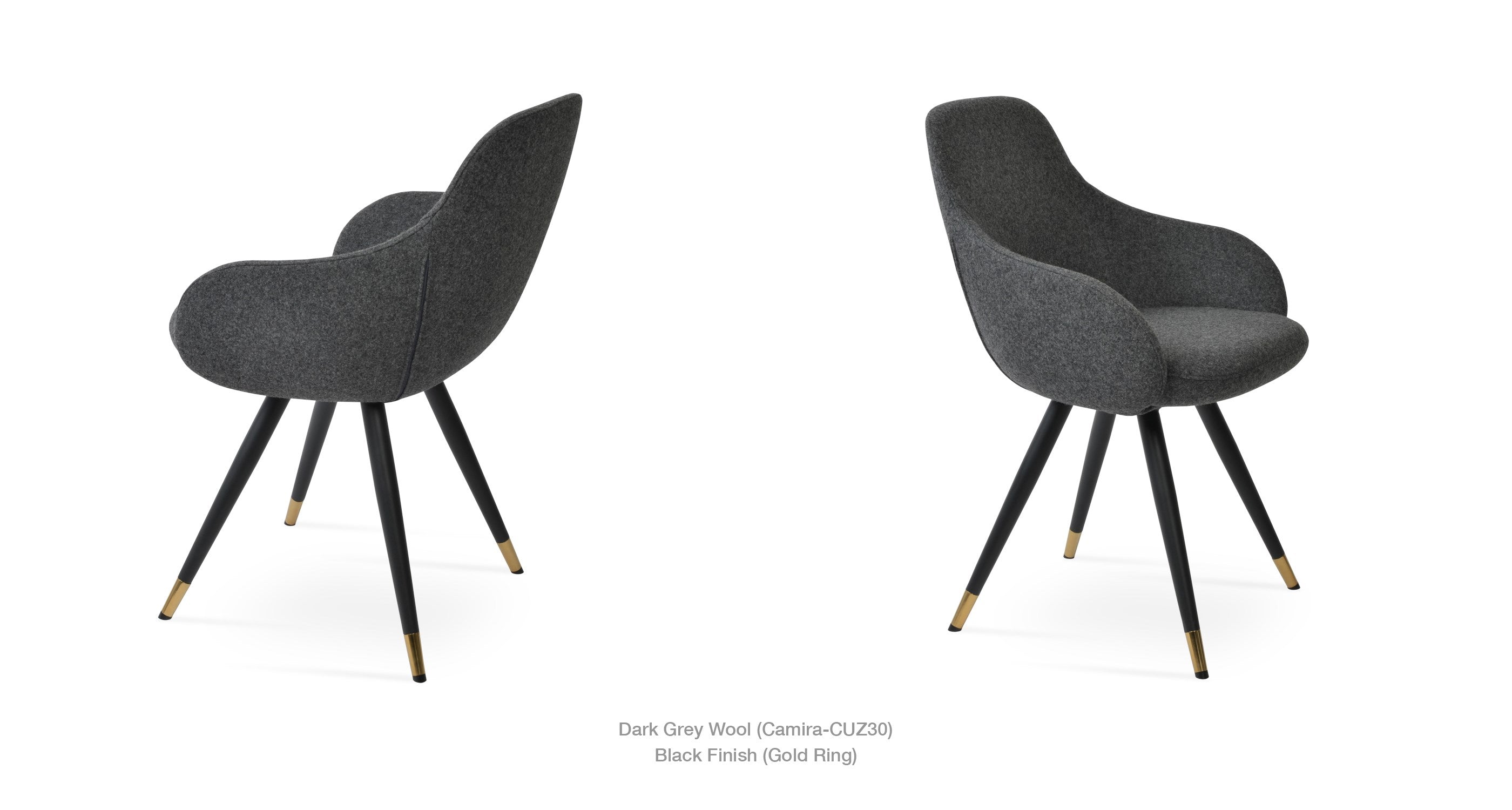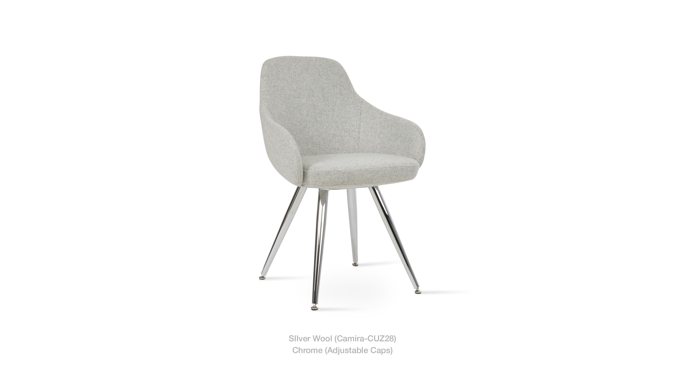 Gazel Arm Star is a unique dining chair with a comfortable upholstered seat and backrest on a steel base available in variety of finishes. Each leg is tipped with a plastic glide screwed into the foot. The seat has a steel structure with “S” shape springs for extra flexibility and strength. Gazel seat is upholstered with a removable zipper enclosed leather, leatherette or wool fabric slip cover that can be changed with professional help. This contemporary chair is suitable for both residential and commercial use.