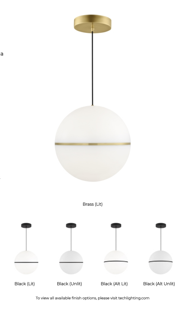 Designed by Sean Lavin for Visual Comfort (formerly Tech Lighting), this 18-inch globe pendant blends mid-century modern aesthetics with advanced LED lighting. Ideal for residential and commercial interiors including dining areas, kitchens, and reception spaces.
