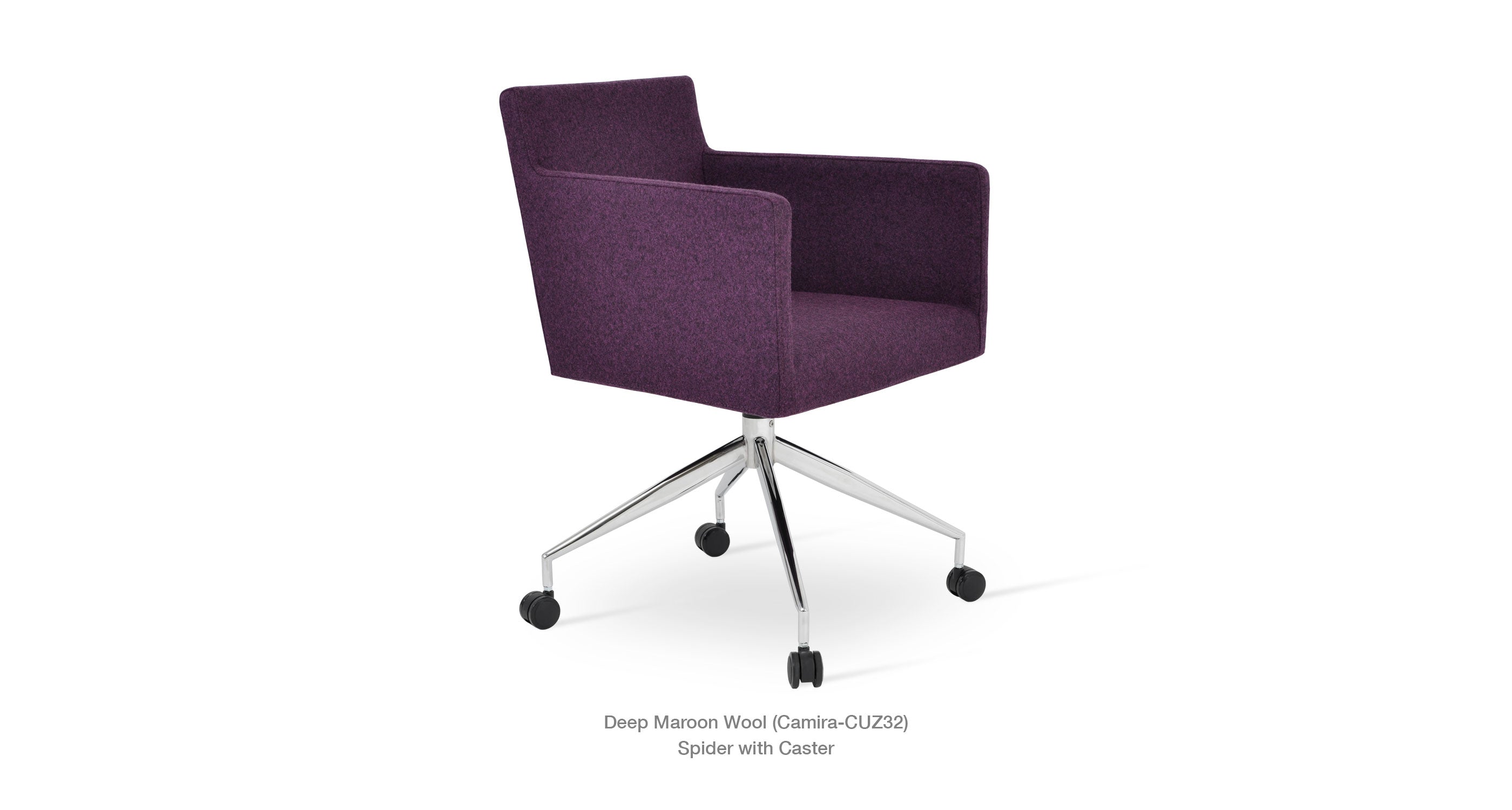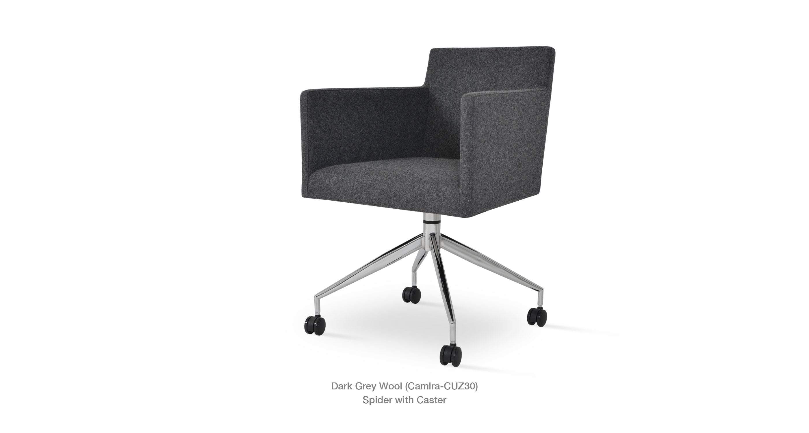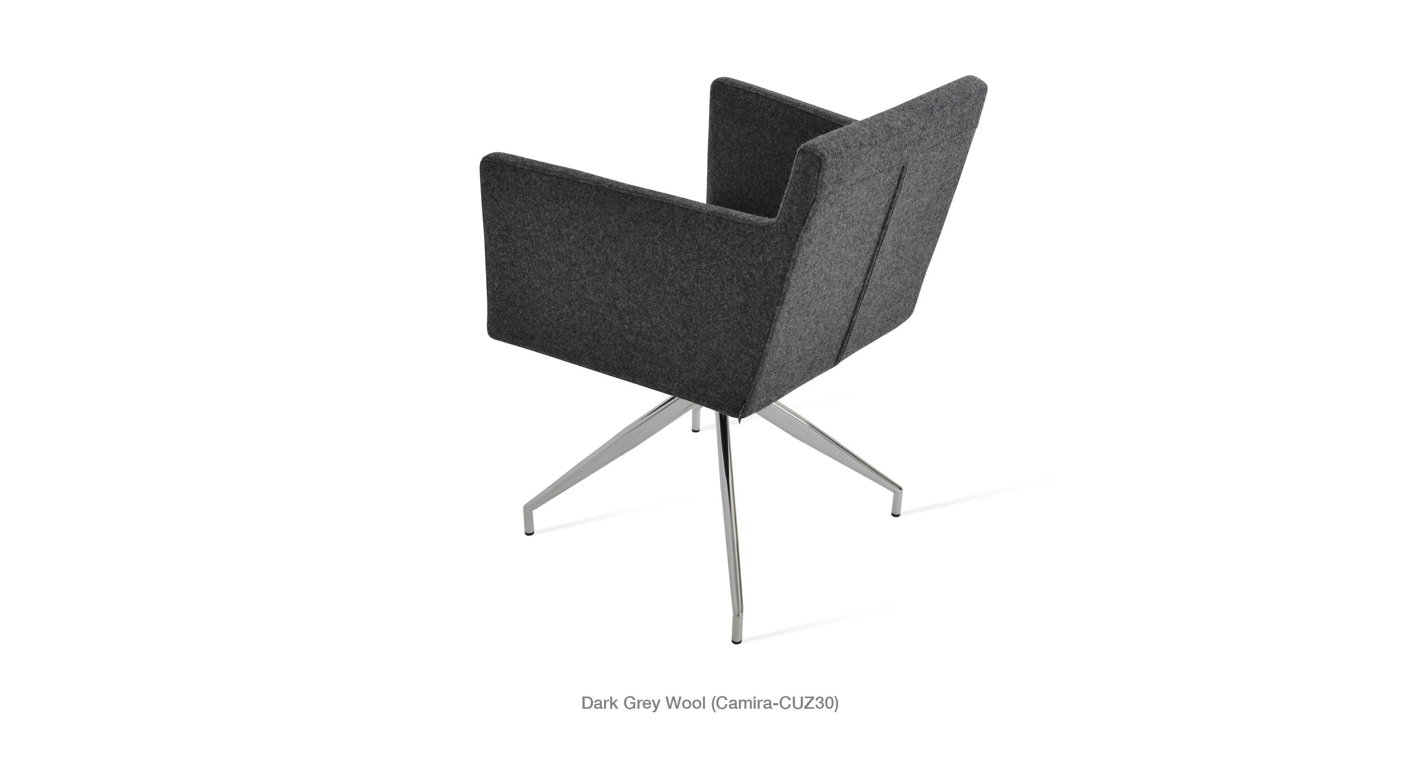 Harput Spider Chair is an armchair with a comfortable upholstered seat and backrest on chrome legs tipped with screwed plastic caps. The seat has a steel structure with “S” shape springs for extra flexibility and strength. This steel frame is molded by an injecting polyurethane foam. Harput seat is upholstered with a removable velcro enclosed leather, PPM or wool fabric slip cover. Camira Fabrics are 5 year guaranteed from the date of invoice against wear through (the complete deterioration of the fabric's structure in a particular area) and loss of color fastness (the excessive loss of color due to exposure to light). Harput Spider is suitable for both residential and commercial use.