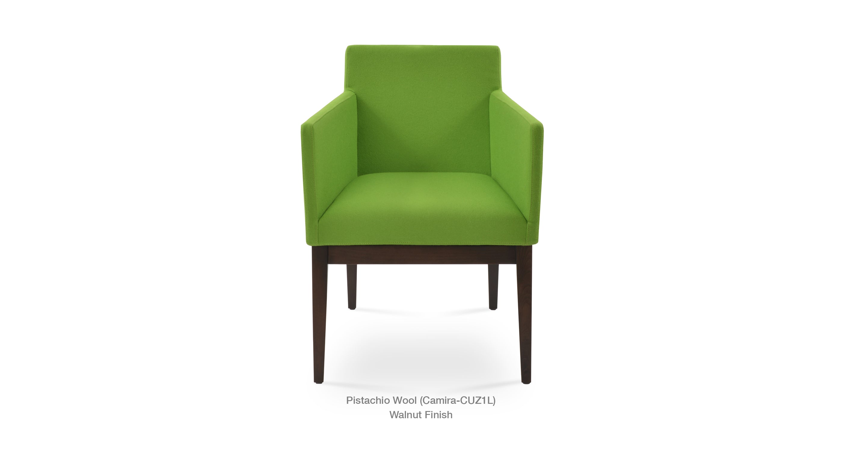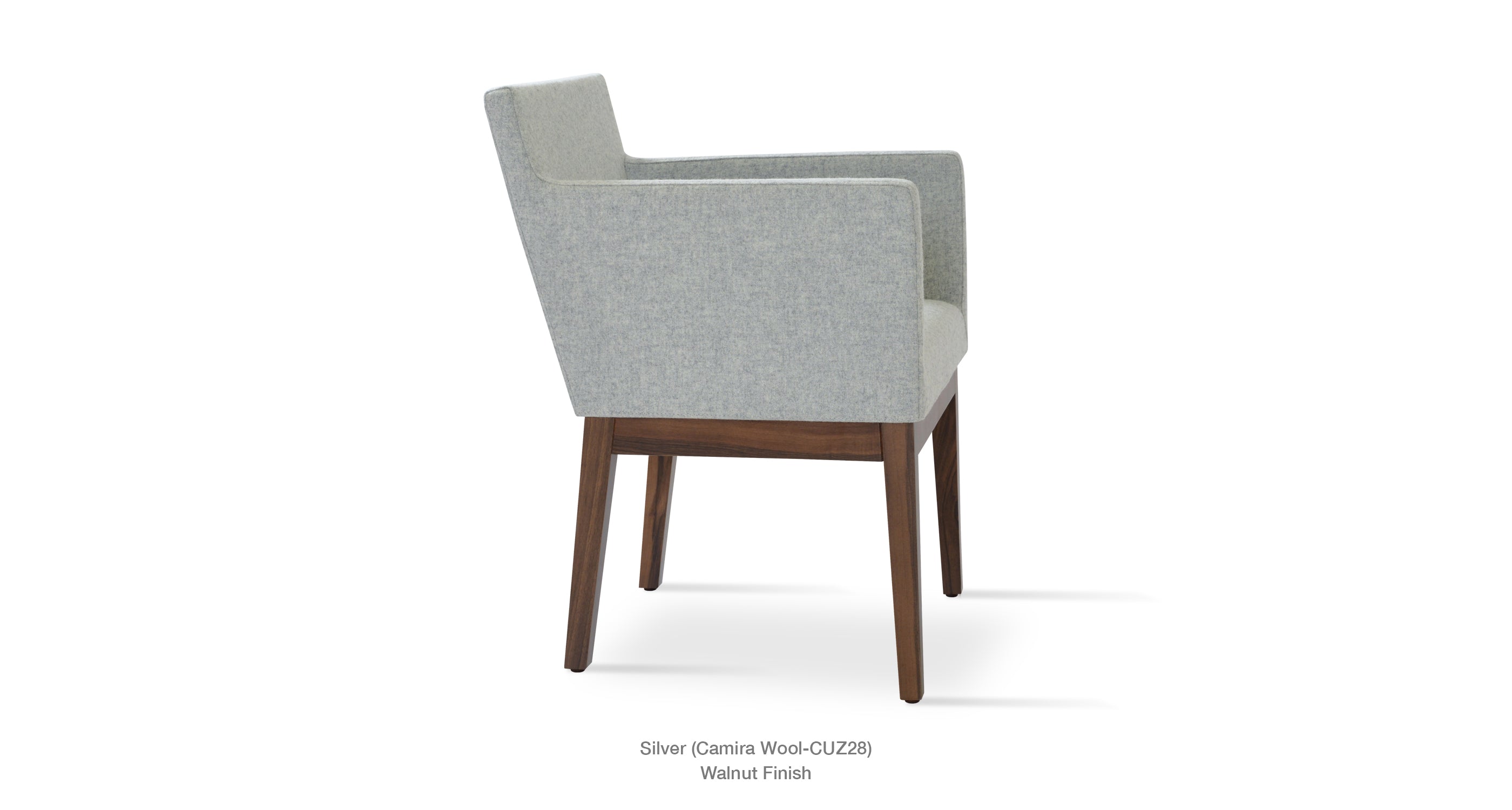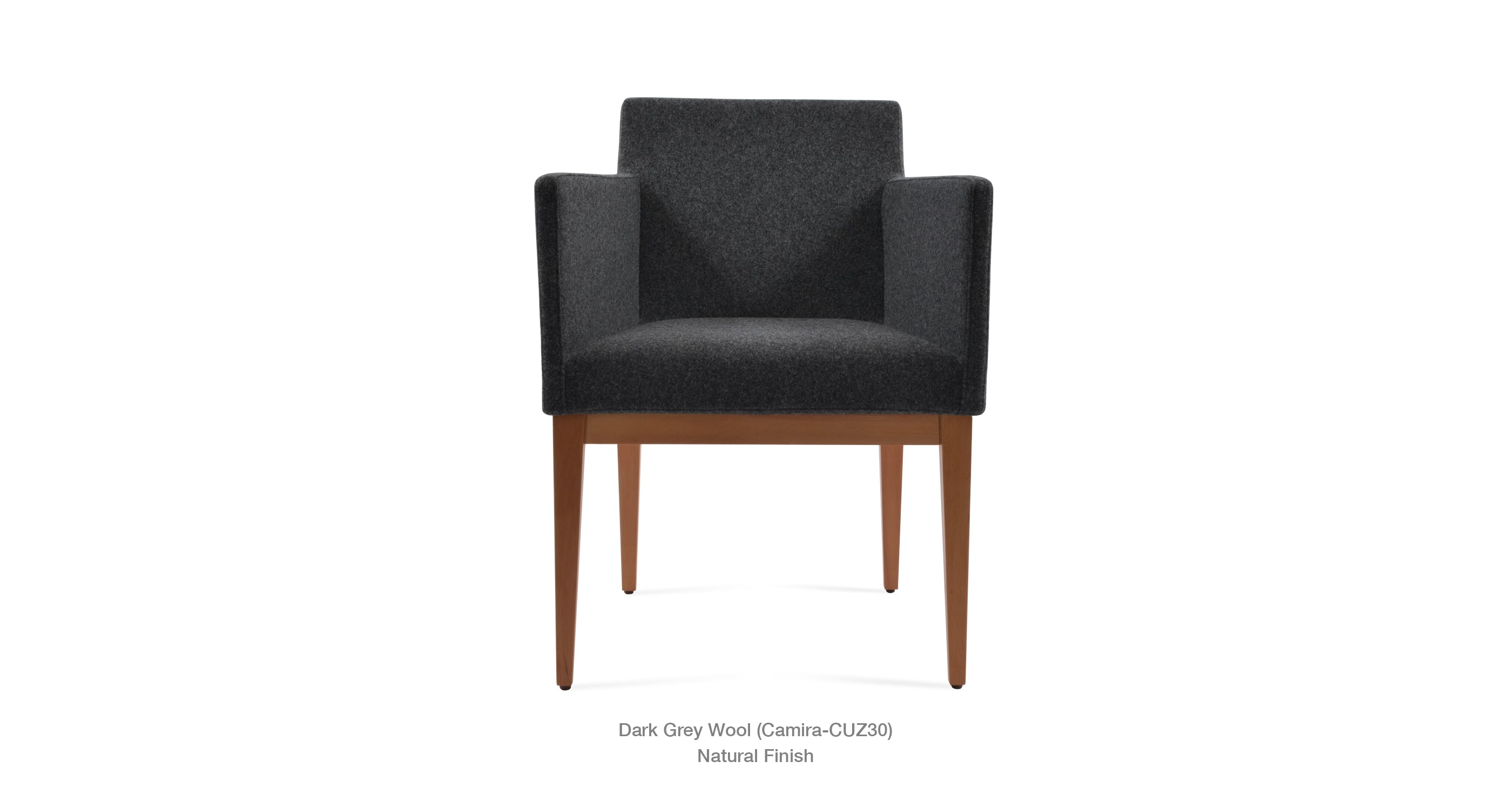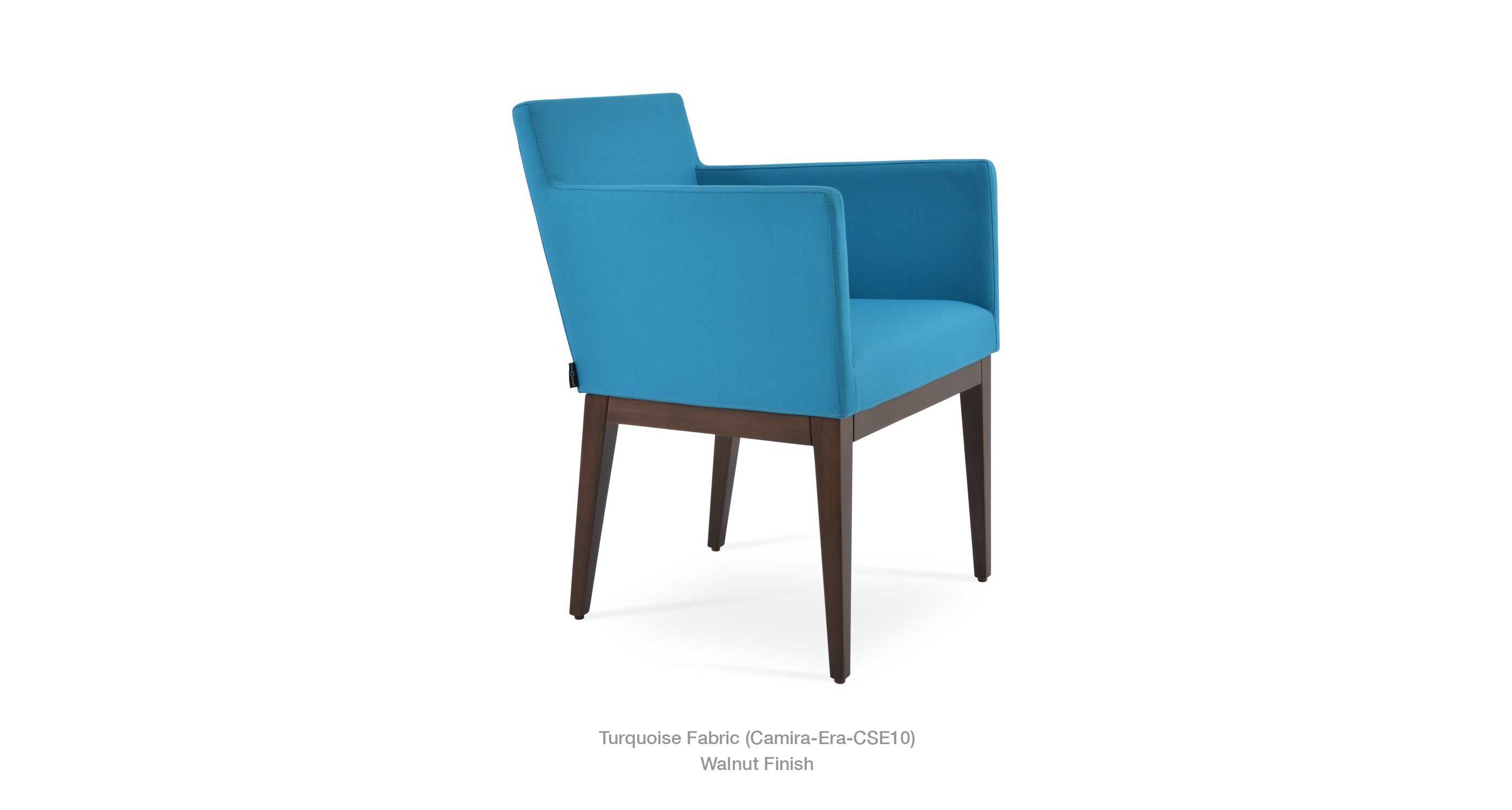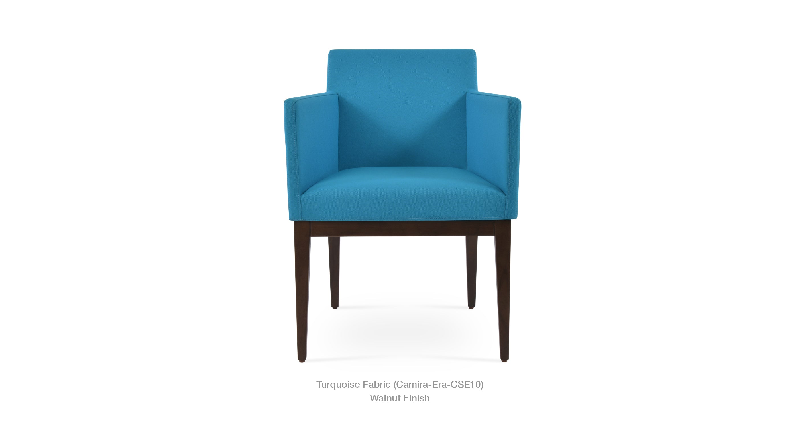 Harput Wood is an armchair with a comfortable upholstered seat and backrest on solid walnut legs tipped with screwed plastic caps. The seat has a steel structure with “S” shape springs for extra flexibility and strength. This steel frame is molded by an injecting polyurethane foam. Harput seat is upholstered with a removable velcro enclosed leather, PPM or wool fabric slip cover. Camira Fabrics are 5 year guaranteed from the date of invoice against wear through (the complete deterioration of the fabric's structure in a particular area) and loss of color fastness (the excessive loss of color due to exposure to light). PPM Leatherette is under a 5 year guarantee against wear through. The chair is suitable for both residential and commercial use.