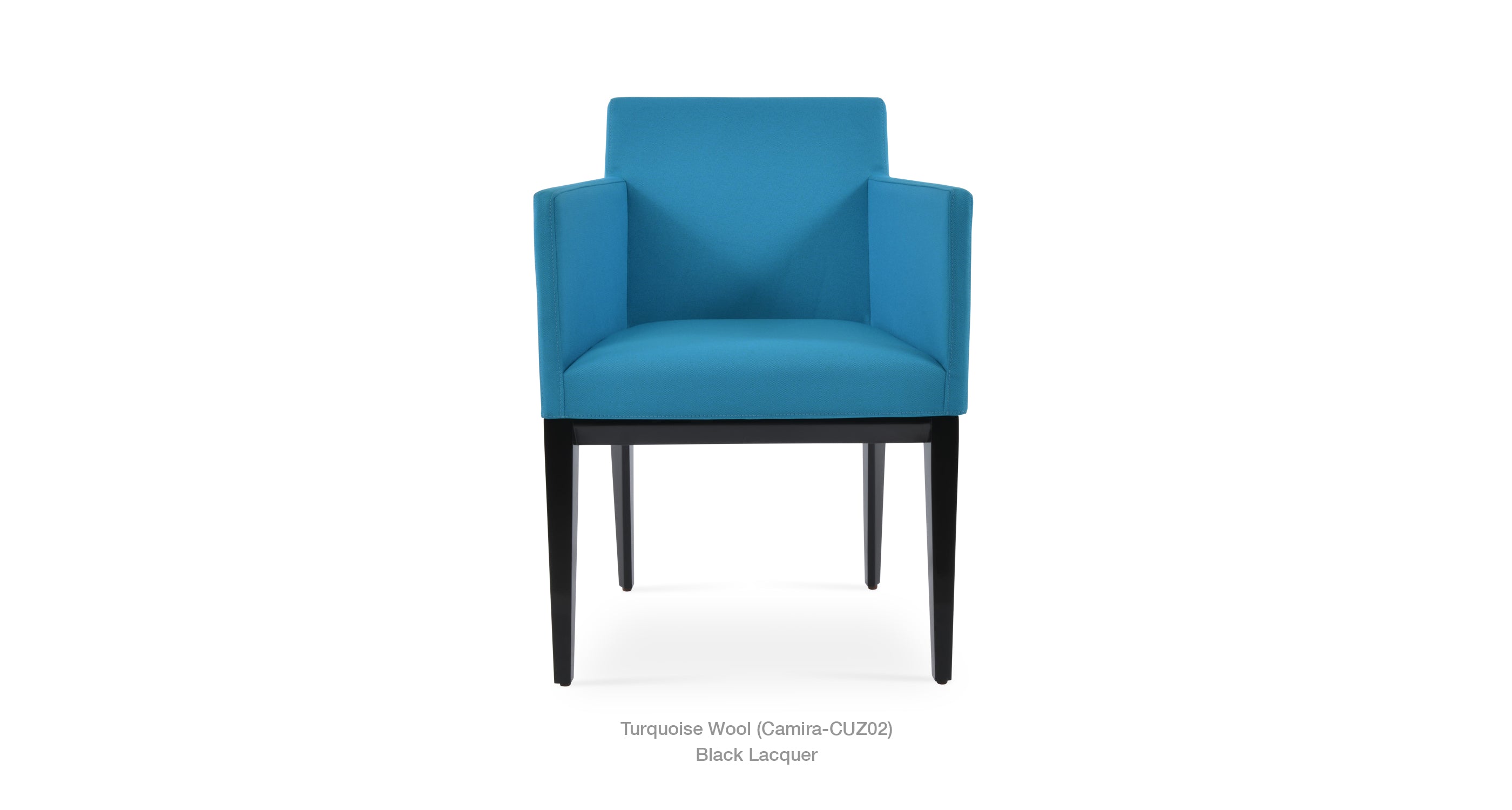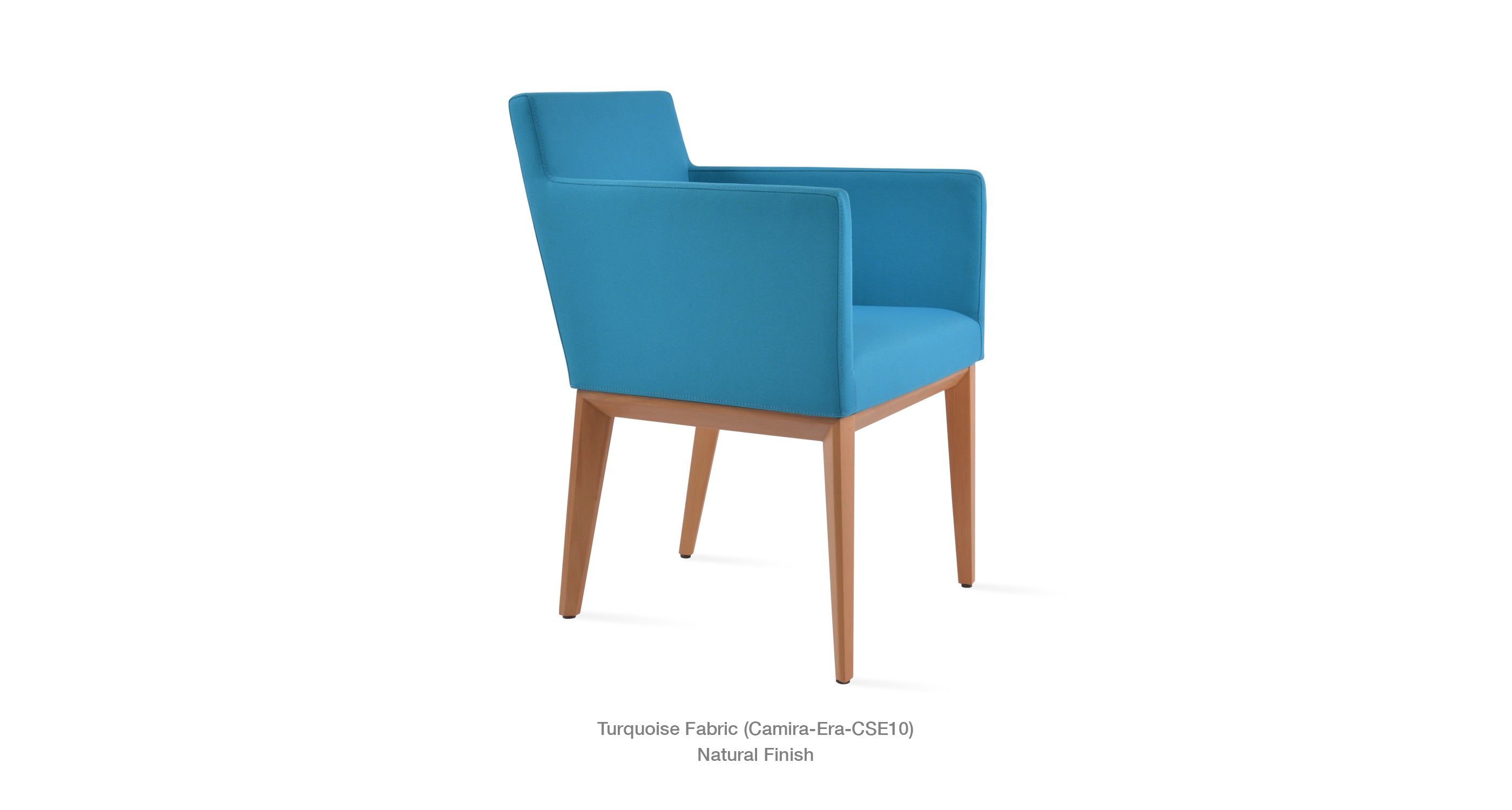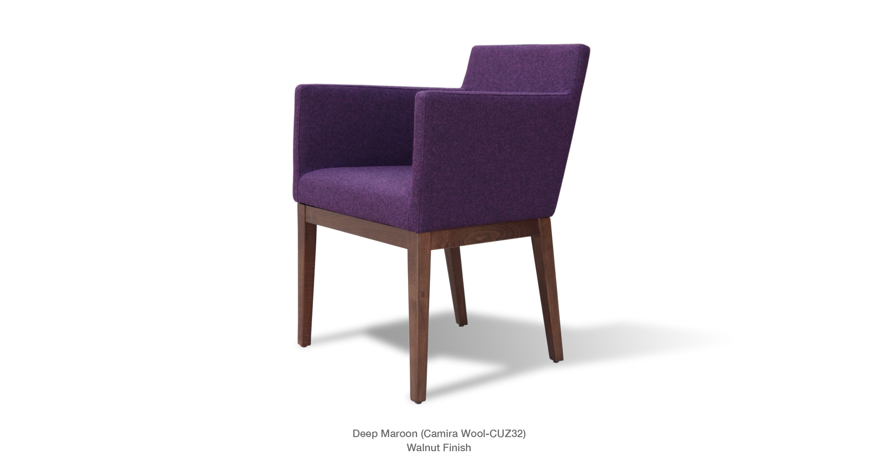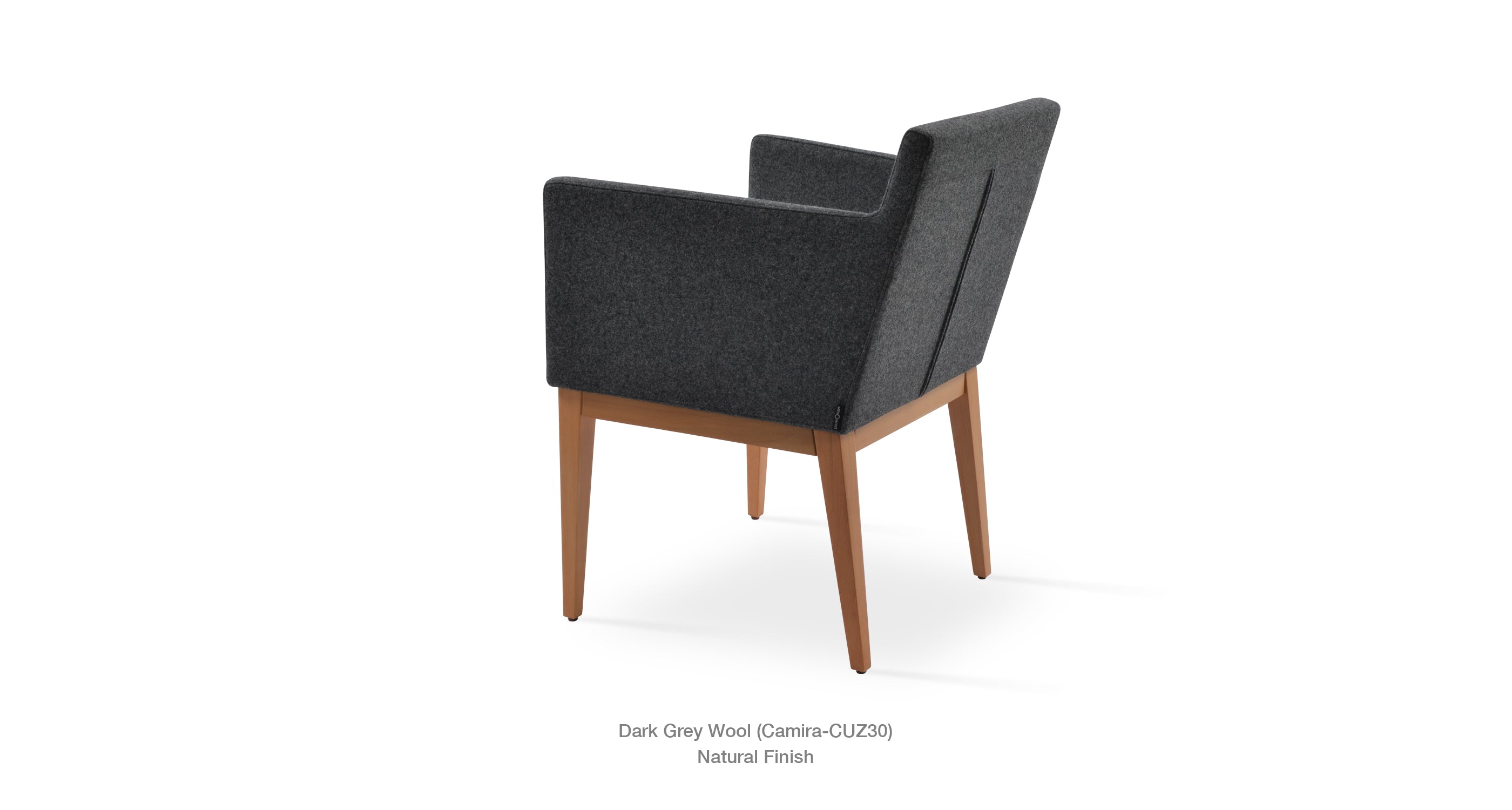 Harput Wood is an armchair with a comfortable upholstered seat and backrest on solid walnut legs tipped with screwed plastic caps. The seat has a steel structure with “S” shape springs for extra flexibility and strength. This steel frame is molded by an injecting polyurethane foam. Harput seat is upholstered with a removable velcro enclosed leather, PPM or wool fabric slip cover. Camira Fabrics are 5 year guaranteed from the date of invoice against wear through (the complete deterioration of the fabric's structure in a particular area) and loss of color fastness (the excessive loss of color due to exposure to light). PPM Leatherette is under a 5 year guarantee against wear through. The chair is suitable for both residential and commercial use.