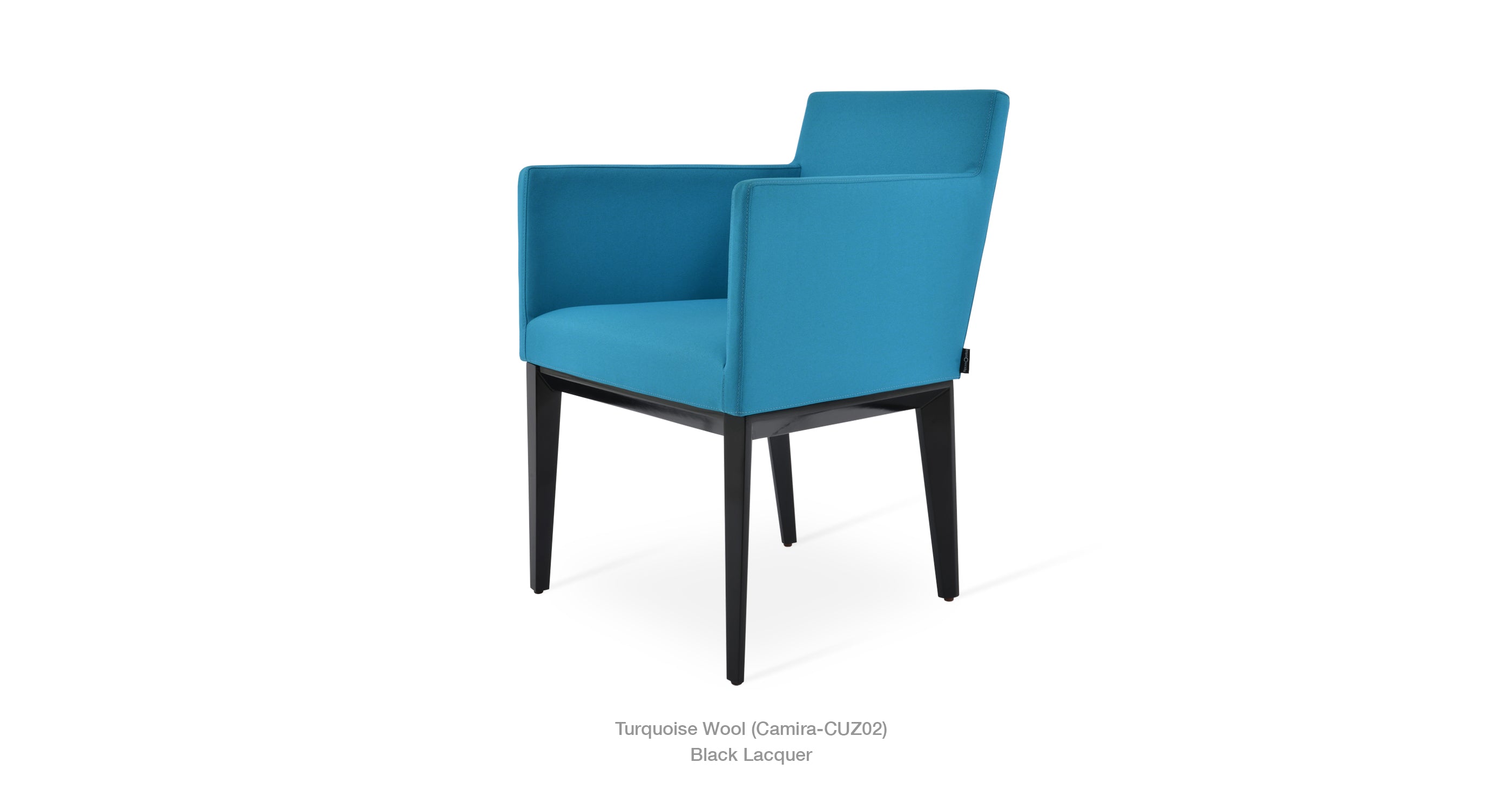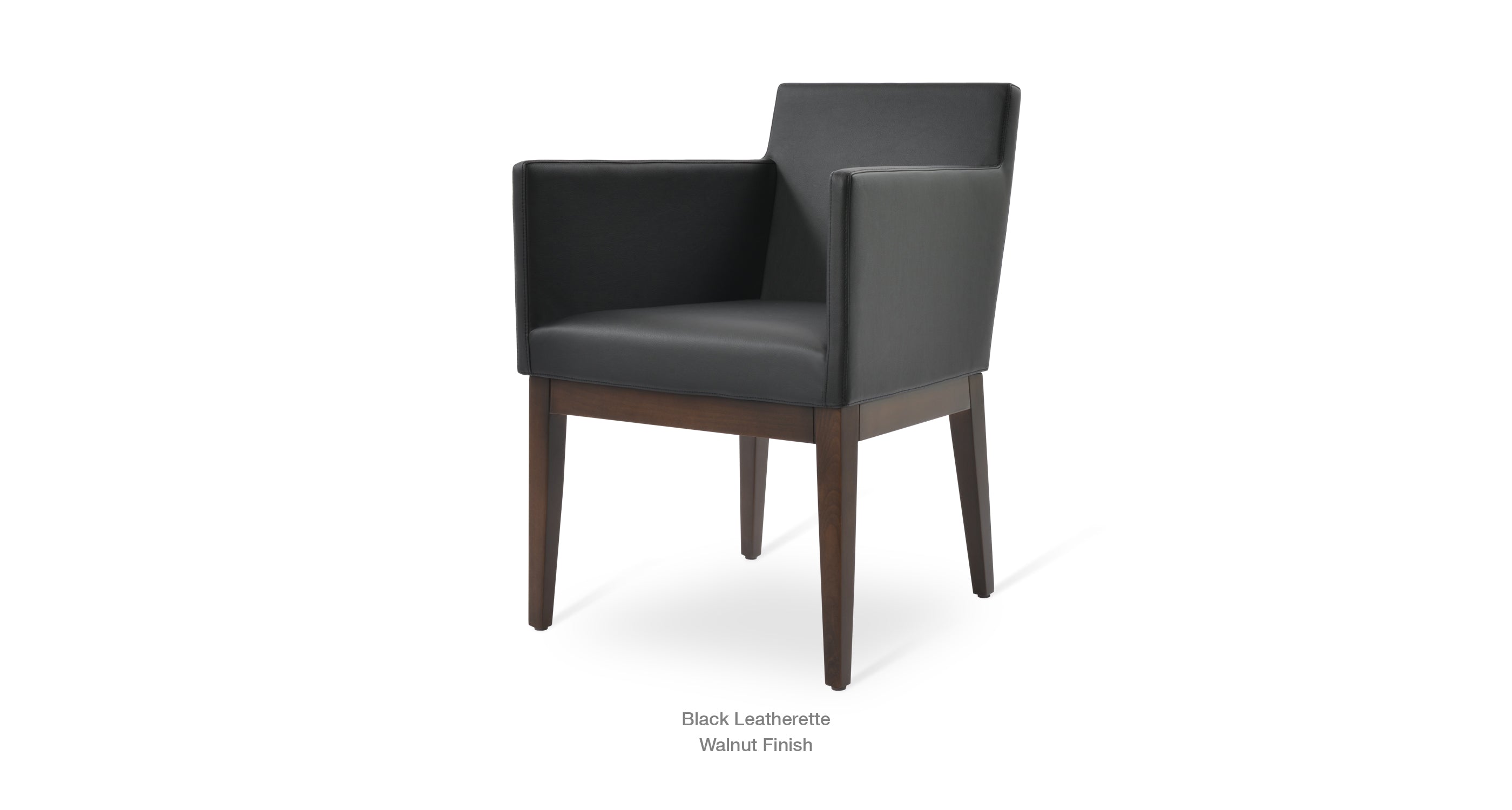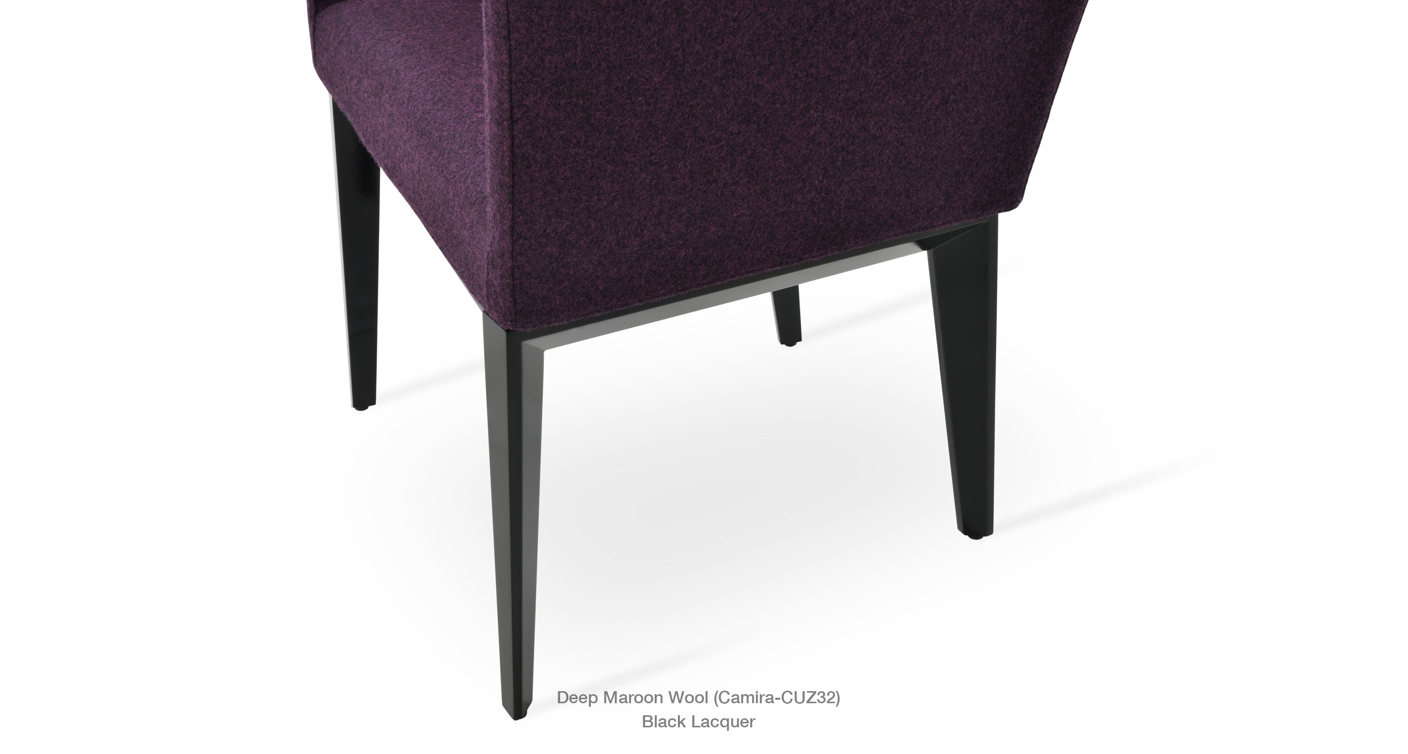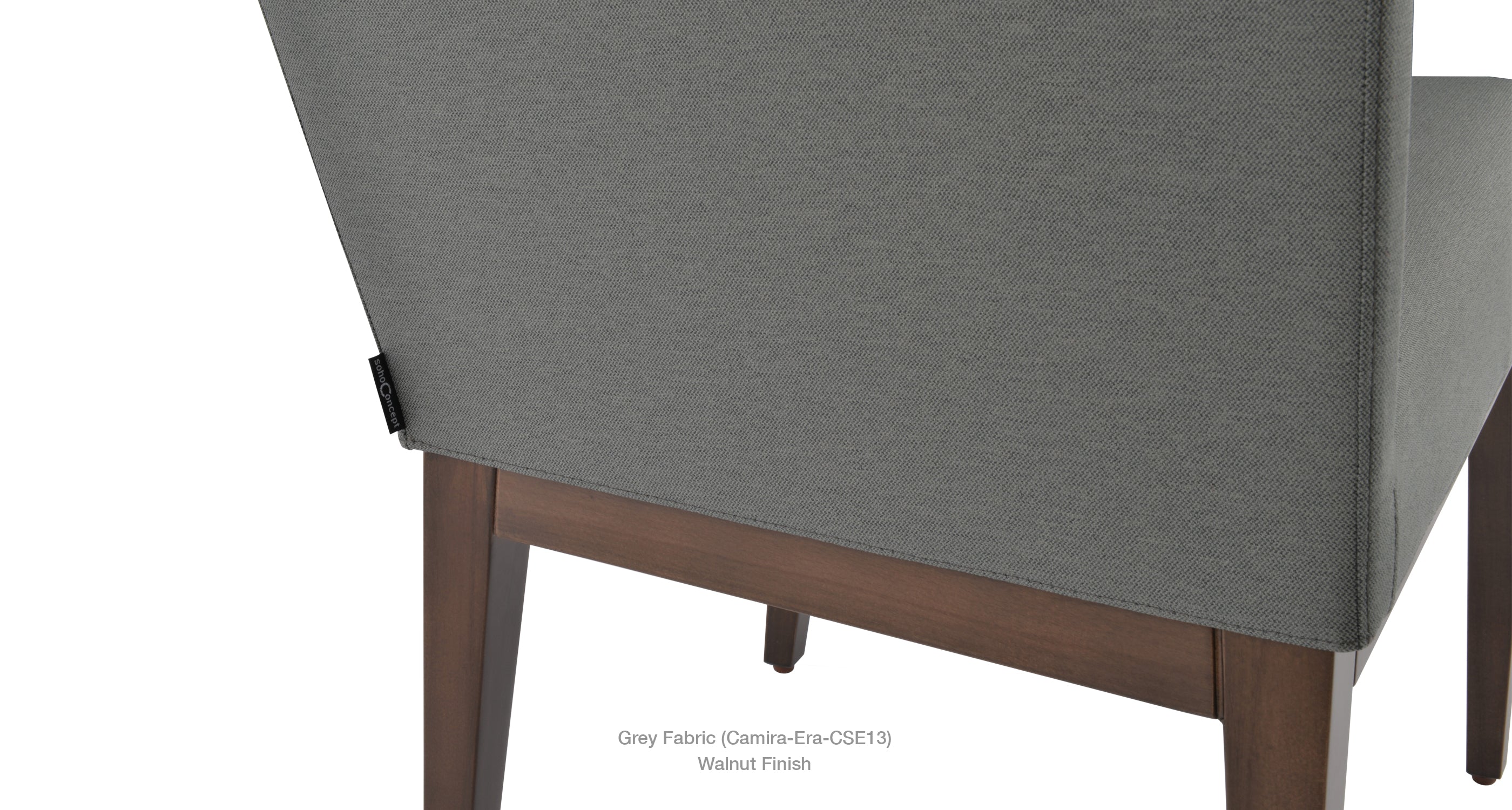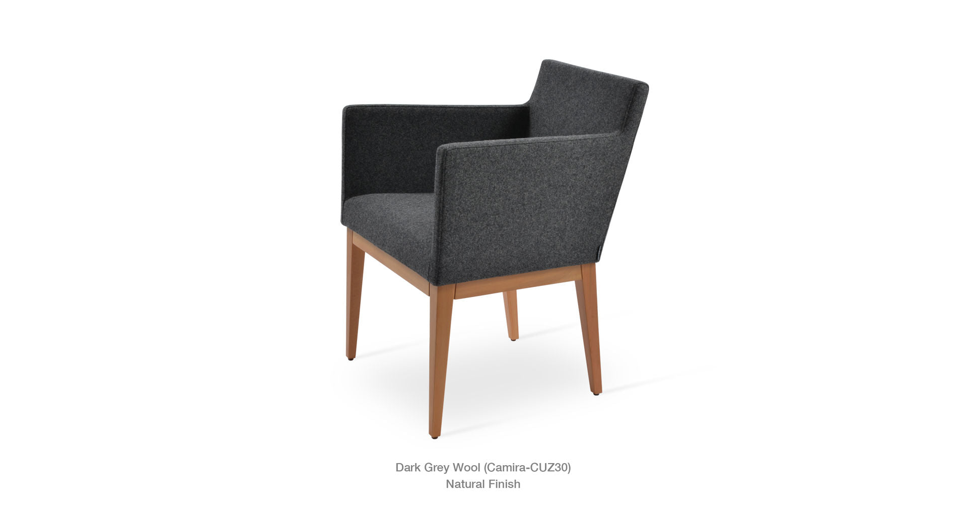 Harput Wood is an armchair with a comfortable upholstered seat and backrest on solid walnut legs tipped with screwed plastic caps. The seat has a steel structure with “S” shape springs for extra flexibility and strength. This steel frame is molded by an injecting polyurethane foam. Harput seat is upholstered with a removable velcro enclosed leather, PPM or wool fabric slip cover. Camira Fabrics are 5 year guaranteed from the date of invoice against wear through (the complete deterioration of the fabric's structure in a particular area) and loss of color fastness (the excessive loss of color due to exposure to light). PPM Leatherette is under a 5 year guarantee against wear through. The chair is suitable for both residential and commercial use.