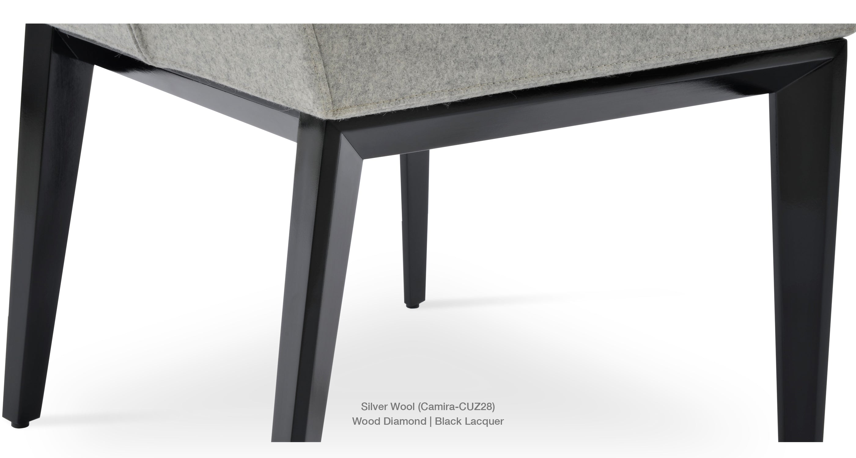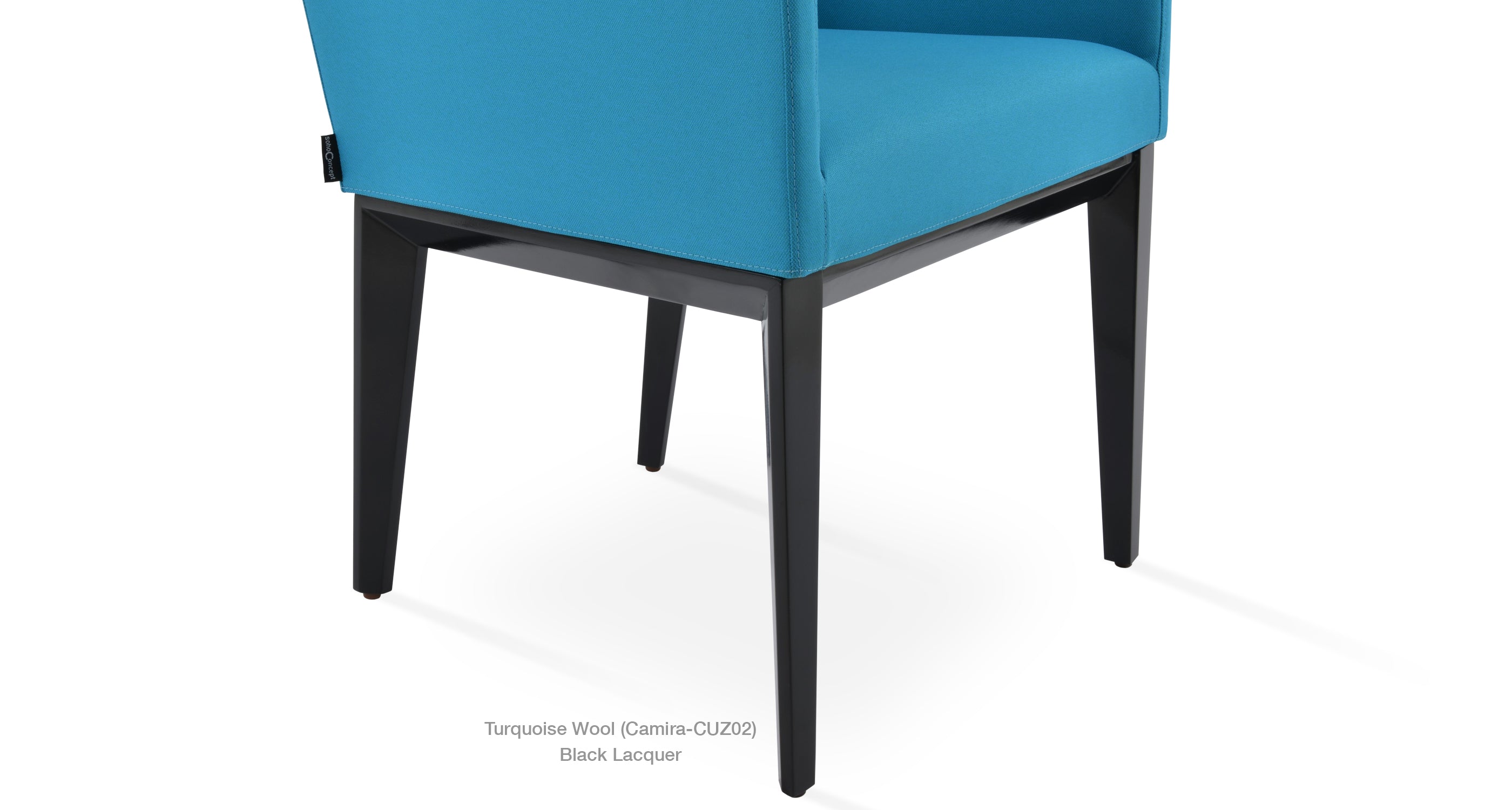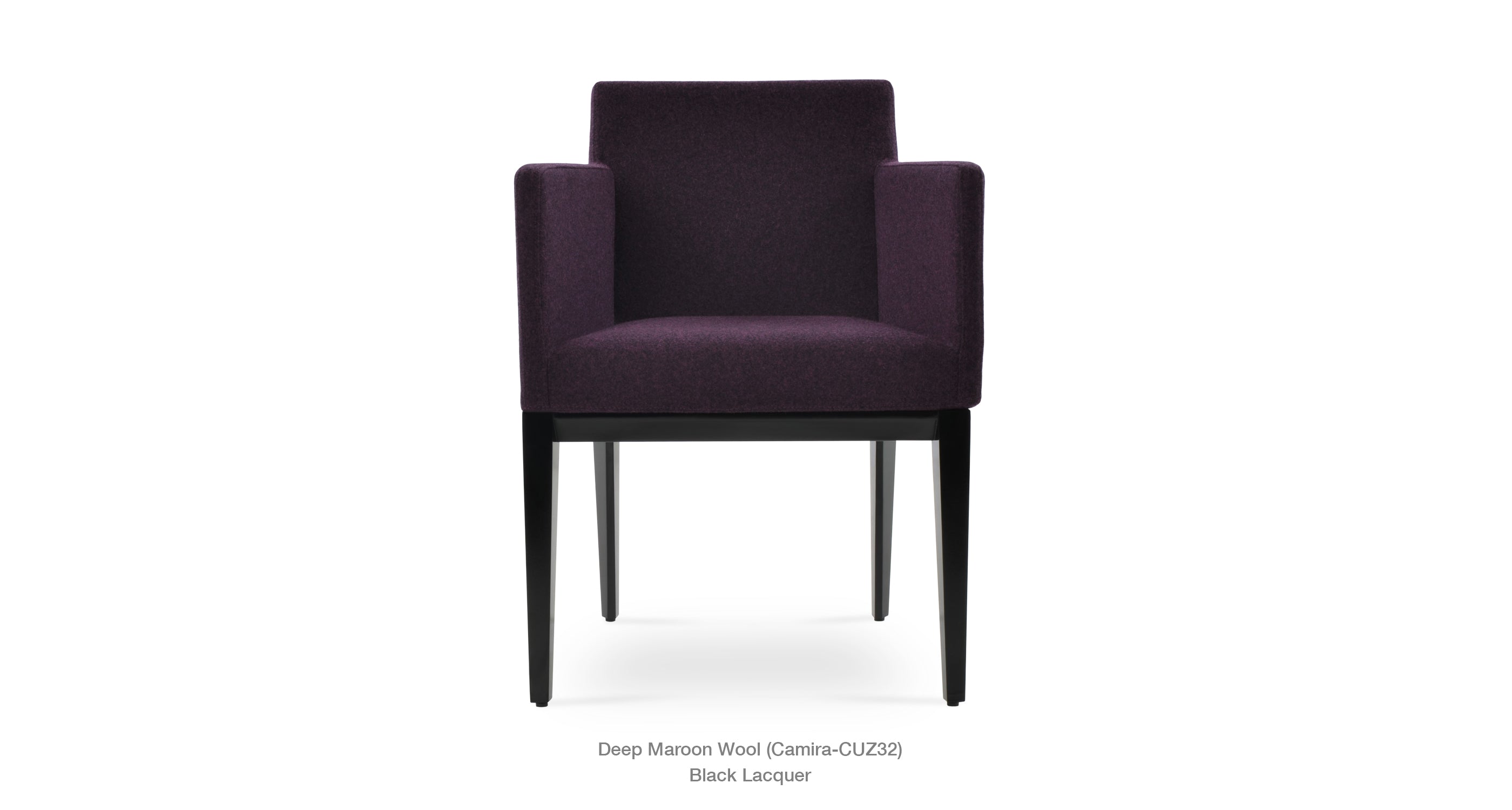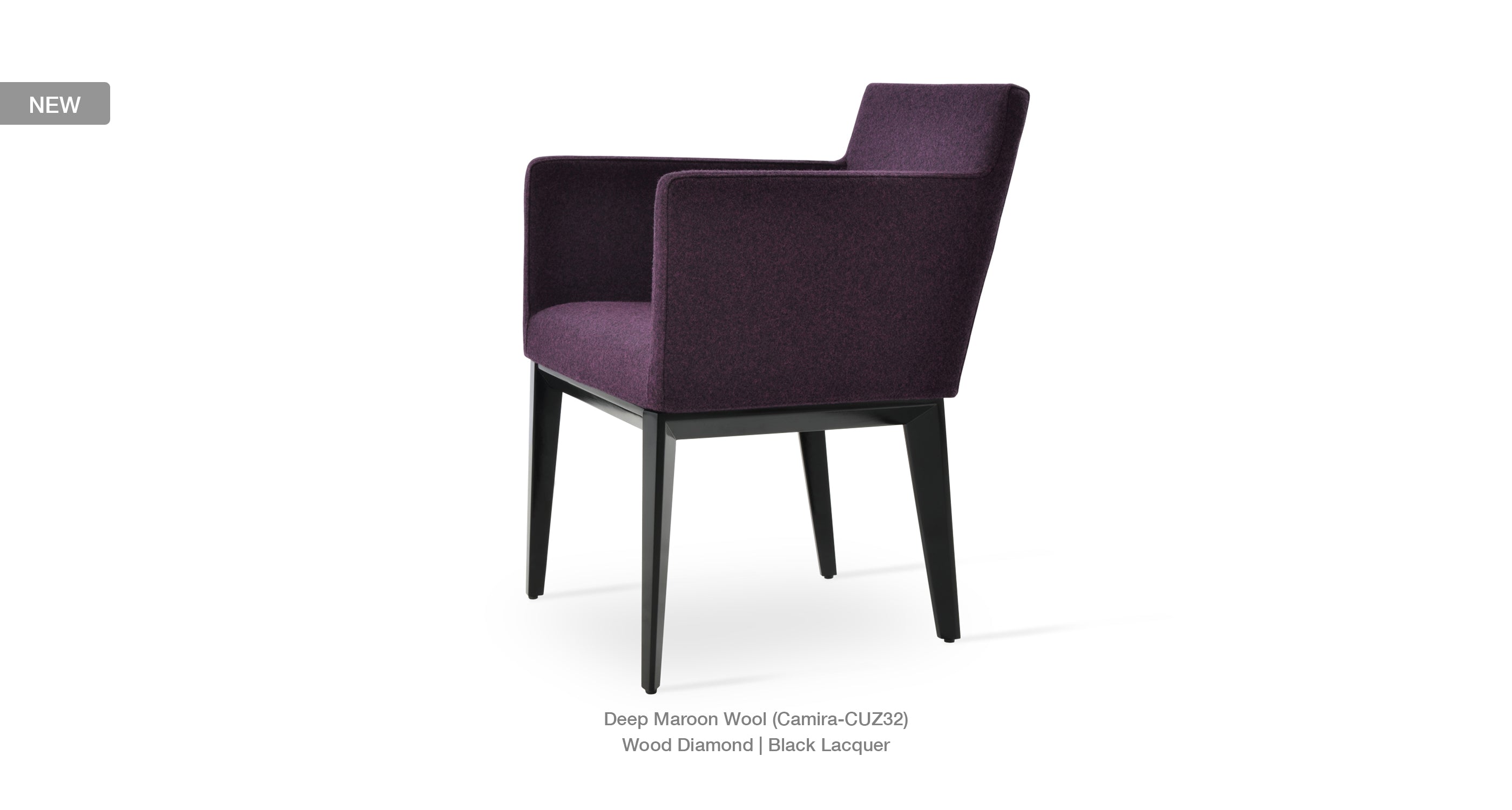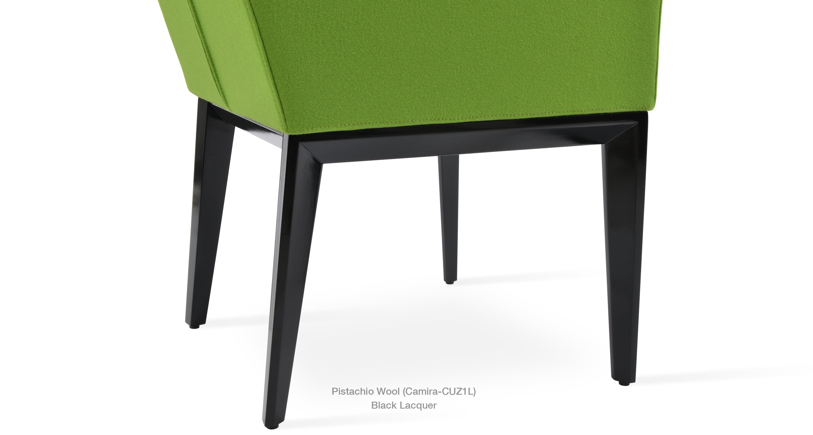 Harput Wood is an armchair with a comfortable upholstered seat and backrest on solid walnut legs tipped with screwed plastic caps. The seat has a steel structure with “S” shape springs for extra flexibility and strength. This steel frame is molded by an injecting polyurethane foam. Harput seat is upholstered with a removable velcro enclosed leather, PPM or wool fabric slip cover. Camira Fabrics are 5 year guaranteed from the date of invoice against wear through (the complete deterioration of the fabric's structure in a particular area) and loss of color fastness (the excessive loss of color due to exposure to light). PPM Leatherette is under a 5 year guarantee against wear through. The chair is suitable for both residential and commercial use.