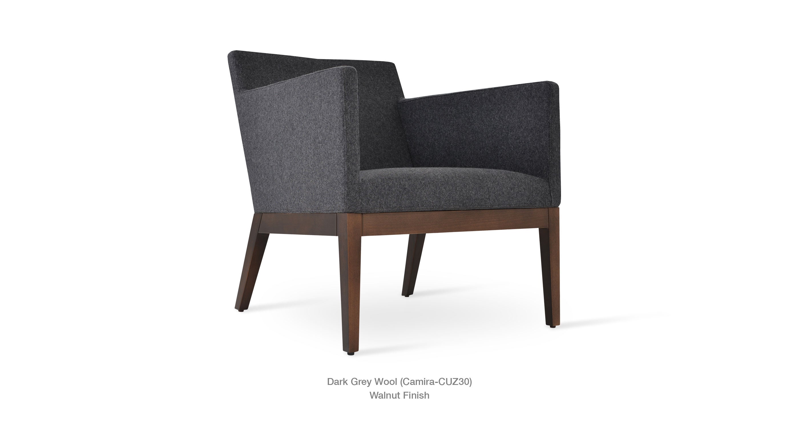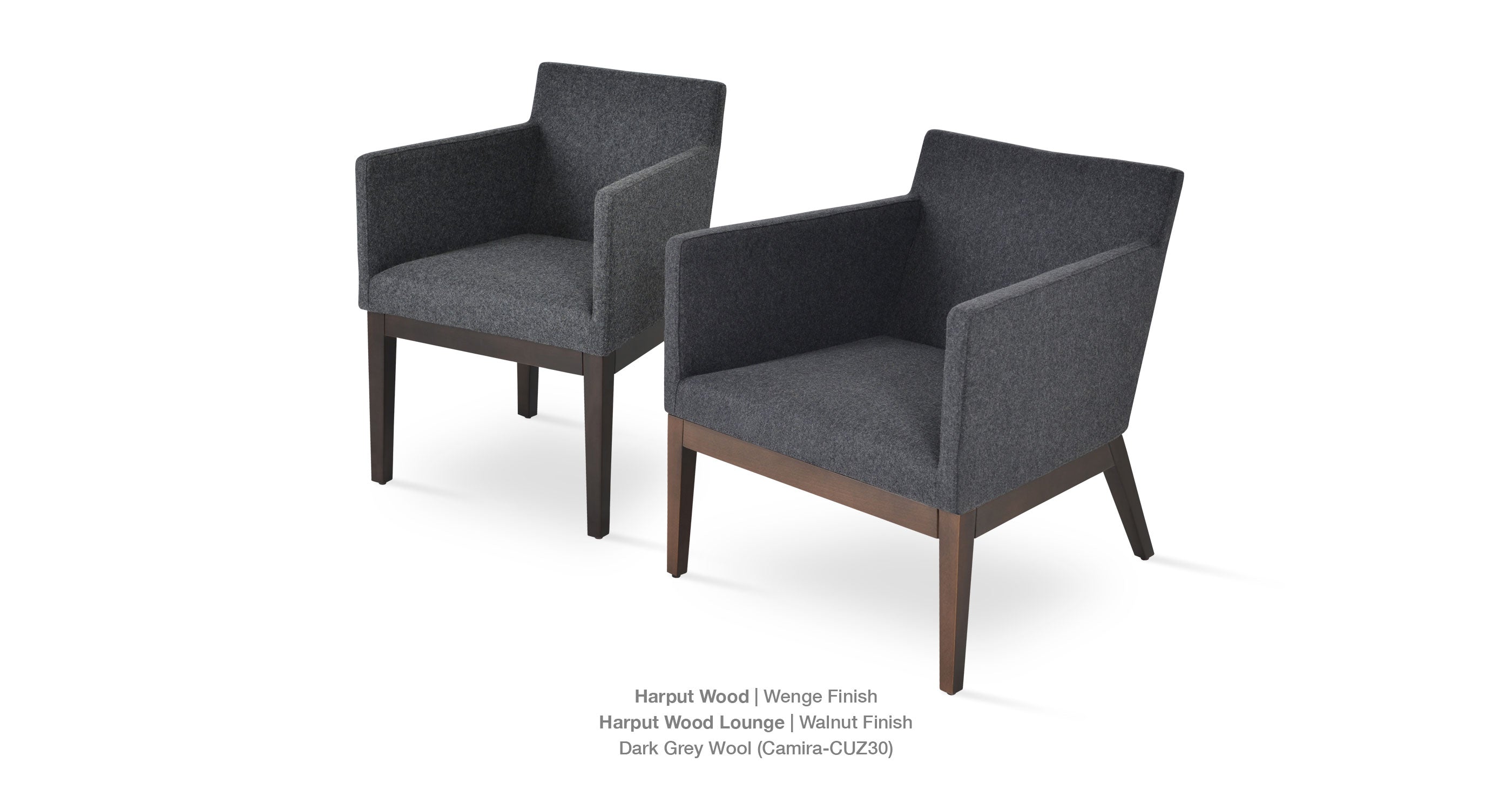 Harput Wood Lounge Chair is an armchair with a comfortable upholstered seat and backrest on solid walnut legs tipped with screwed plastic caps. The seat has a steel structure with “S” shape springs for extra flexibility and strength. This steel frame molded by injecting polyurethane foam. Harput seat is upholstered with a removable velcro enclosed leather, PPM or wool fabric slip cover. Camira Fabrics are 5 year guaranteed from the date of invoice against wear through (the complete deterioration of the fabric's structure in a particular area) and loss of color fastness (the excessive loss of color due to exposure to light). PPM Leatherette is under a 5 year guarantee against wear through. The chair is suitable for both residential and commercial use.