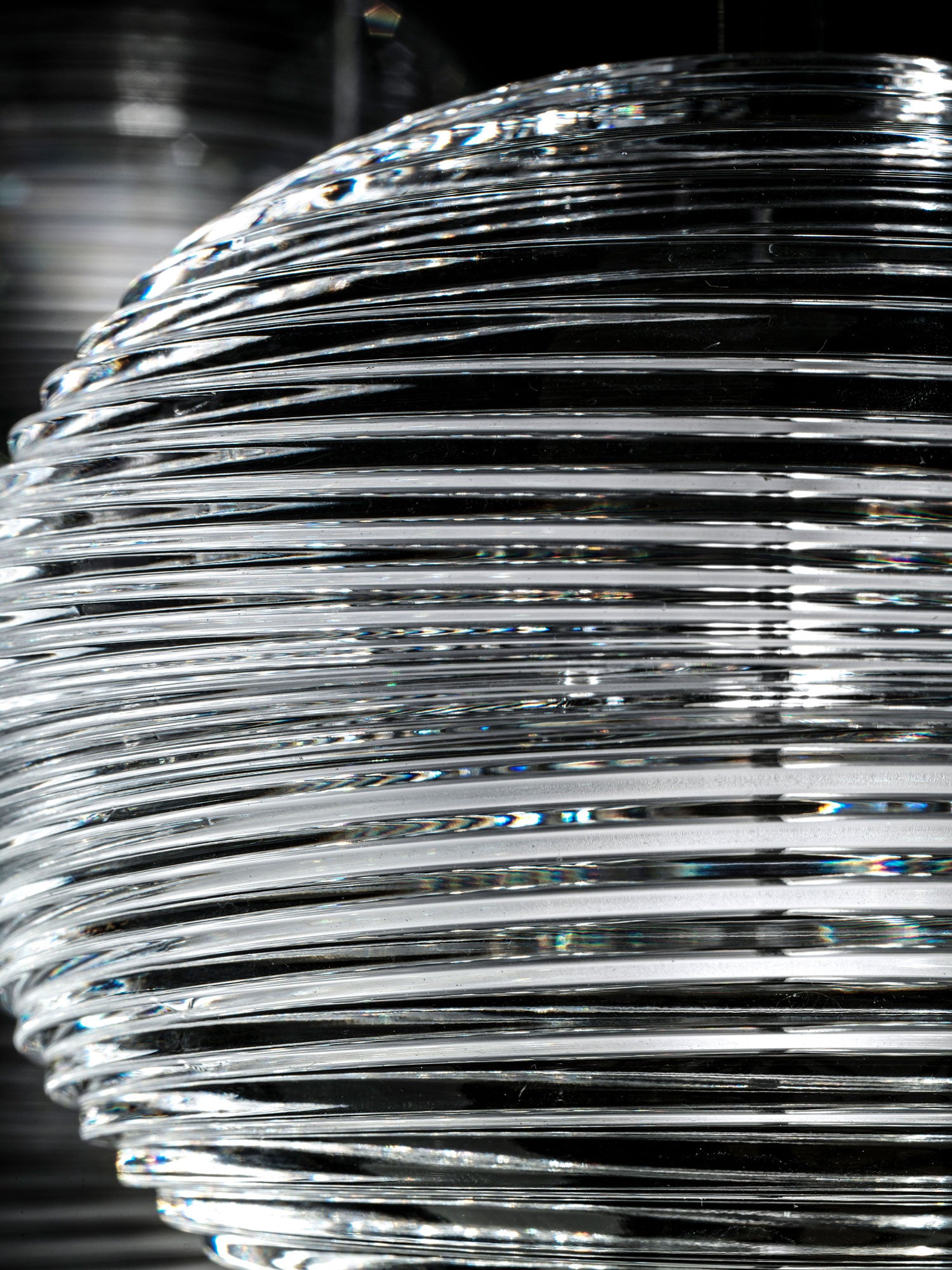 The Jefferson Mini 36 Light Round Chandelier, designed by Luca Nichetto, channels the psychedelic artistry of the 1960s with modern luxury. Featuring 36 LED lights, grooved Bohemian crystal elements, and elegant Black Chrome stems, this chandelier creates a dramatic, ambient light effect ideal for grand interiors, large foyers, or luxury living spaces. Field adjustable and CE-listed for damp locations, it combines functional brilliance with iconic design.