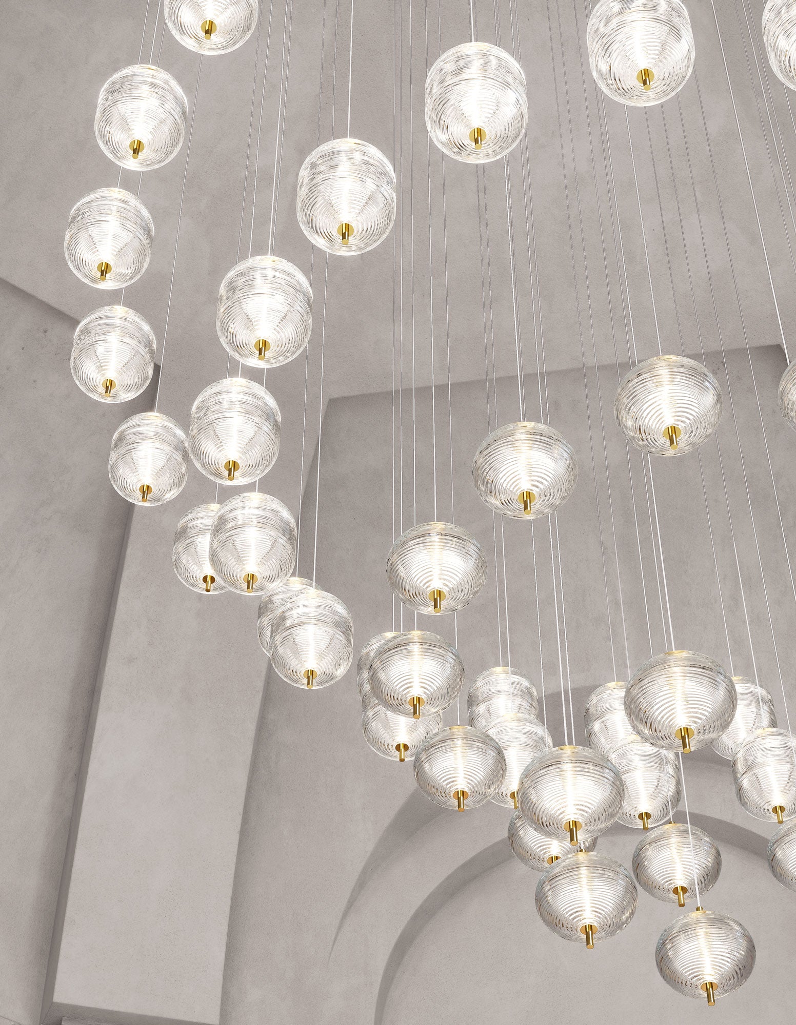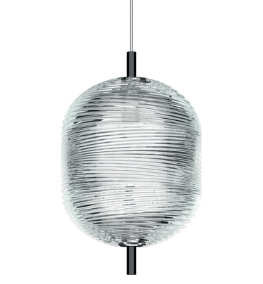 The Jefferson Small Pendant by Luca Nichetto for Lodes blends 1960s vortex motifs with Bohemian crystal to create a jewel-like diffuser that scatters warm, faceted light. Ideal as a single statement or grouped composition, it adds sculptural character to dining areas, foyers and boutique interiors.