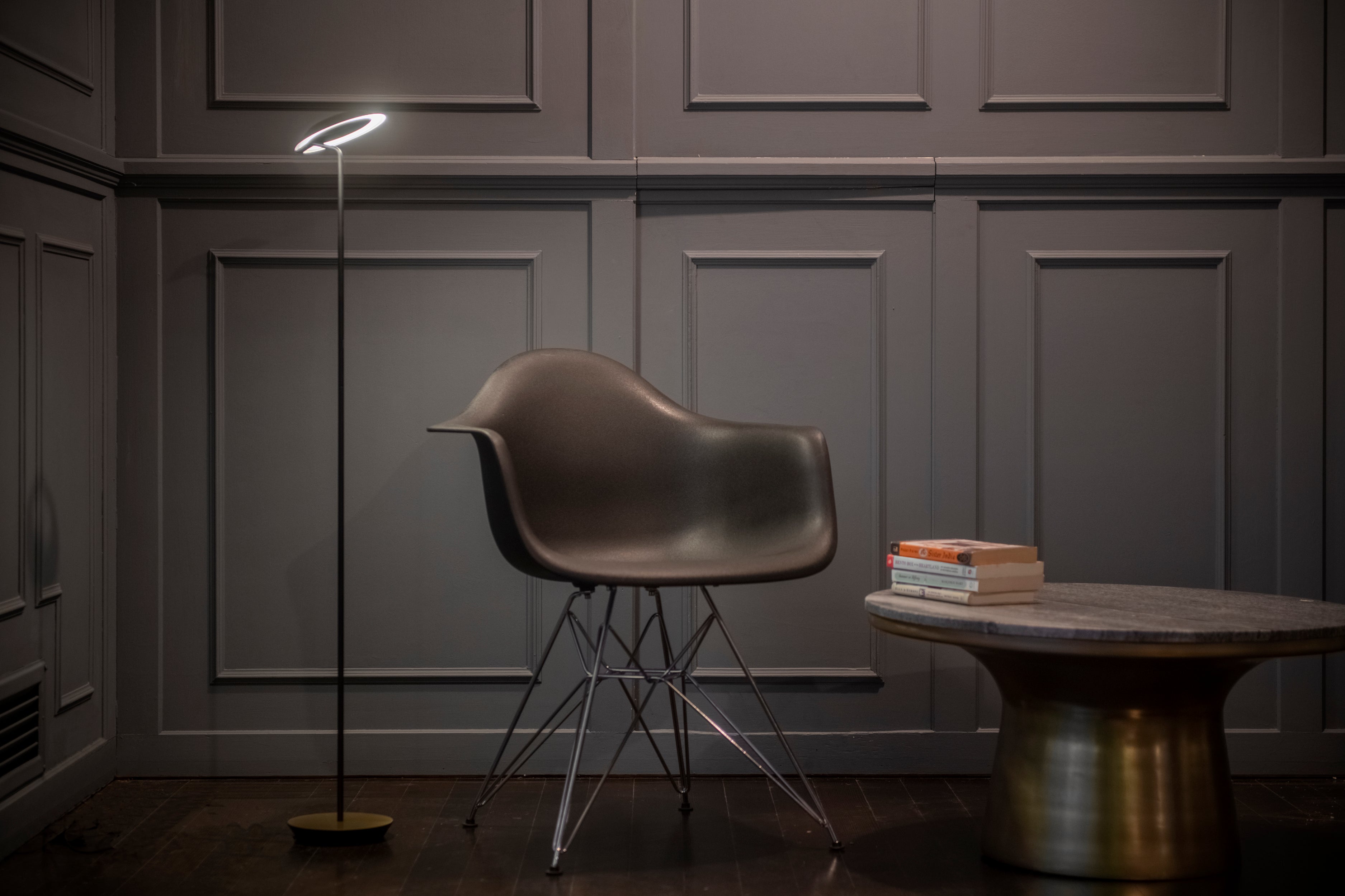 Designer/s: Kenneth Ng, Edmund NgThe Royyo Floor lamp adds an elegant flair to any space with its minimal wiring and pleasing circular design. Its minimal silhouette houses complex inner technology for a marriage of form and functionality. Royyo's embedded USB port allows users to charge any USB- compatible device. Interchangeable base plate options allow users to customize at ease. Achieve unity in design by inviting the Royyo Desk Lamp, Royyo Pendant and Royyo Floor Lamp into your home.