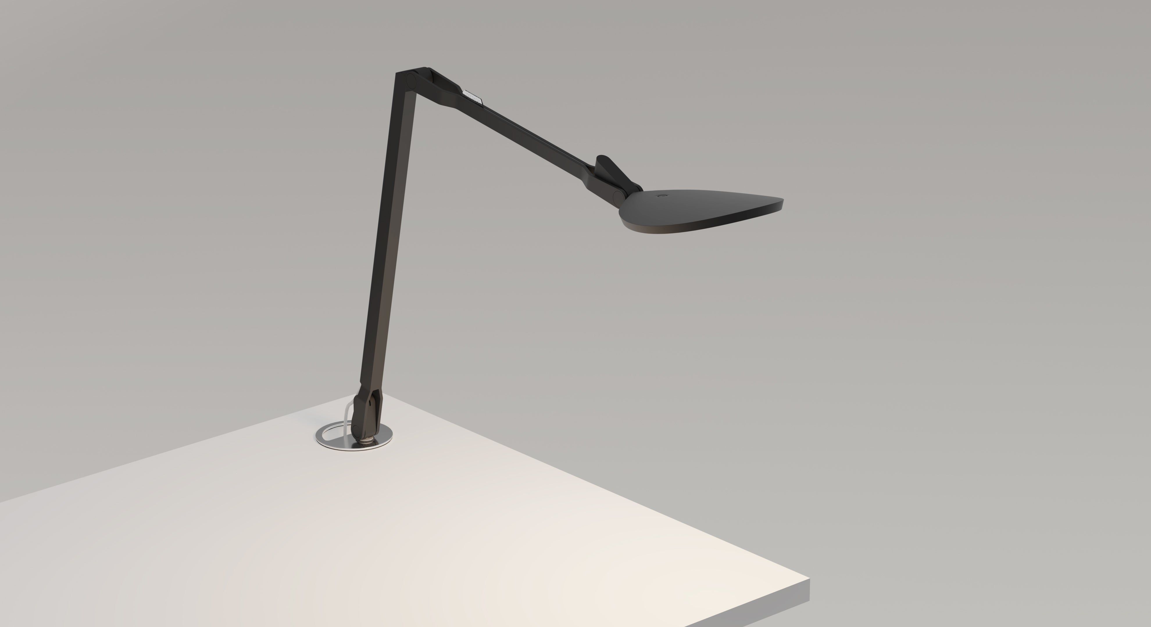 Designer/s: Kenneth Ng, Edmund NgThe Splitty family of task lights was inspired by the fluidity and formlessness of water droplets. The award-winning Splitty Reach offers incredible flexibility and reach due to its double arm and special joint mechanism. A USB port is located in the lower body for convenient charging options. The lamp?s diffused LED light source allows it to perform as both a radiant ambient light and functional task light. The grommet mount allows users to maximize their work space by skipping the desk base and mounting the lamp (plus cord) directly through the work surface.