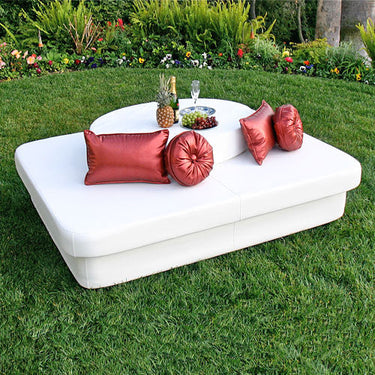 The Crib Queen Resort Bed by La-Fête delivers spa-like serenity and sophisticated comfort in a sleek platform form. Perfect for sunbathing, poolside lounging, or indoor retreat spaces, this queen-sized resort bed is crafted with marine-grade vinyl and structural foam for lasting outdoor performance. Low to the ground and luxuriously wide, it pairs beautifully with Lean Wedges, Bolsters, and Dot Ottomans for a truly custom modular lounge experience.